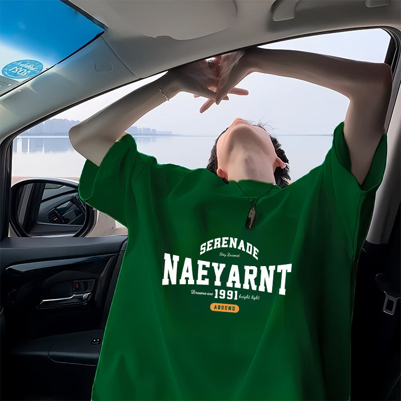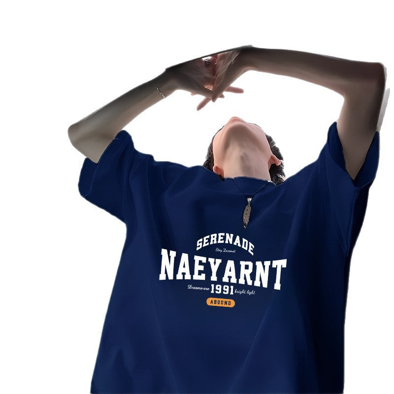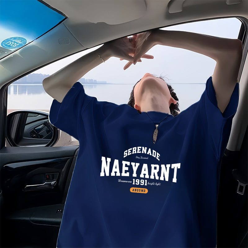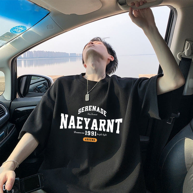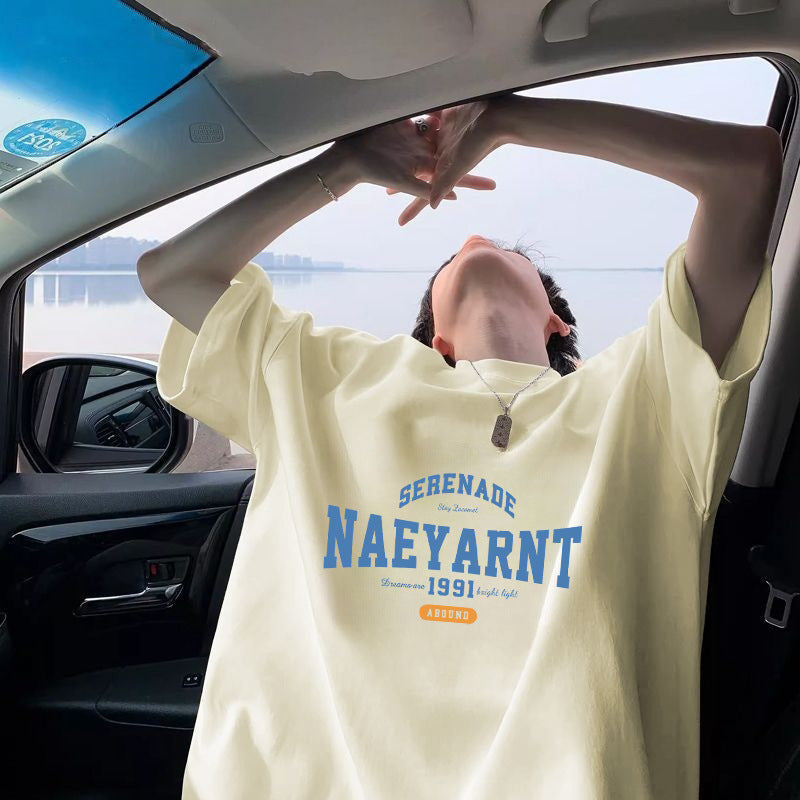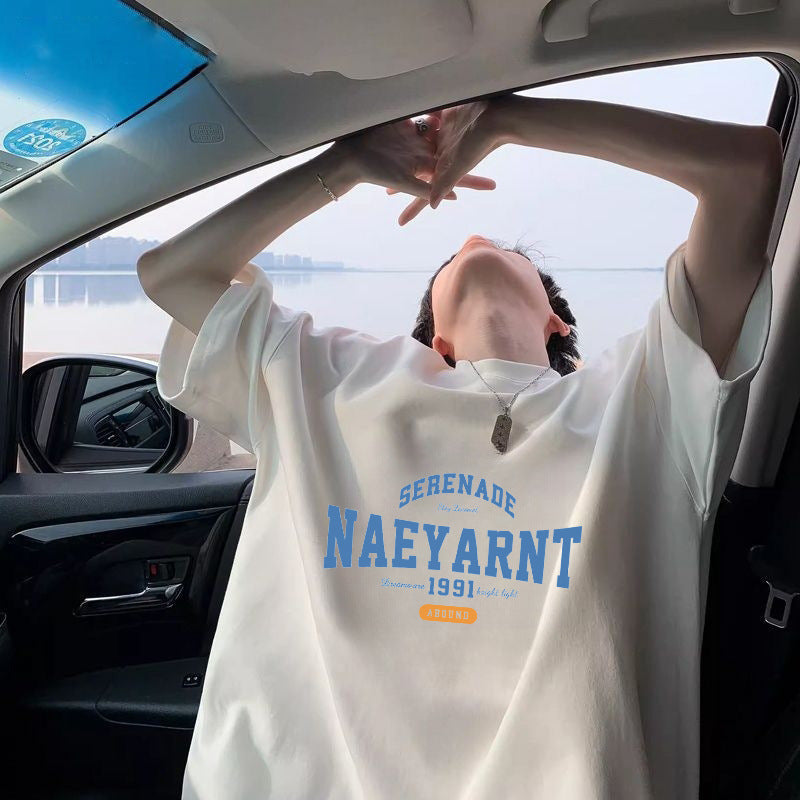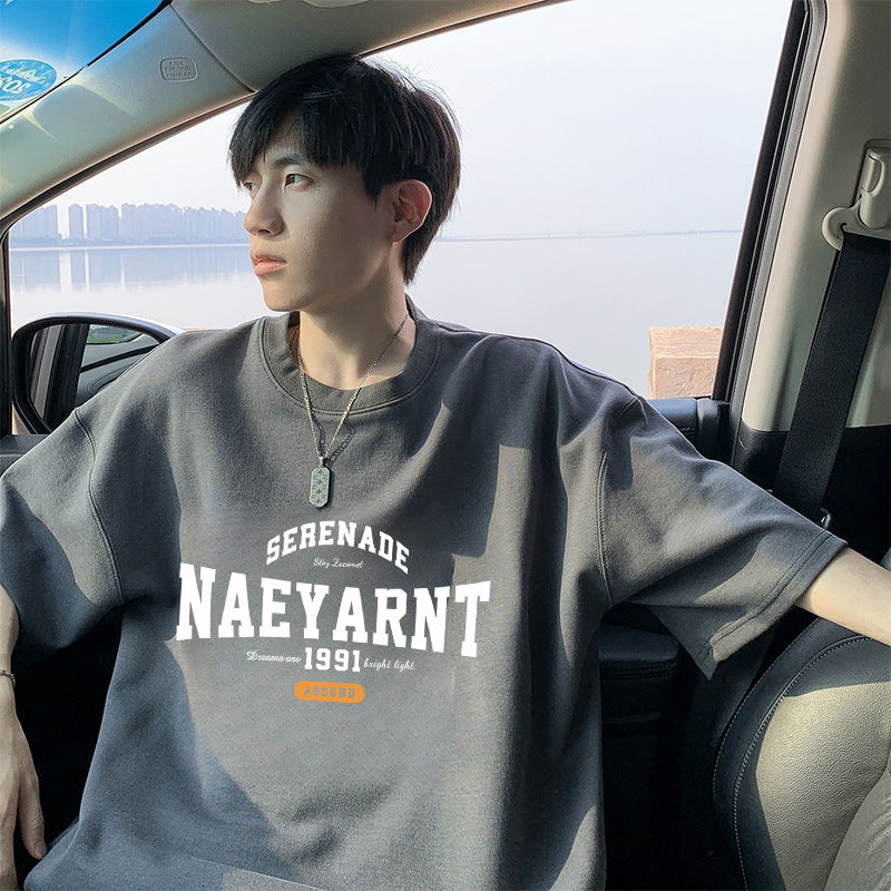 100%Cotton Short Sleeve t T-shirt Men's Summer New Hong Kong Style ins Trendy Loose Half-Sleeve Fashionable Versatile Simple Top