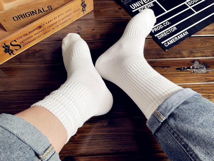 100%Pure Cotton Xinjiang Cotton Socks Men and Women Sports Socks Black and White Solid Color Autumn Winter Four Seasons Student Couple Deodorant Short Socks