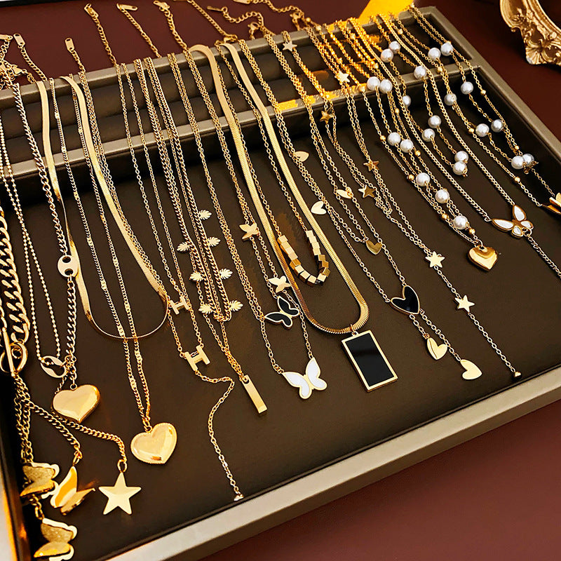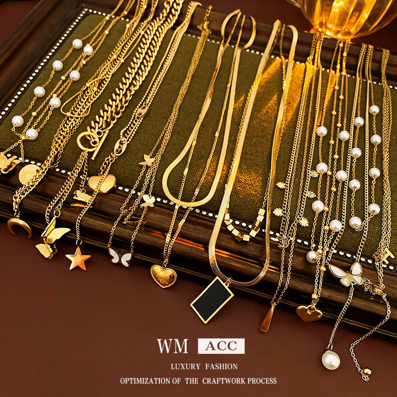 18K Real Gold Plated Moon Heart Pendant Necklace Simple Versatile Elegant Collarbone Chain Light Luxury High-End Necklace