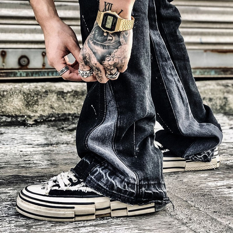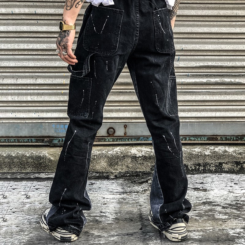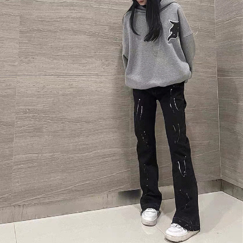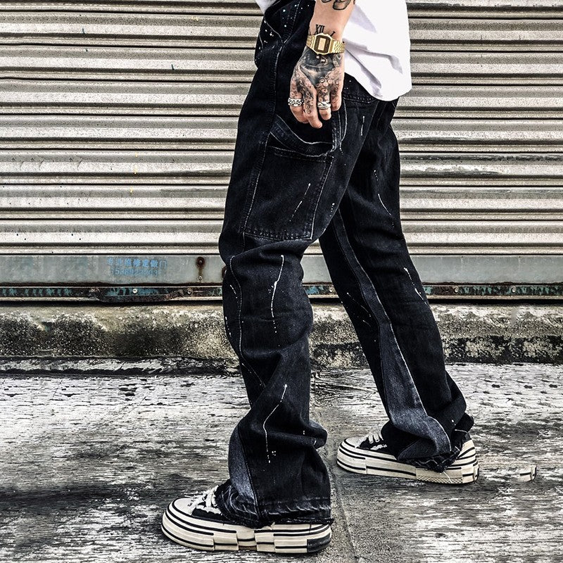 2023New Graffiti Ink Splash Damage Dept Casual Retro Niche vibo High Street Men's and Women's Flared Jeans