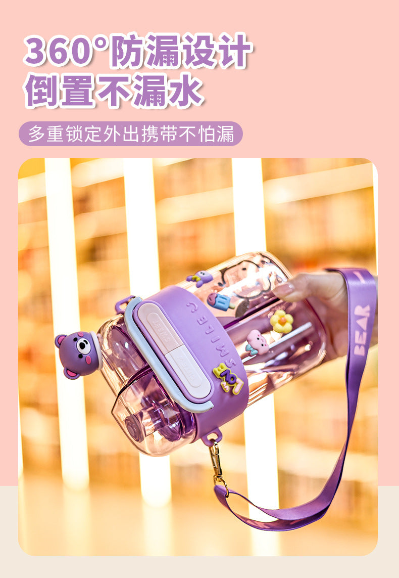2025Cartoon Children's Special Straw Cup Large Capacity Water Cup High Temperature Resistant Double Cup Diagonal Water Bottle Anti-fall Cup