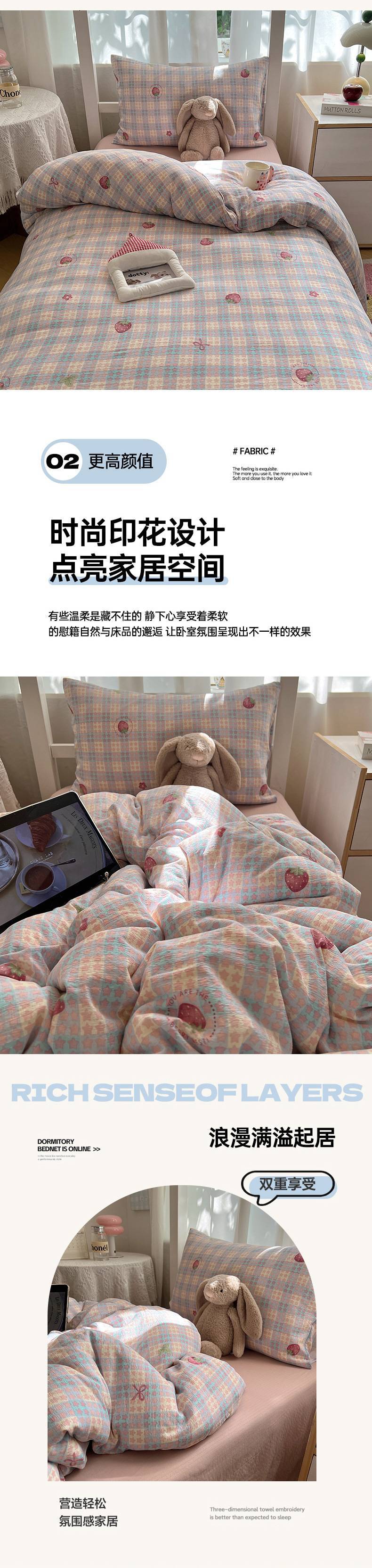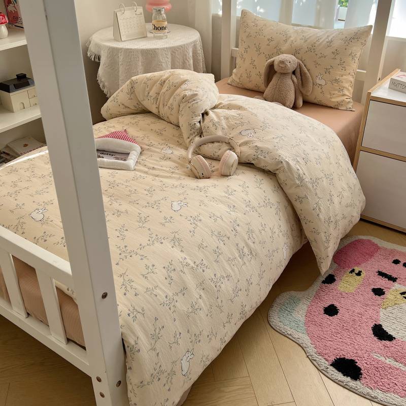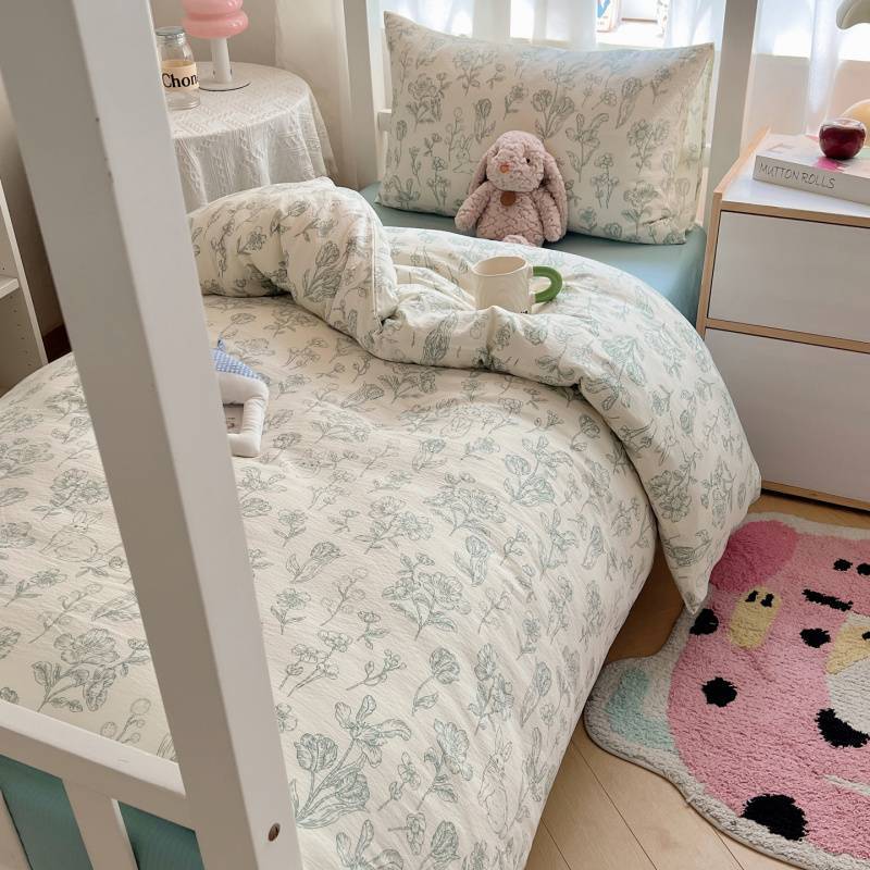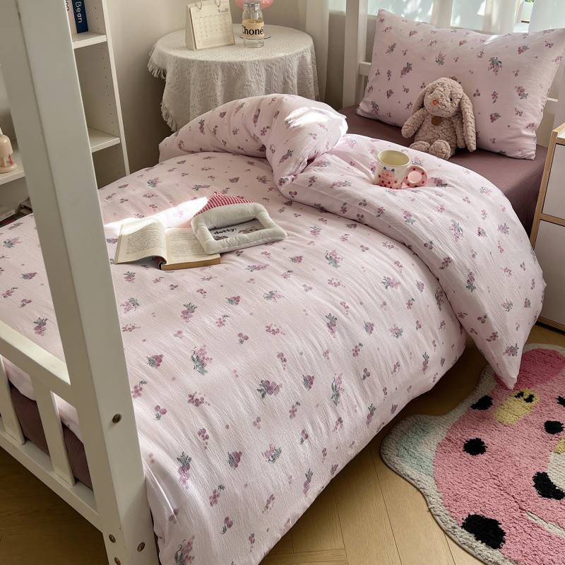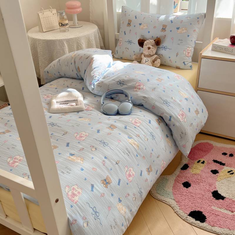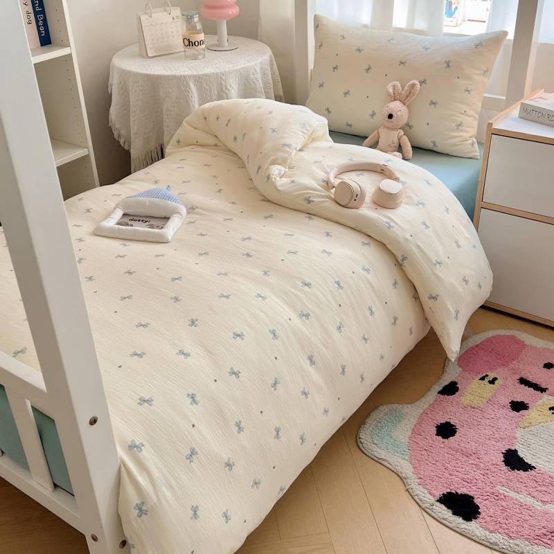 2025Hot-Selling Double-Layer Gauze Student Season Bed Single Quilt Cover Dormitory Dormitory Bunk Bed Three-Piece Set
