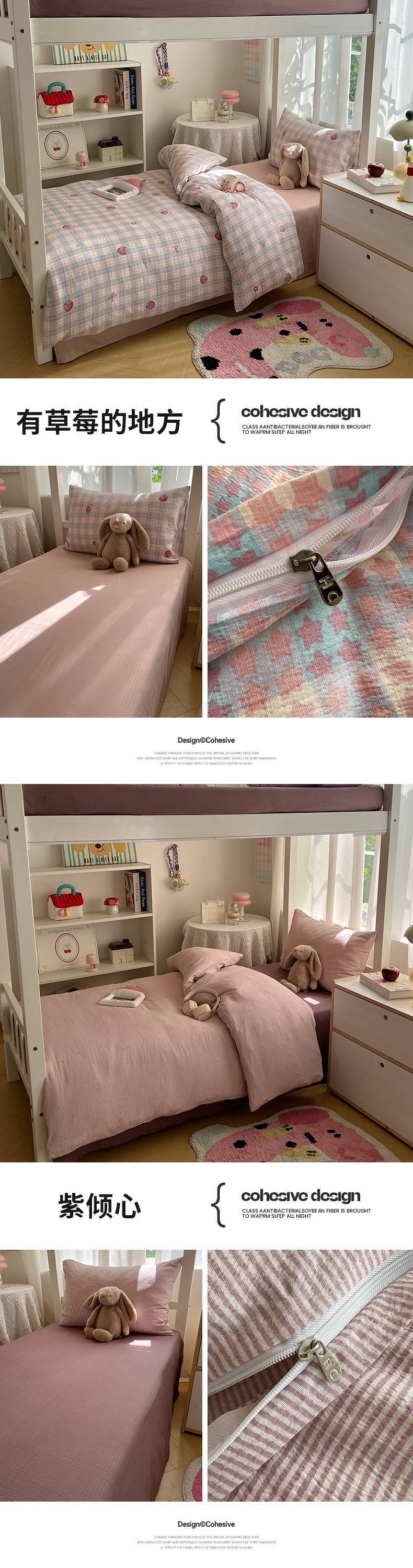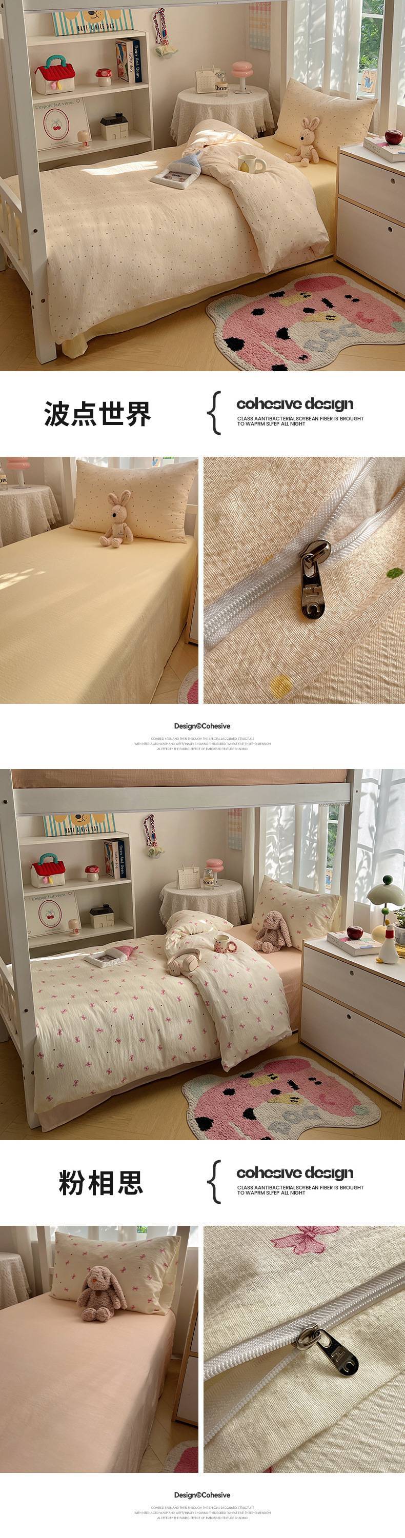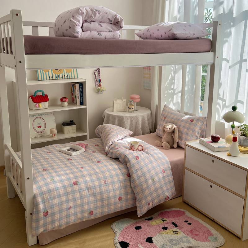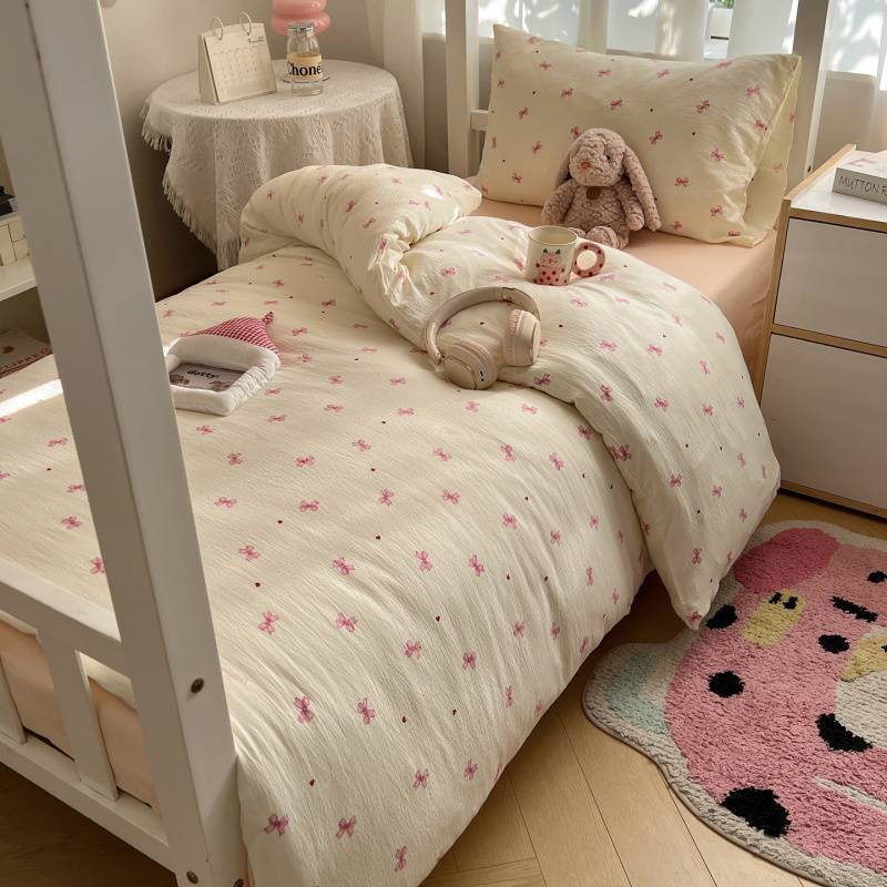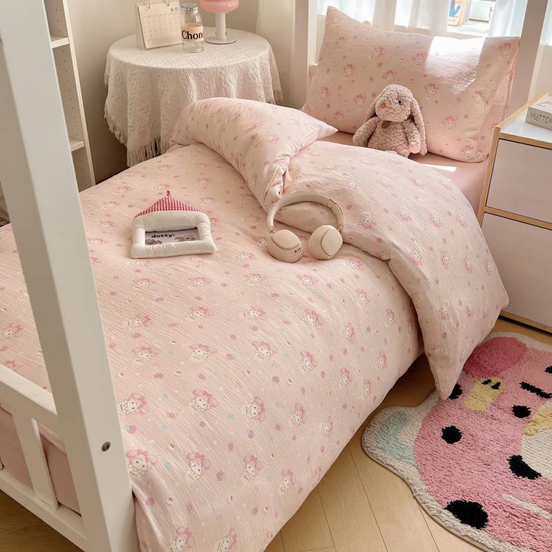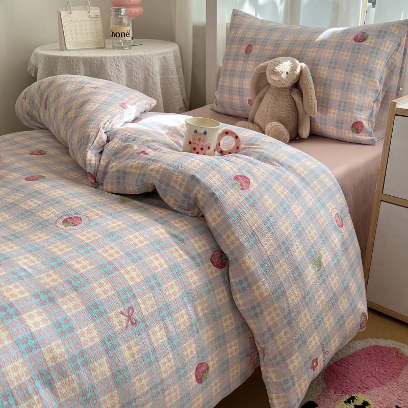 2025Hot-Selling Double-Layer Gauze Student Season Bed Single Quilt Cover Dormitory Dormitory Bunk Bed Three-Piece Set
