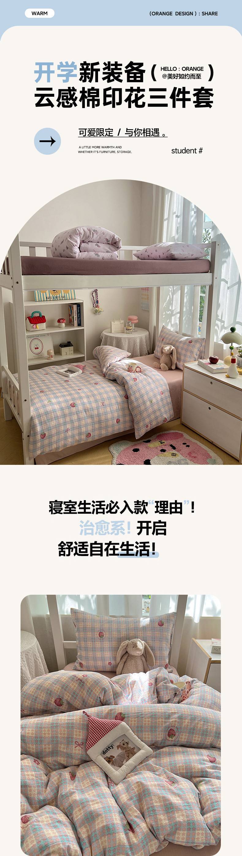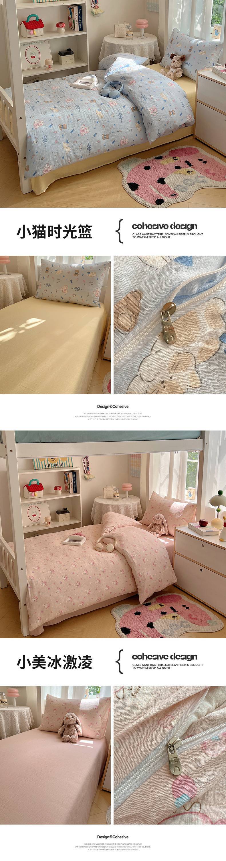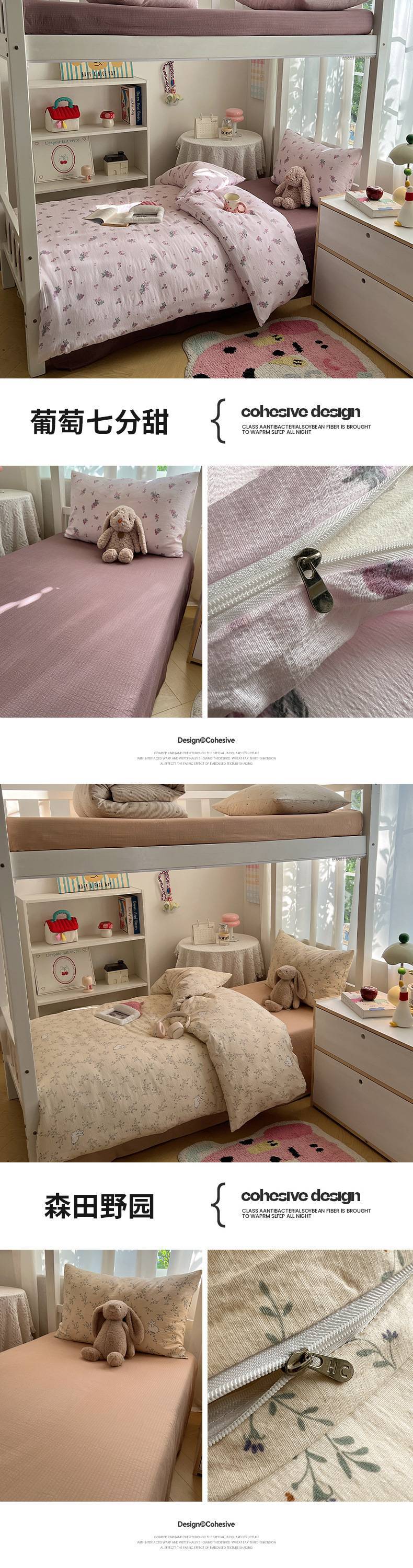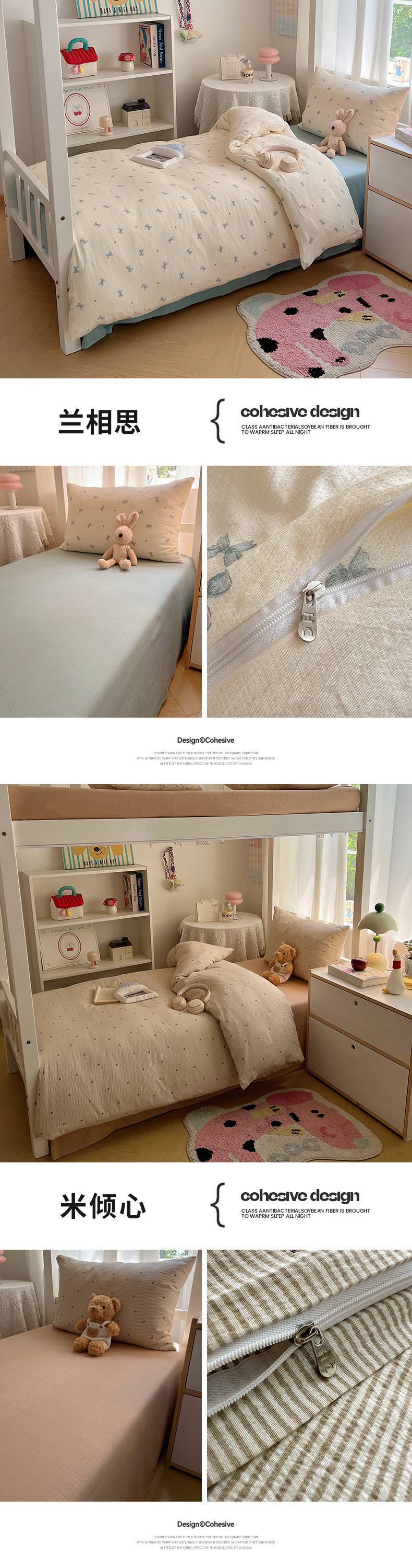 2025Hot-Selling Double-Layer Gauze Student Season Bed Single Quilt Cover Dormitory Dormitory Bunk Bed Three-Piece Set