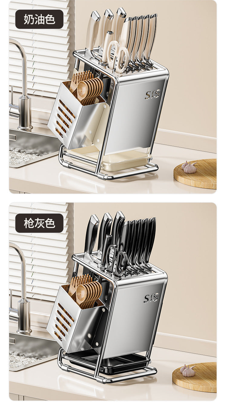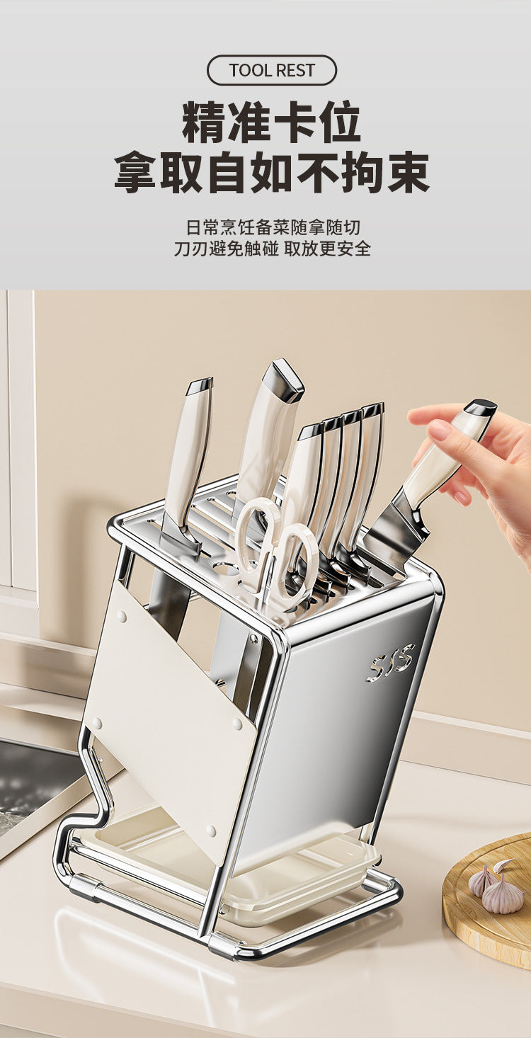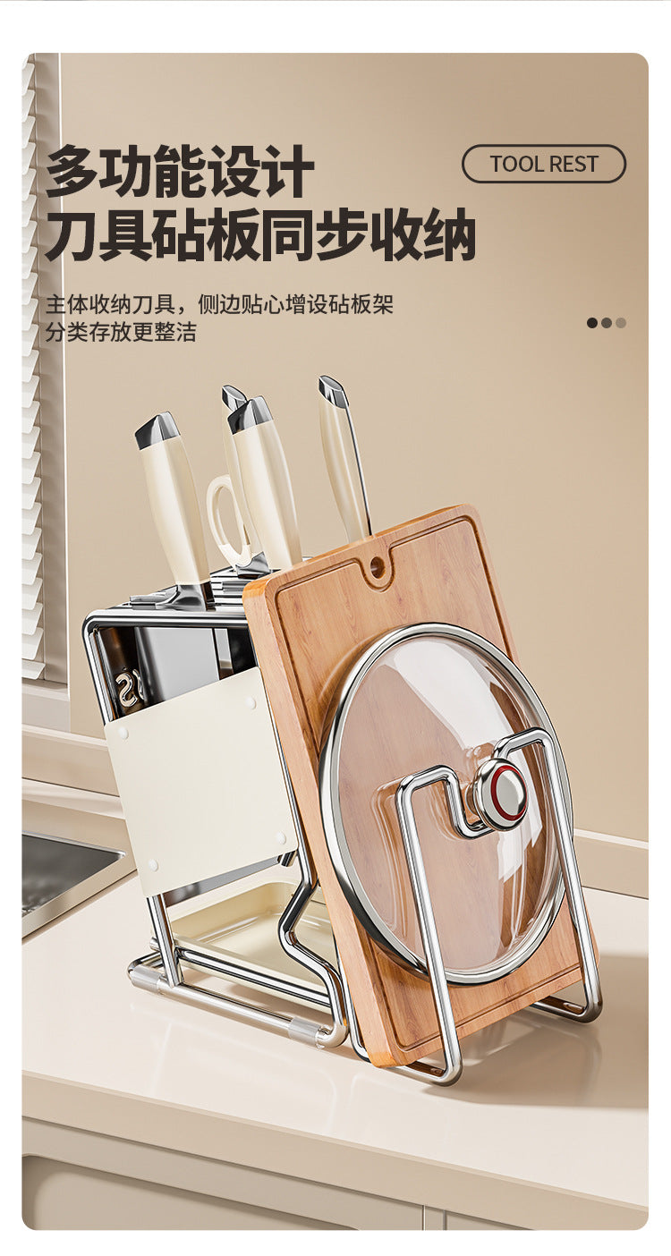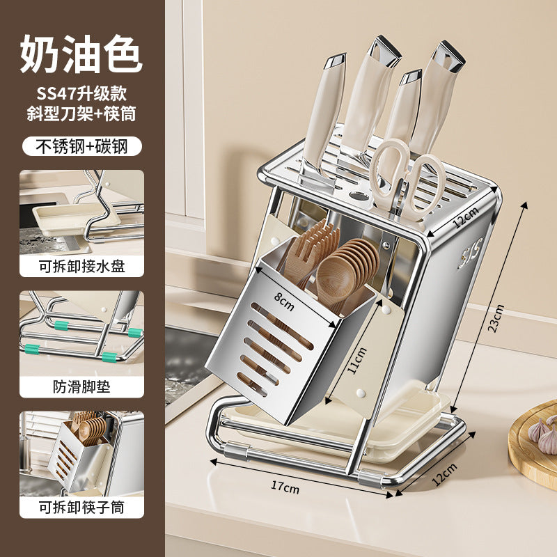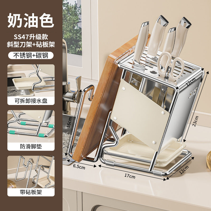 2025New Kitchen Knife Rack Storage Rack Cream Style Multifunctional Countertop Knife Holder Organizer Knife Storage Rack