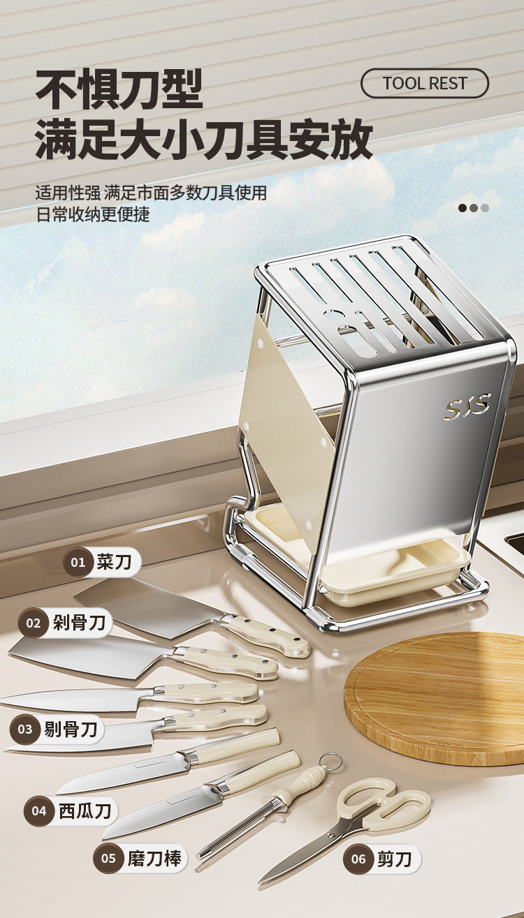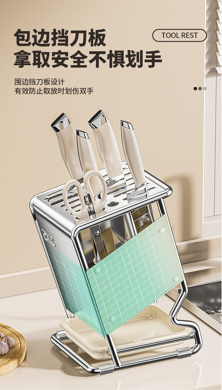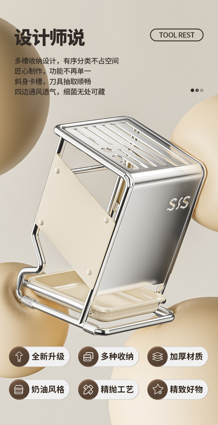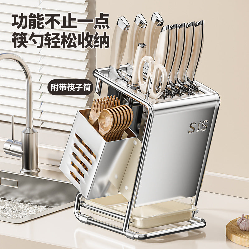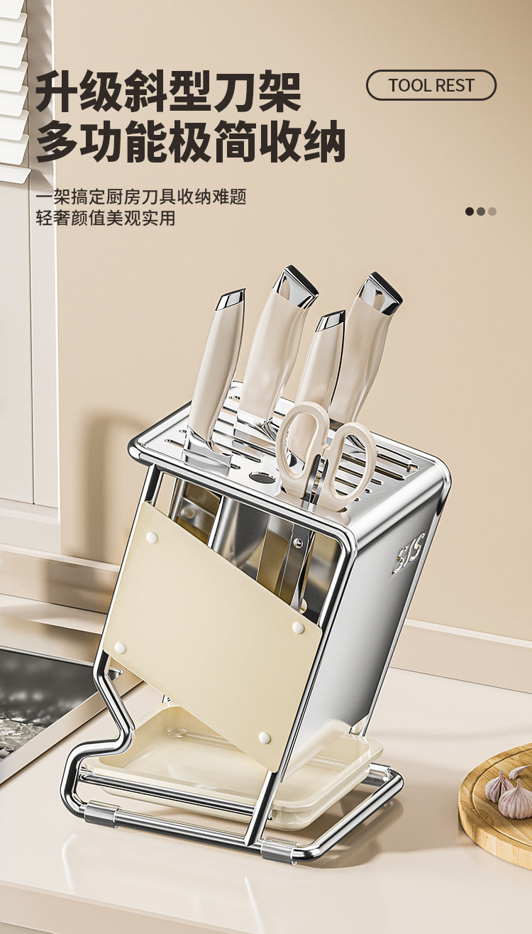 2025New Kitchen Knife Rack Storage Rack Cream Style Multifunctional Countertop Knife Holder Organizer Knife Storage Rack