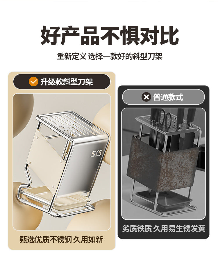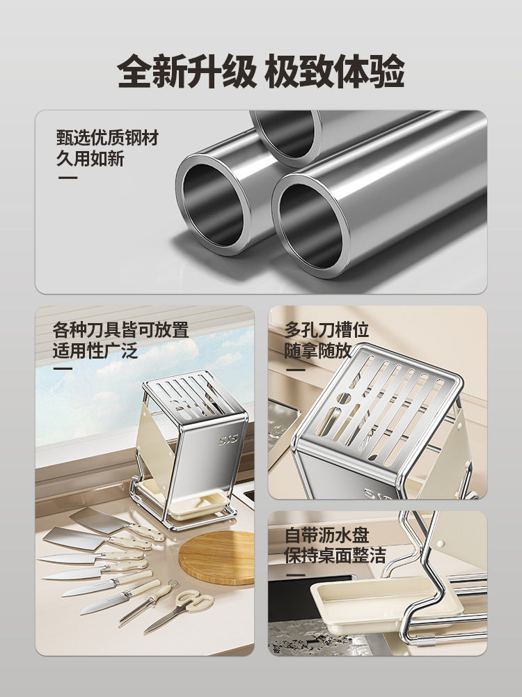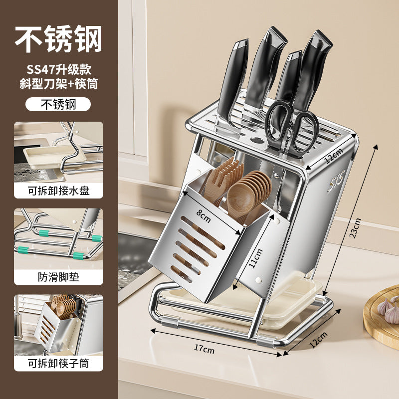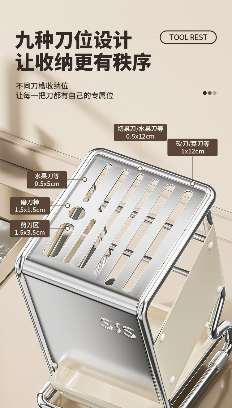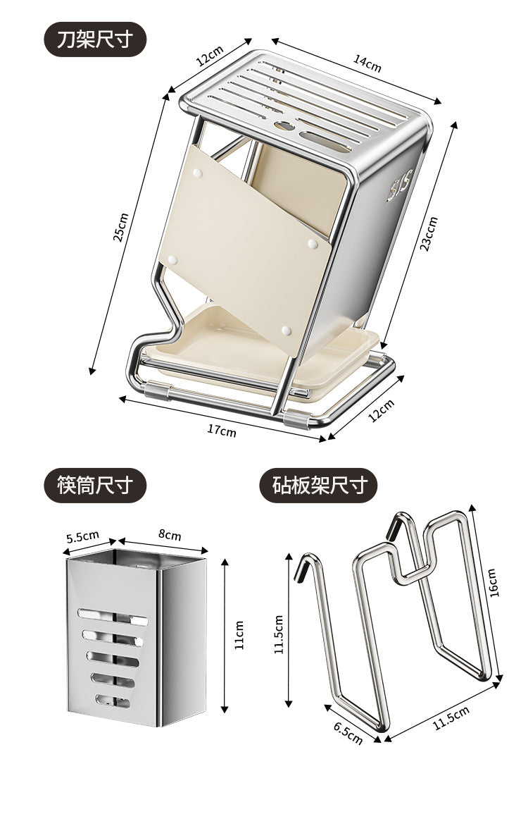 2025New Kitchen Knife Rack Storage Rack Cream Style Multifunctional Countertop Knife Holder Organizer Knife Storage Rack