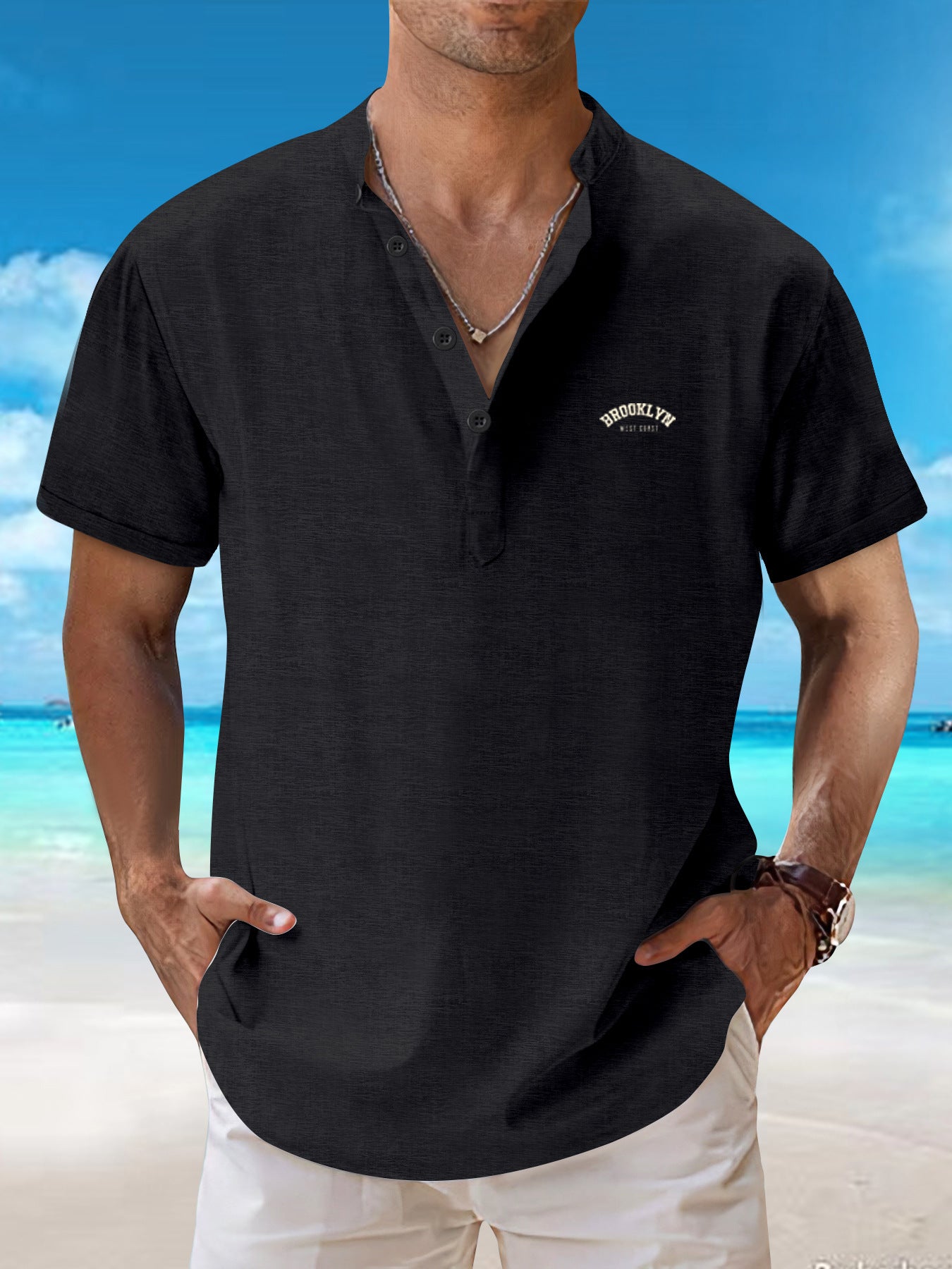 2025New retro loose textured woven shirt for men2025Summer New Stand Collar T Breathable Short Sleeve T-Shirt