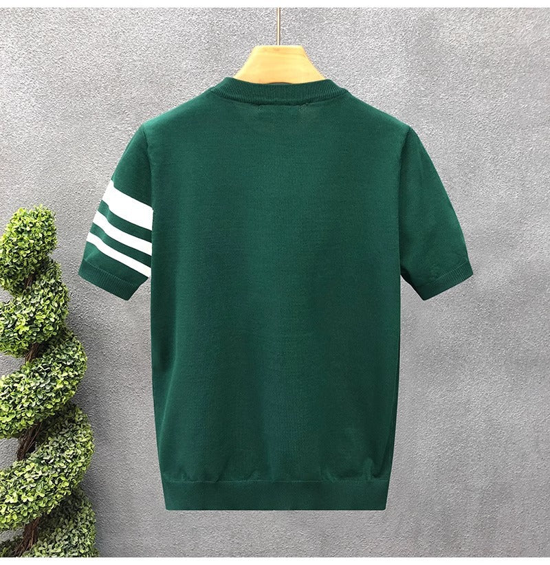 2025New Short Sleeve Knitted Shirt for Men, Striped, Simple, High-End Business, Mature, Slim Fit, Ice Silk T Men's Shirt