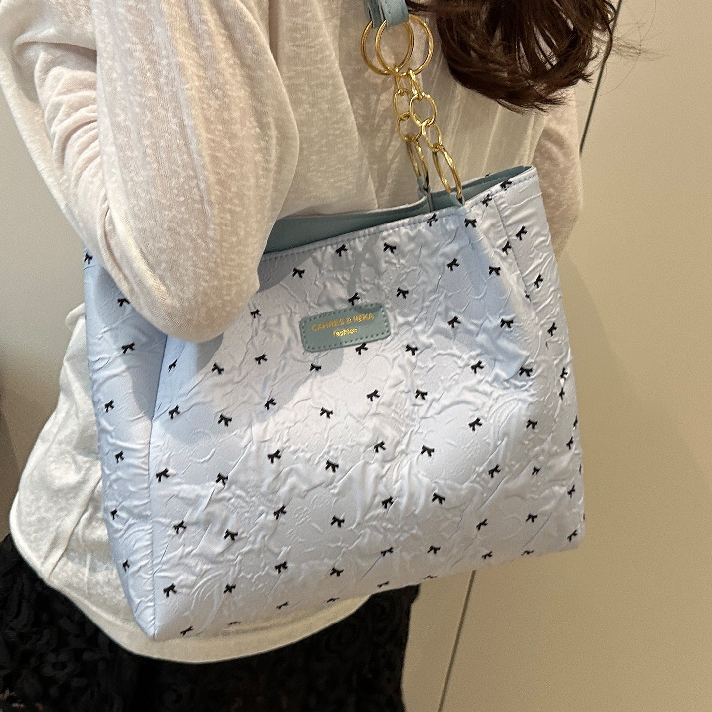 2025Trendy Fashion Bowknot Pleated Large Capacity New Casual Simple Commuter Single Shoulder Crossbody Underarm Bag for Women