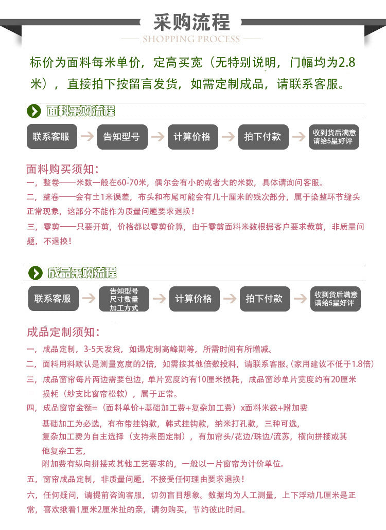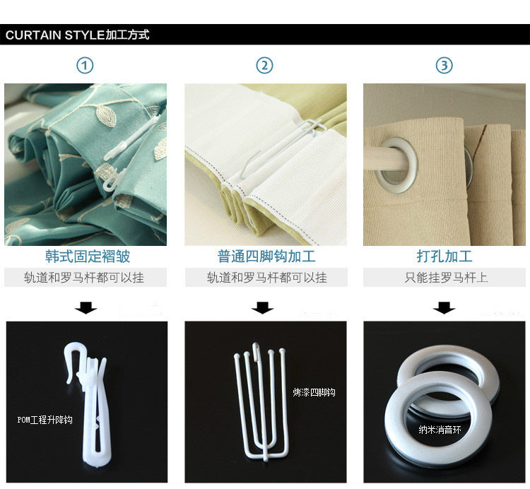 4. Curtain processing fee: 10 yuan/meter for drilling/Korean pleats, 8 yuan/meter for hooks.
