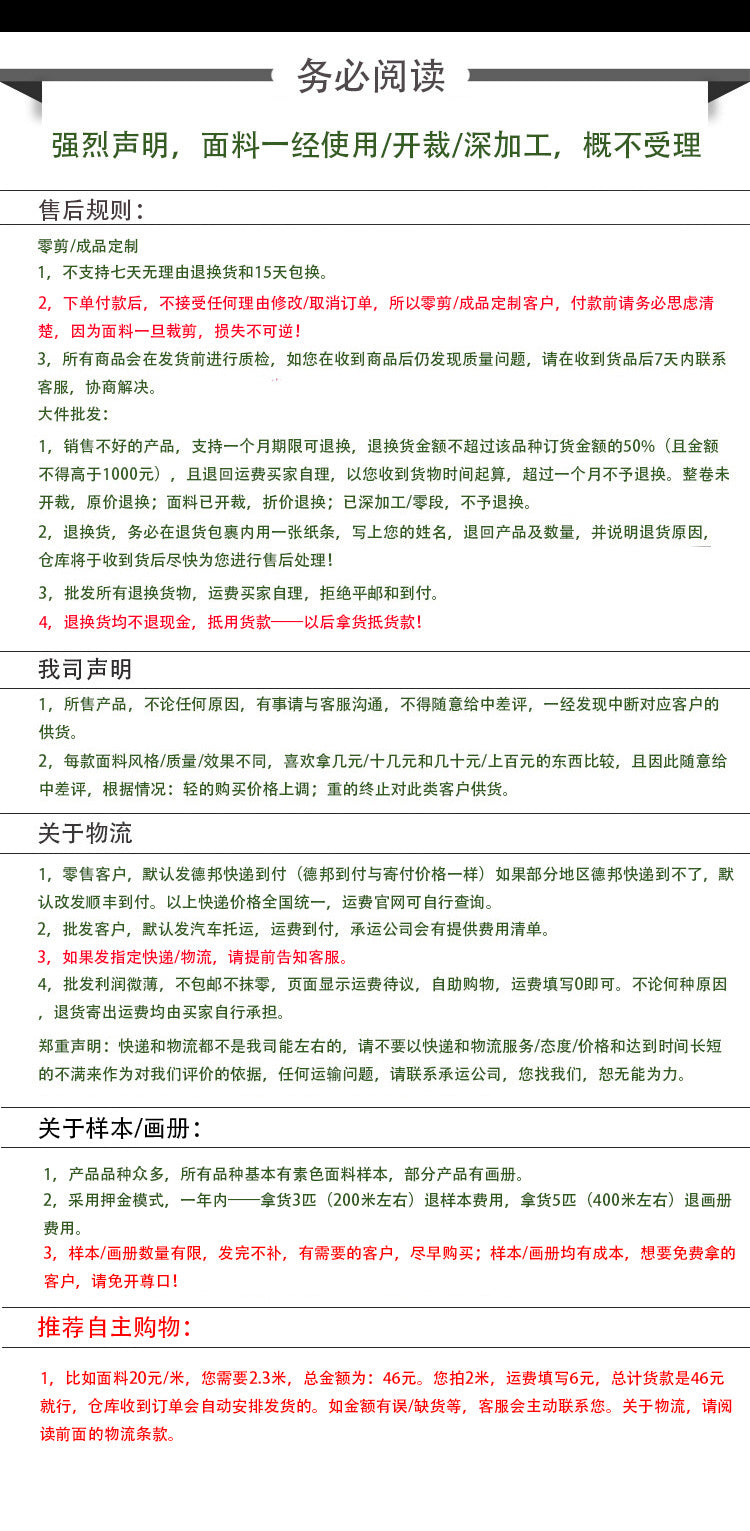 3. Additionally, it's important to note thatCustomized products do not support 7-day no-reason returnsSince you are ordering custom sizes, if you do not accept these terms, please refrain from purchasing. Thank you for your cooperation.