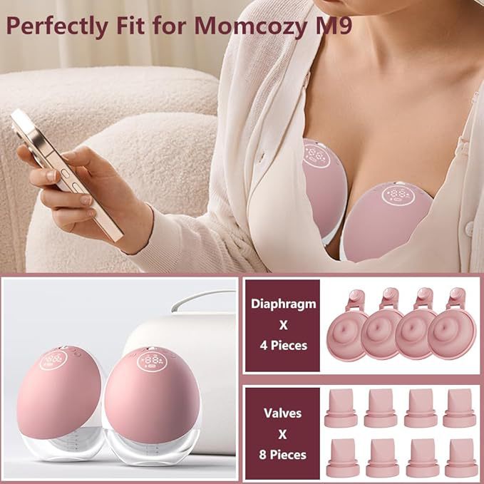 - [Compatibility]: These silicone duckbill valves (excluding plastic parts) and silicone diaphragms (plastic parts not included) are only compatible with the Momcozy Upgraded M9 Breast Pump, and the accessories are compatible with the Momcozy Upgraded Mobile Flow M9 Breast Pump. Manufactured by BDICOVE, not original Momcozy Pump Parts.