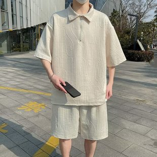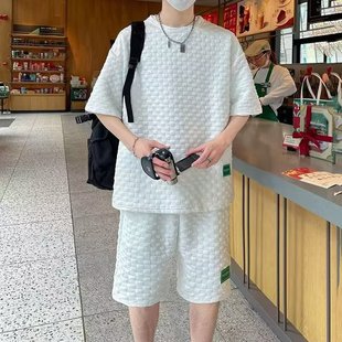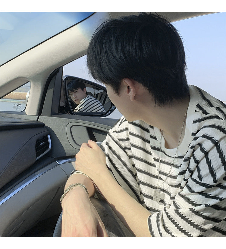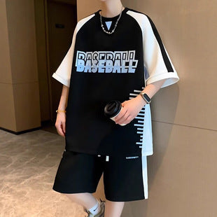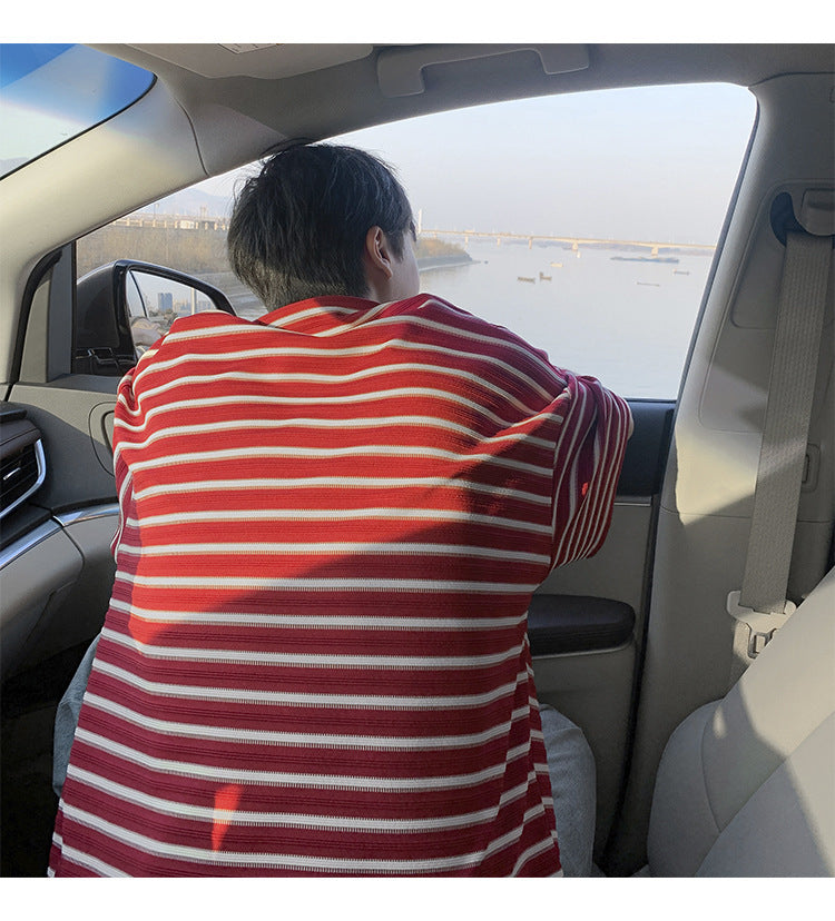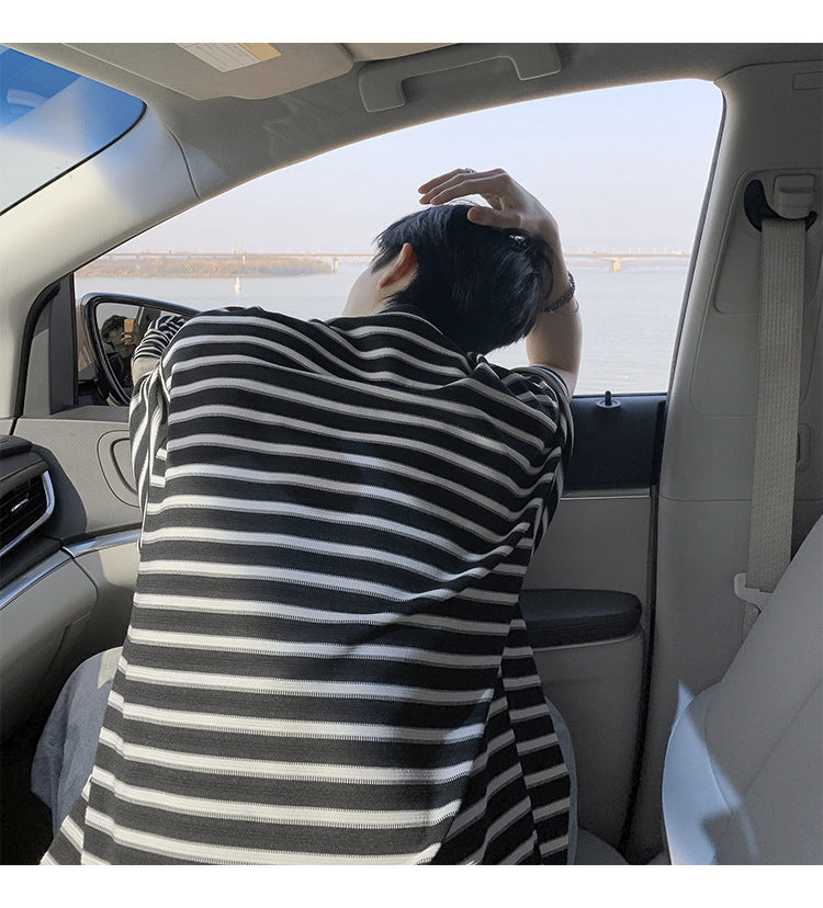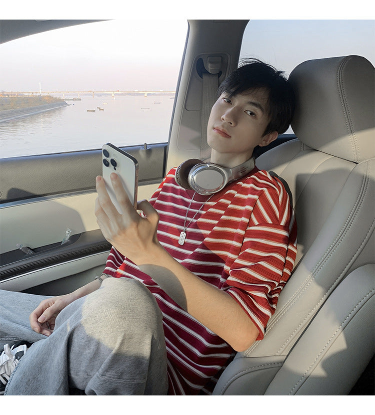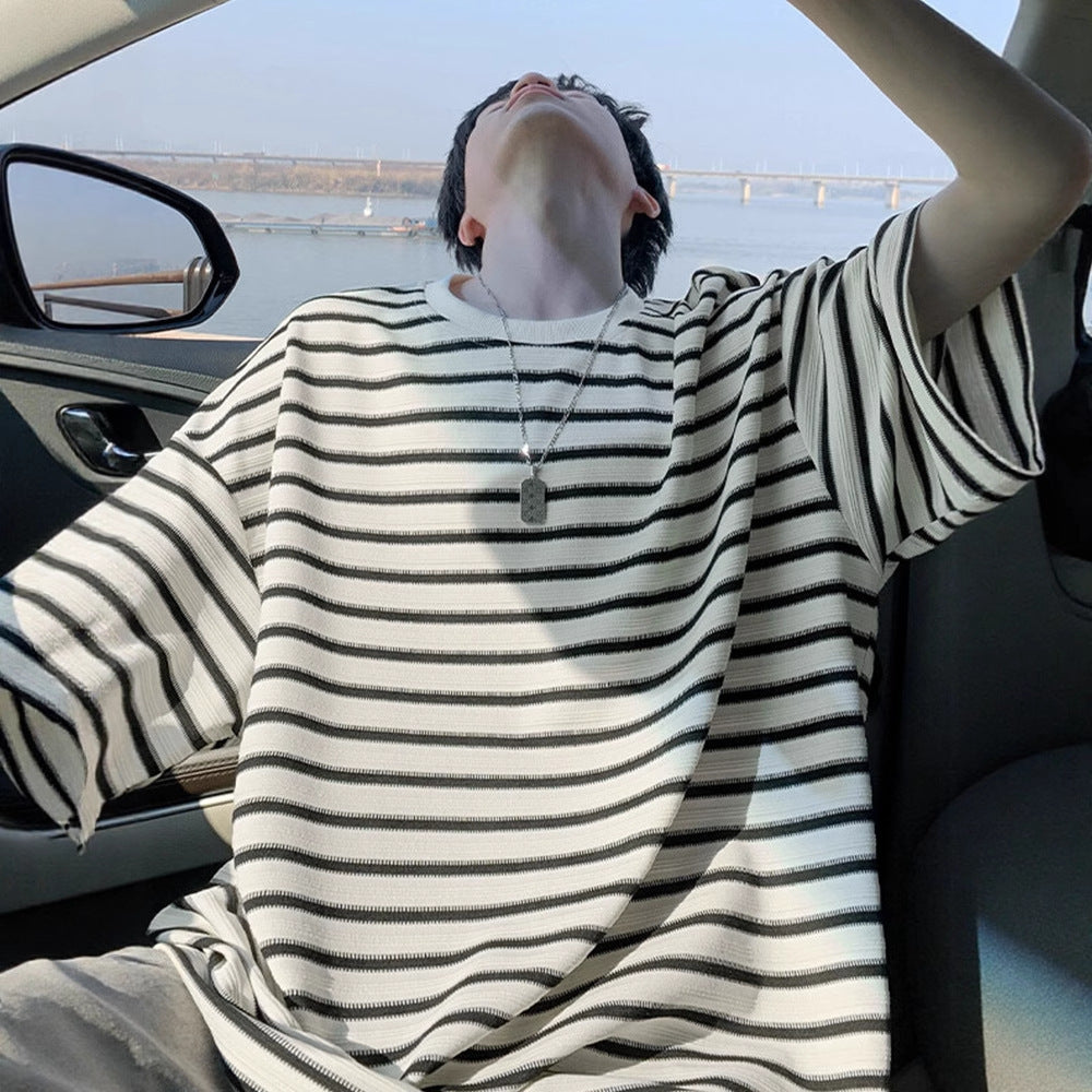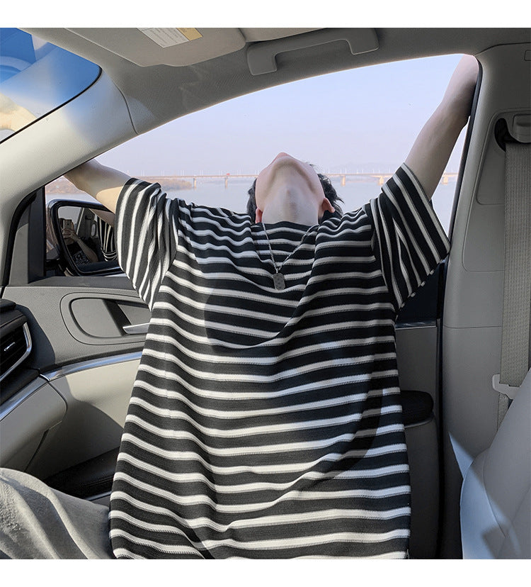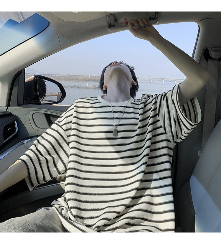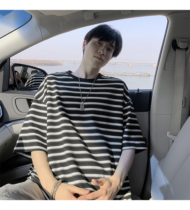 American striped short sleeve t Men's Summer Trendy Neck Loose Cotton