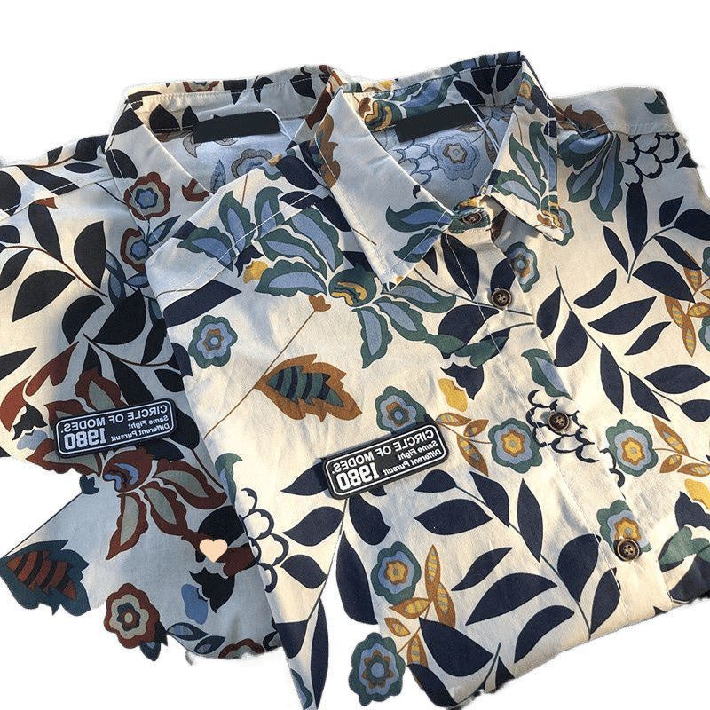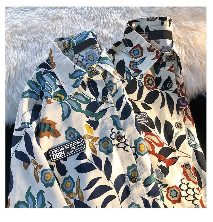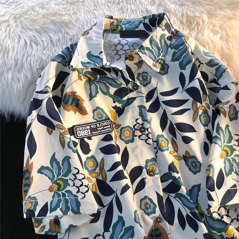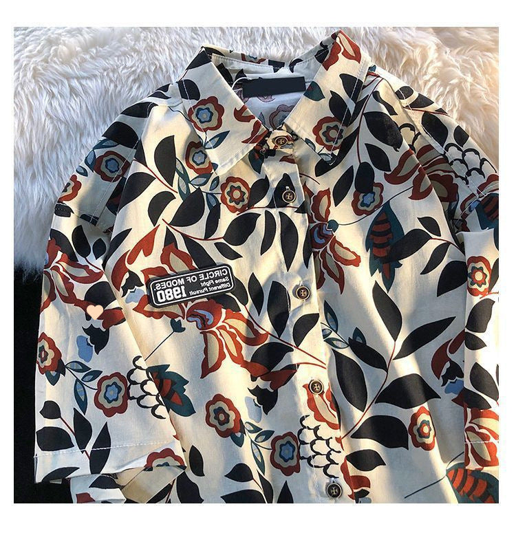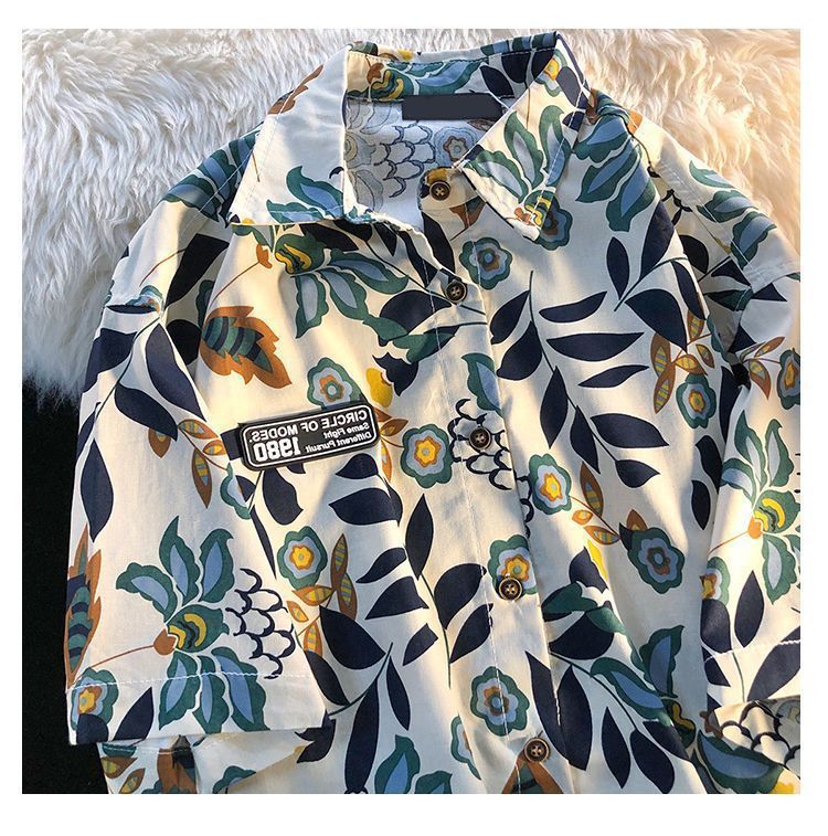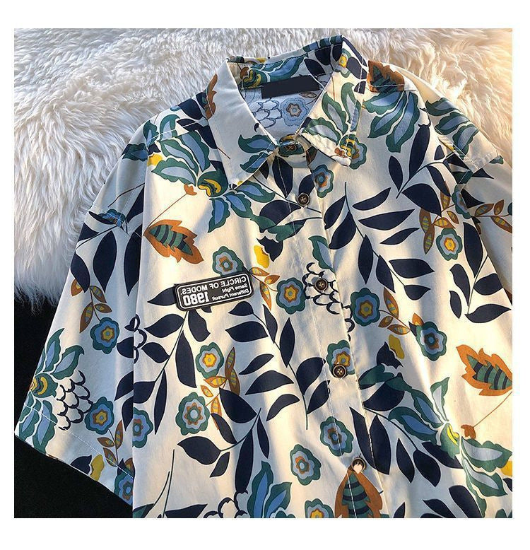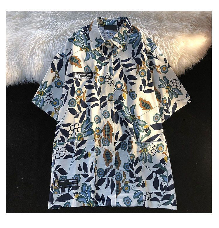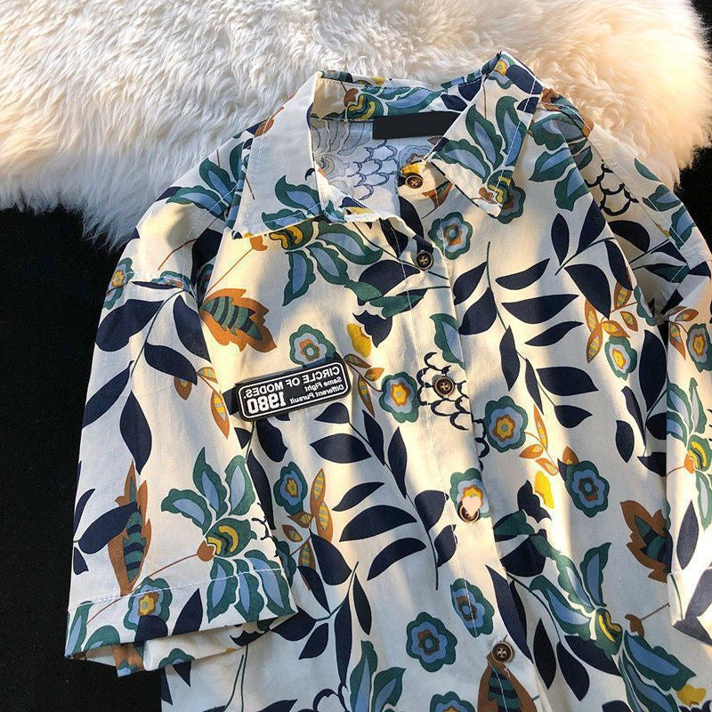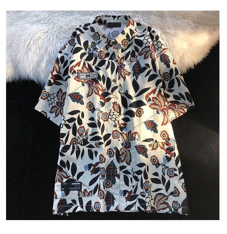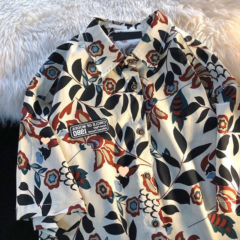 American Style Full Print Design Niche Shirt for Men and Women Summer Hong Kong Style Simple Loose College Style Couple Short Sleeve Trendy