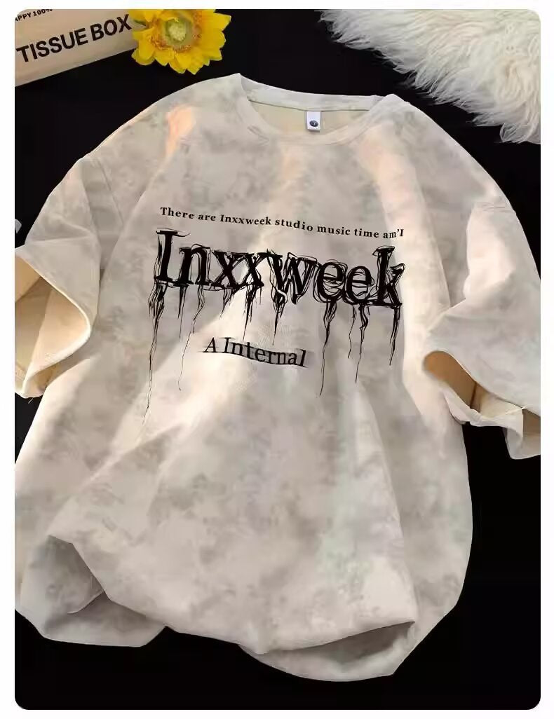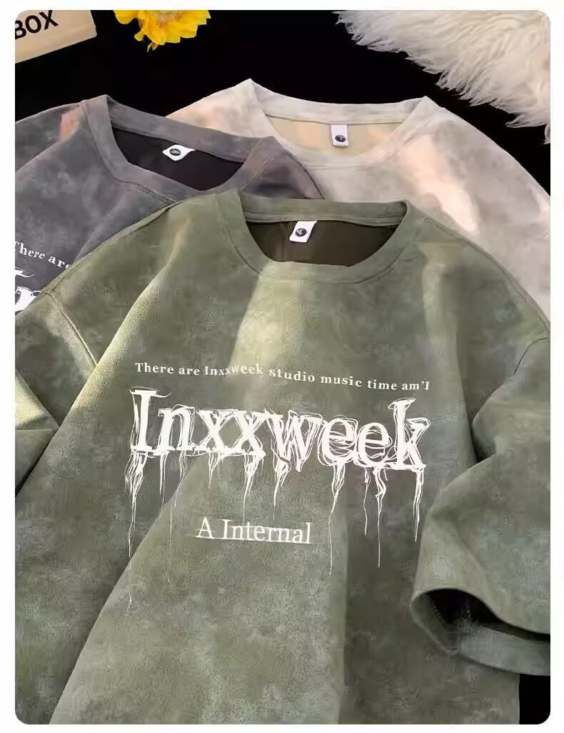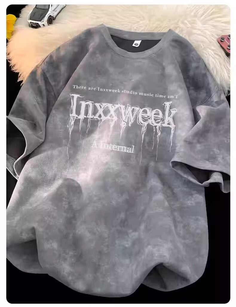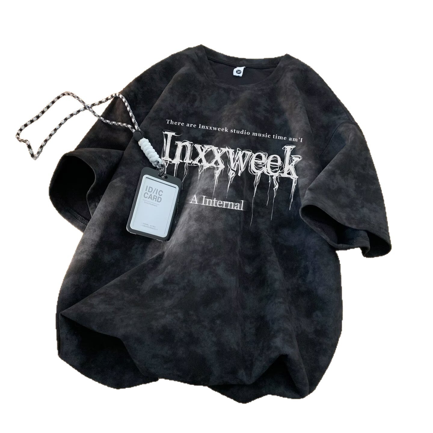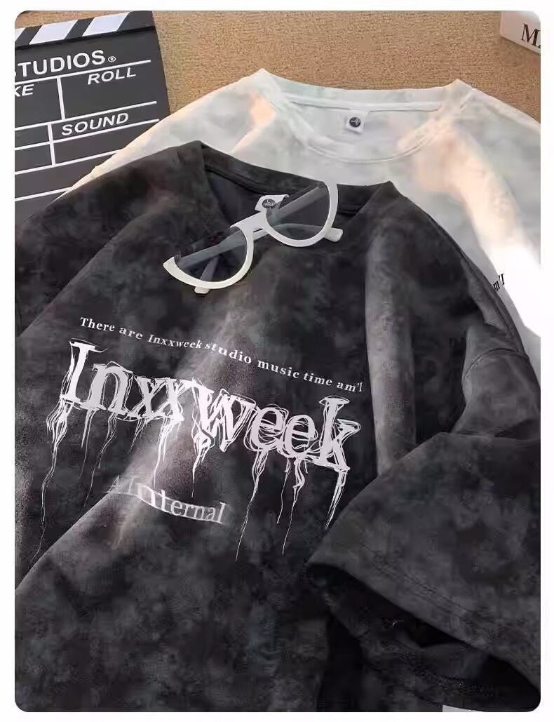 American Style Tie-Dye Short Sleeve T Men's Summer T-shirt2025New Style Dirty Street Style Casual Loose Breathable Plus Size T-Shirt