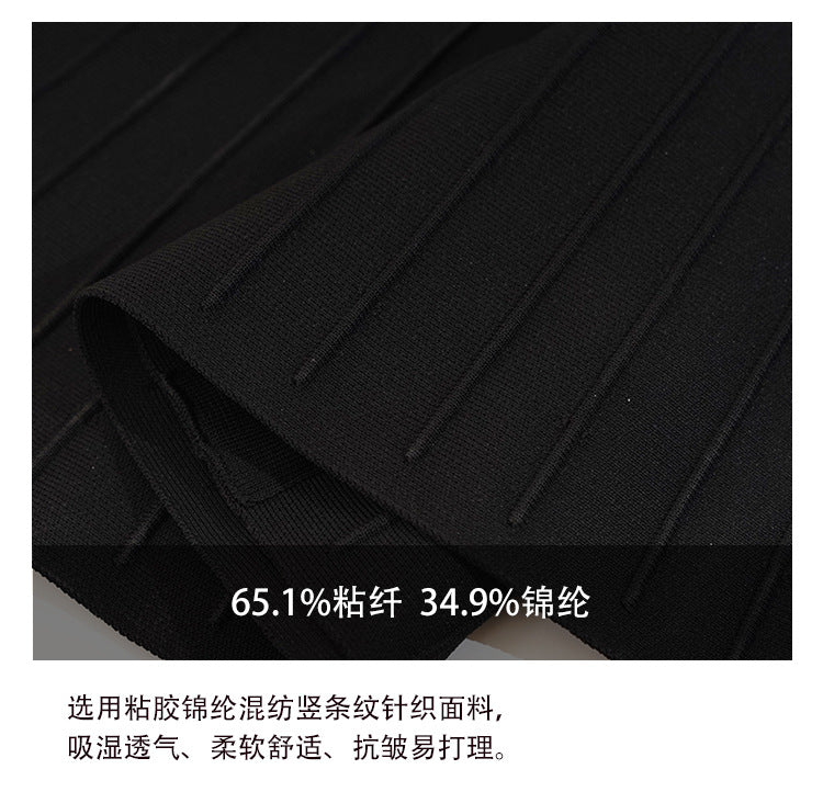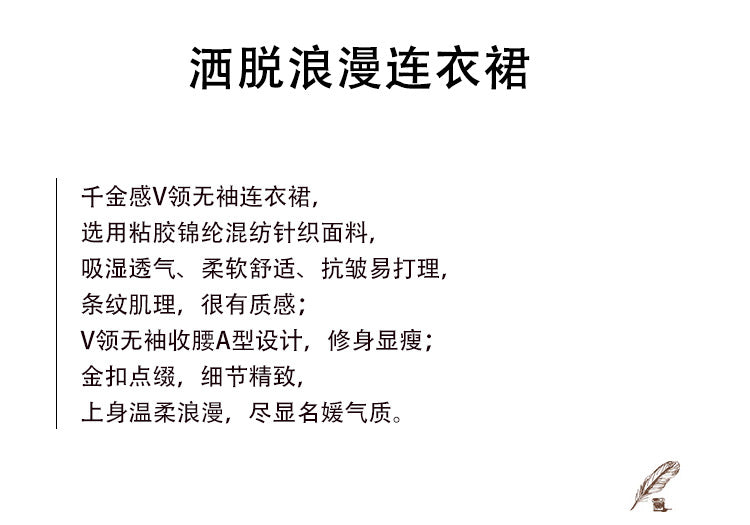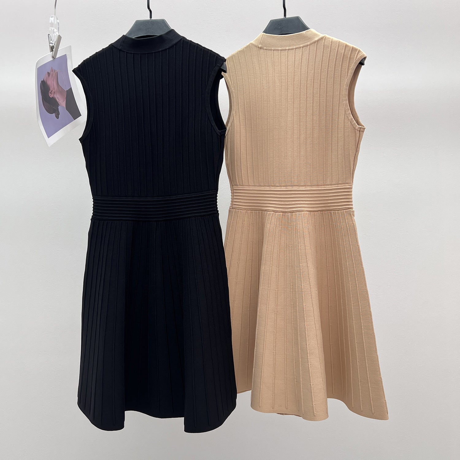 Amphiona2025New Style with a Sense of Luxury V Collar Sleeveless A Slim Fit Waist Cinching Gold Button Striped Knitted Dress