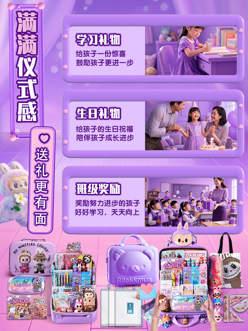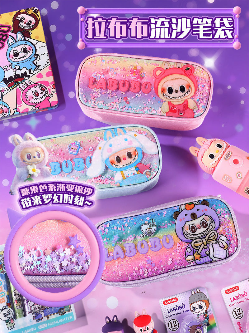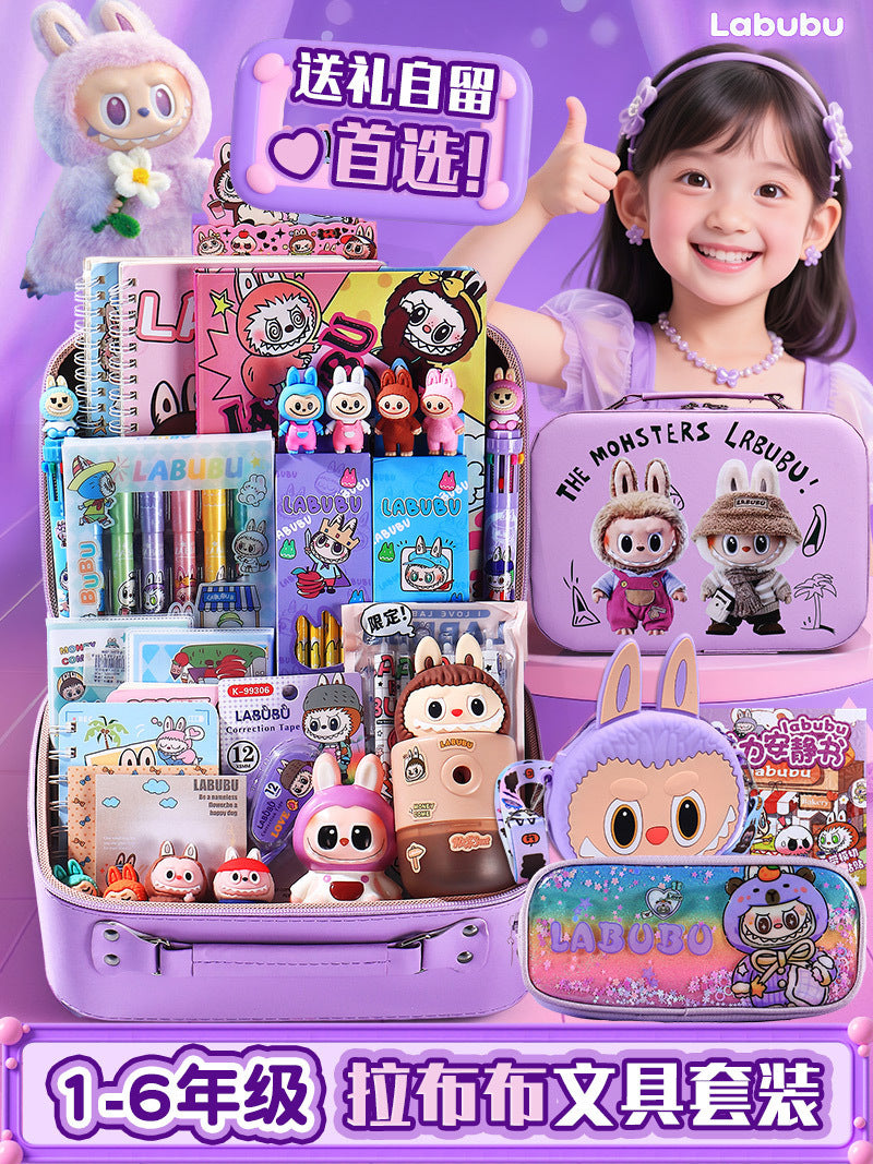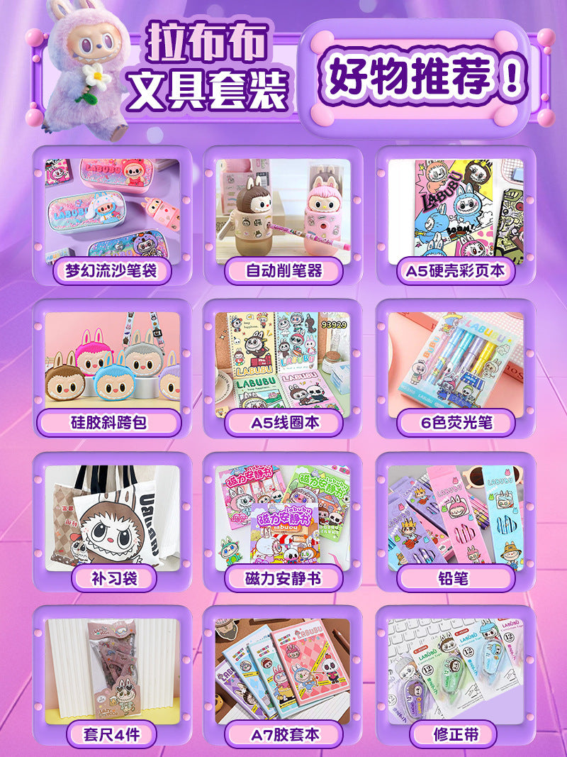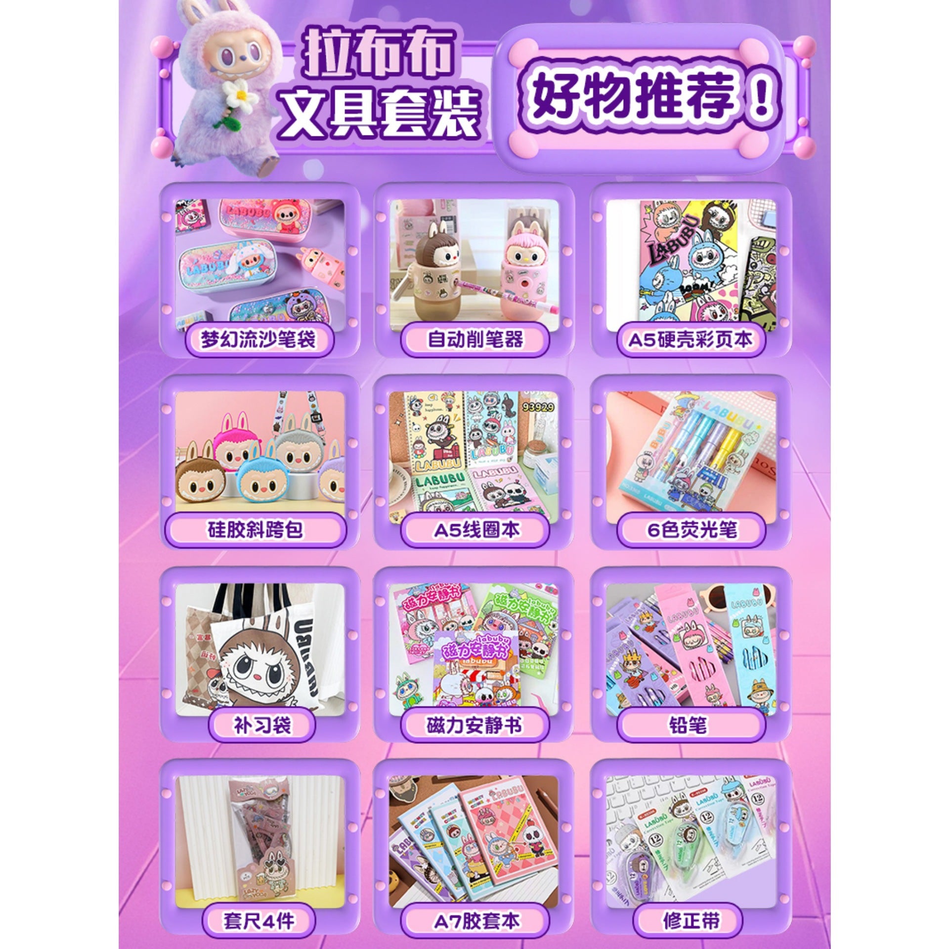 Automobiles Curtain Cloth LABUBU Stationery Set Pencil Case Notebook Pencil Spiral Notebook Set Ruler Tutoring Bag Study Supplies Collection