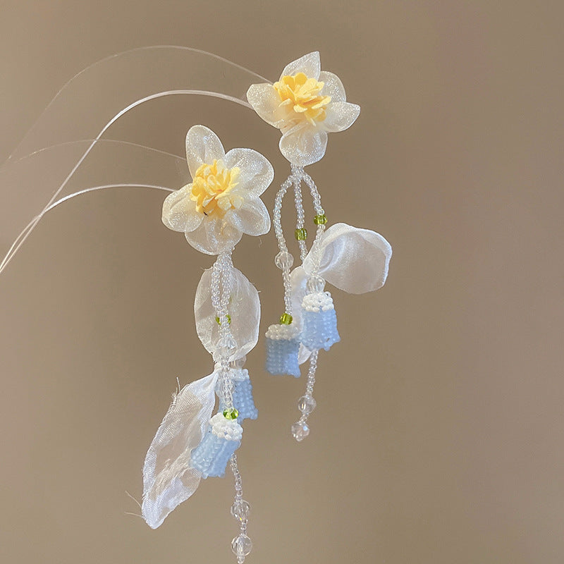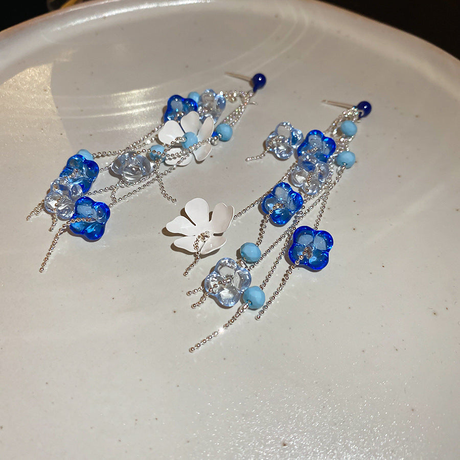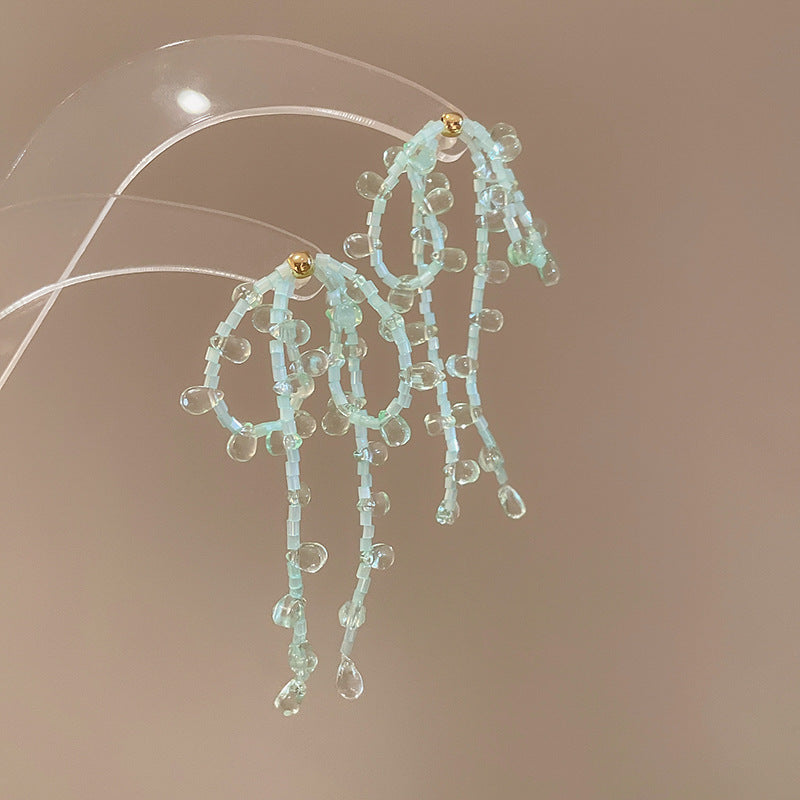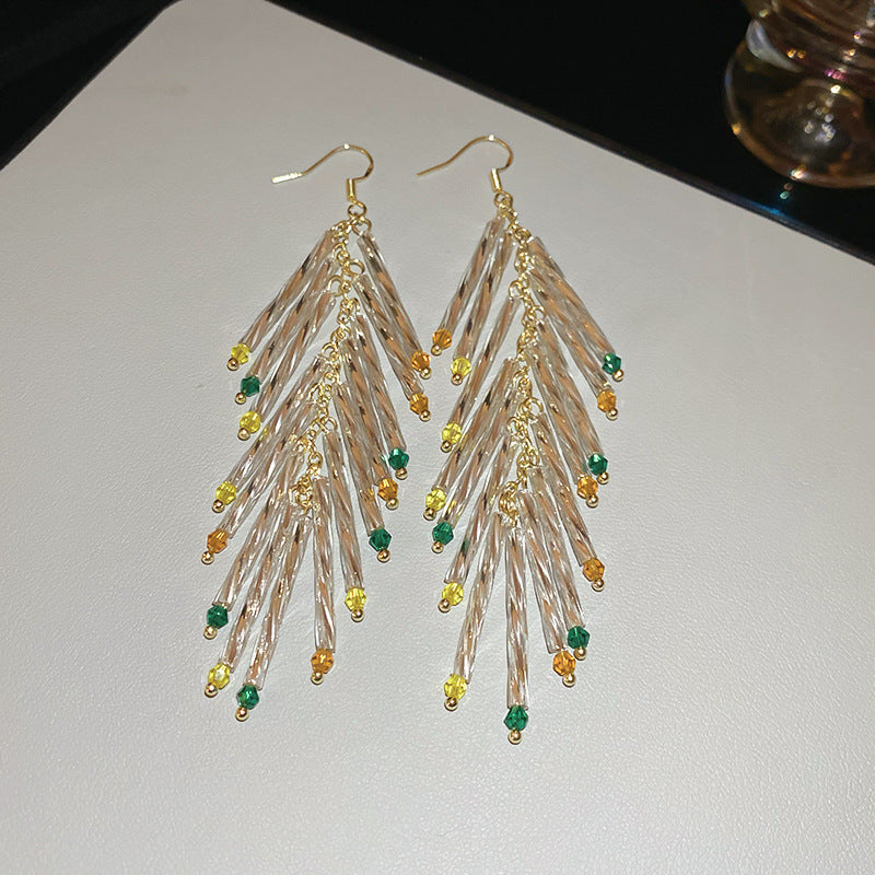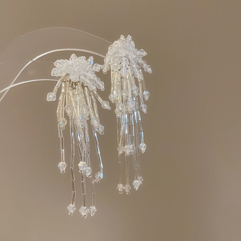 Beach Vacation Style Silver Needle Tassel Earrings Fashion Versatile Sweet Dopamine Earrings High-end Niche Earrings for Women