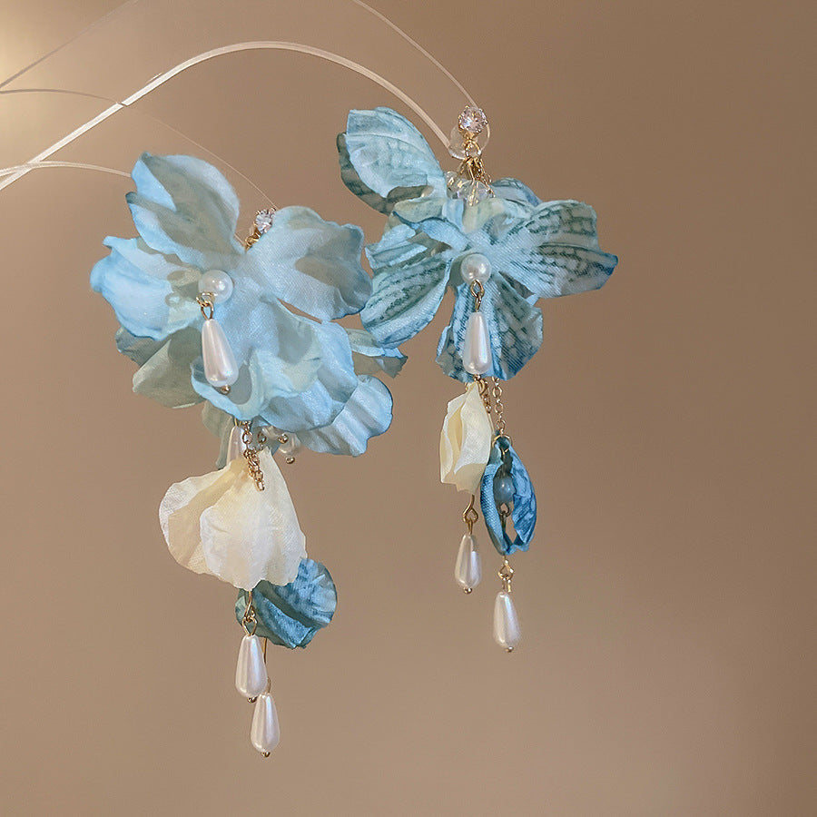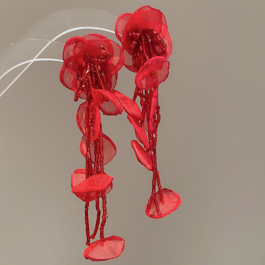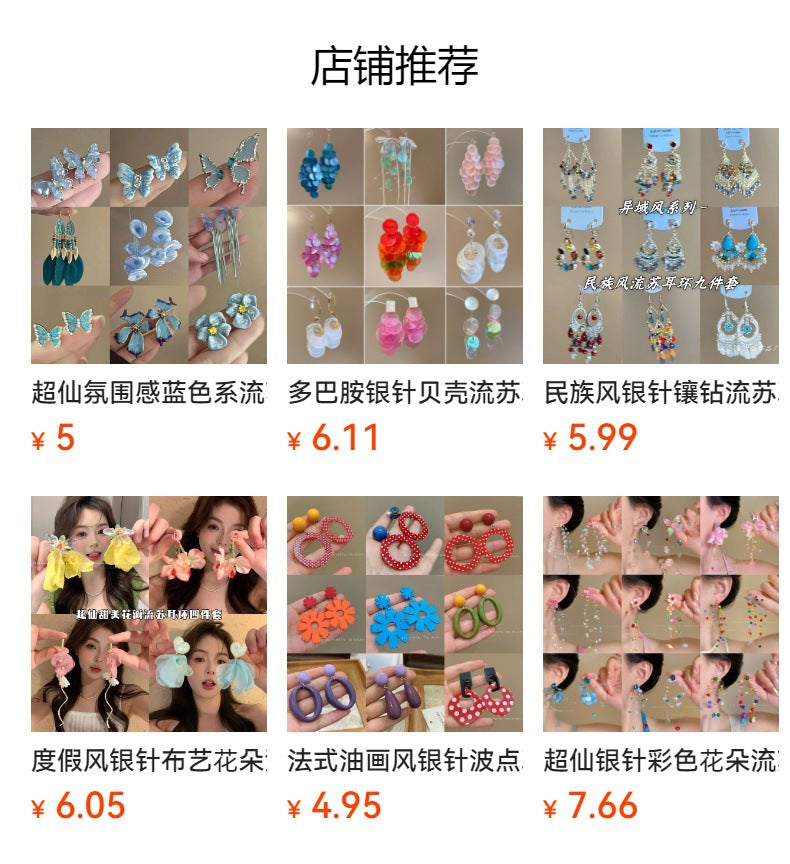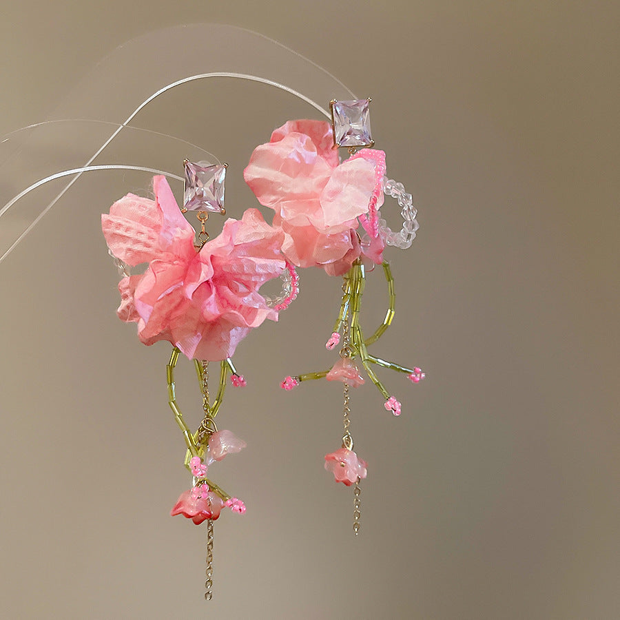Beach Vacation Style Silver Needle Tassel Earrings Fashion Versatile Sweet Dopamine Earrings High-end Niche Earrings for Women