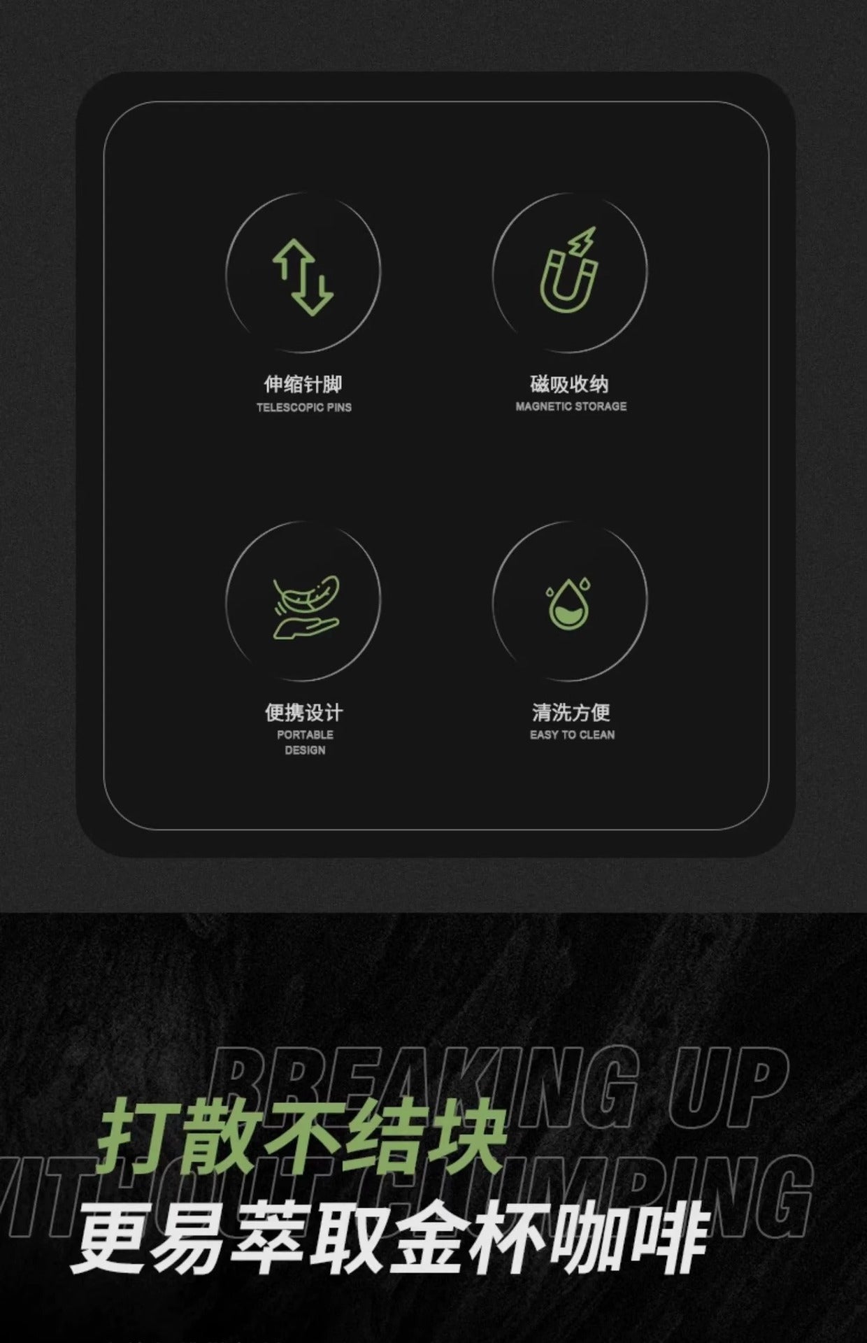 Bincoo Telescopic Magnetic Stainless Steel Powder Needle Coffee Powder Needle Evenly Stirring and Breaking Clumps Black