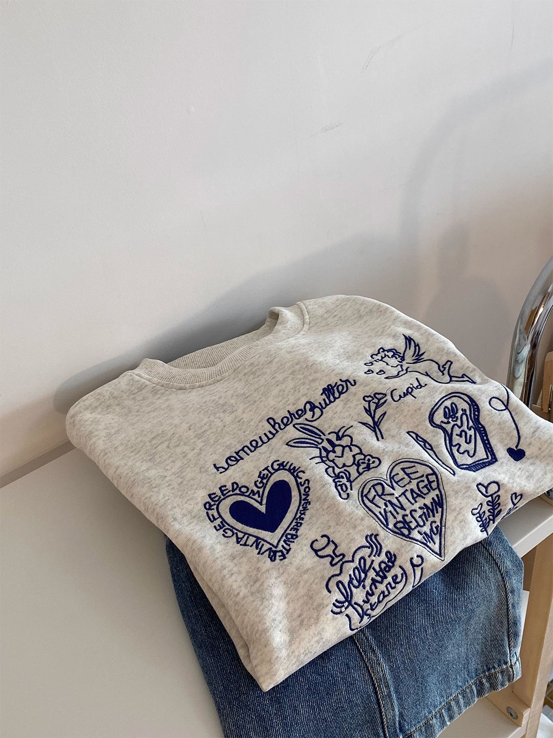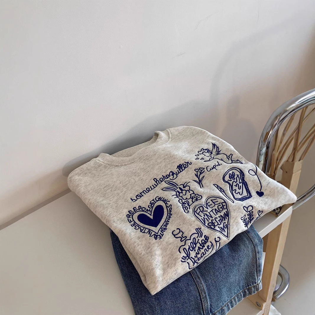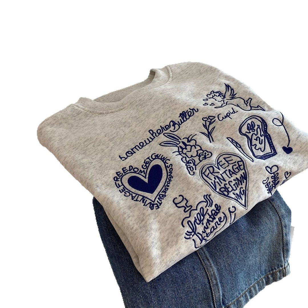 Brand Foreign Trade Cut Label Clearance Special Counter Withdrawal American High Street Fun Casual Pattern Print Crew Neck Sweatshirt