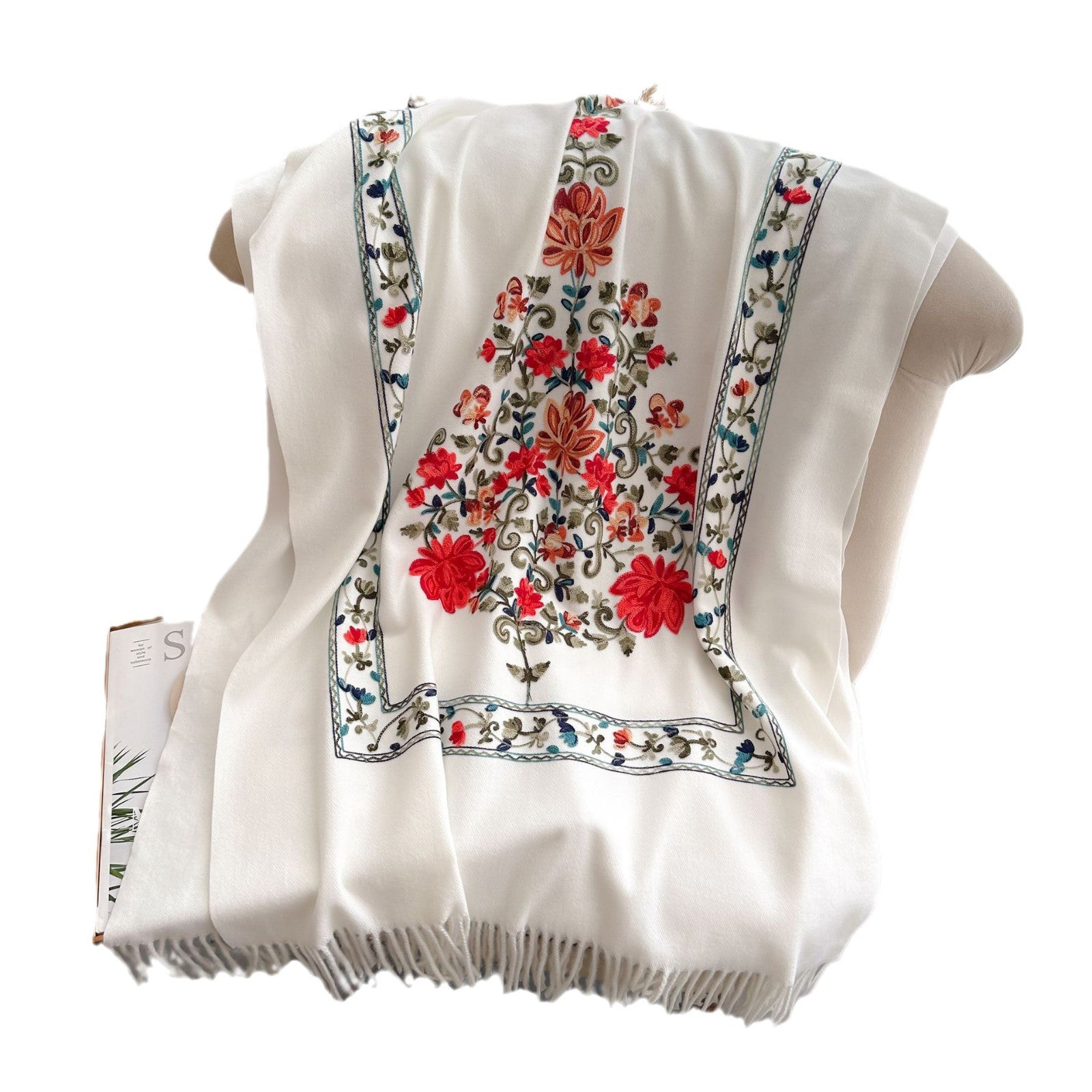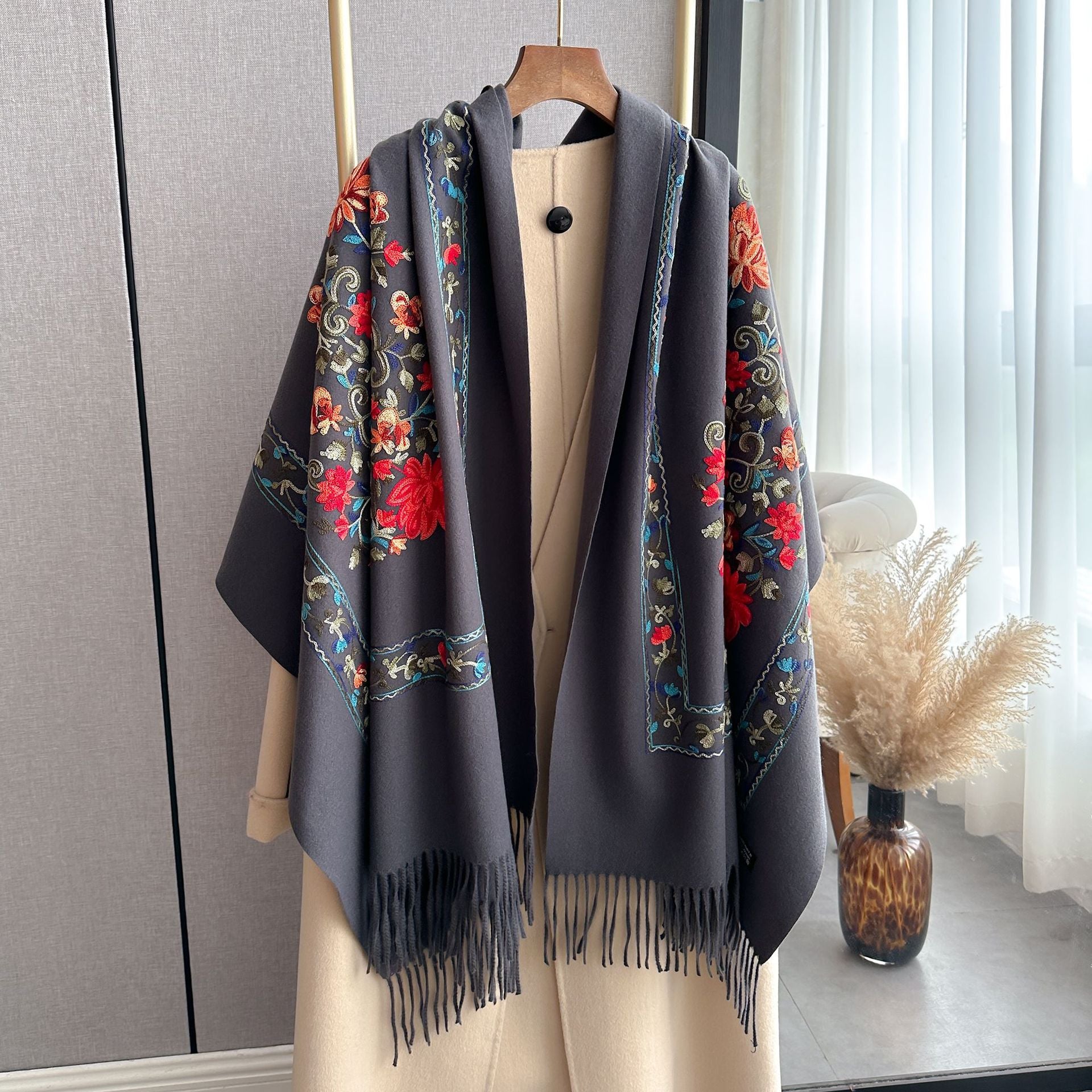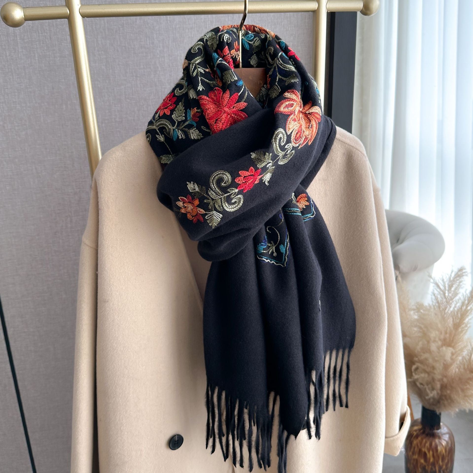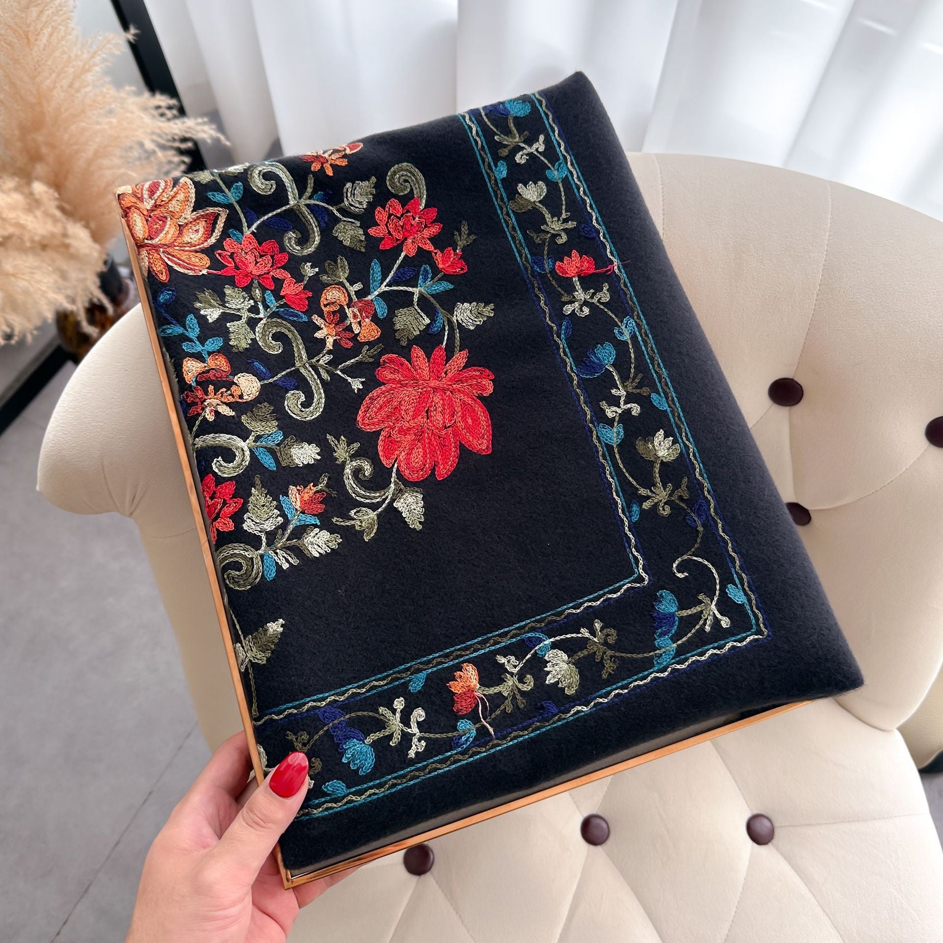 Bright Red Gold Thread Embroidered Scarf for Women Winter Versatile Wool Thickened Warm Cashmere Large Shawl for Women Dual-use Outerwear