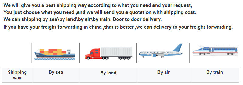 We can shipping by air, shipping by sea,shipping by train,shipping by load.