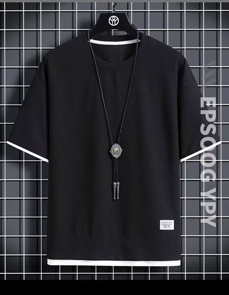 Chaolun Men's Short Sleeve Shirt t Summer Trendy Thin Breathable Shirt T Loose Waffle Short Sleeve Shirt