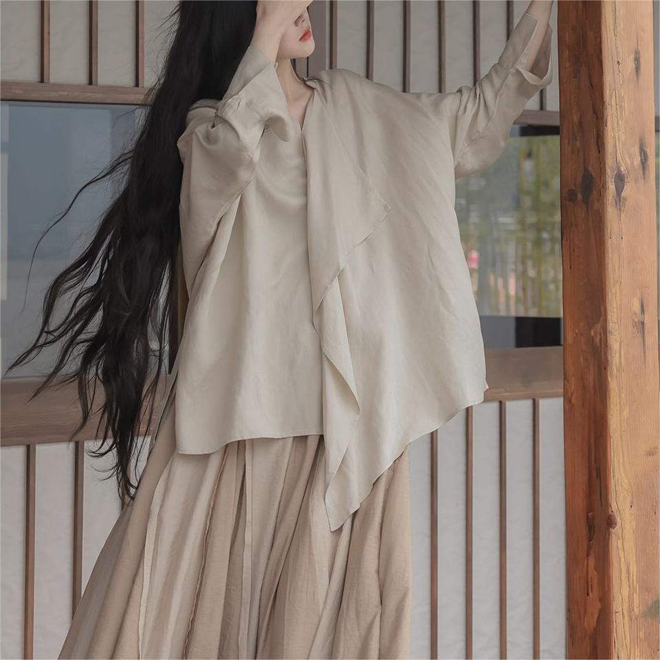 chic Minimalist Wave Long Irregular Patchwork Solid Color Midi Skirt Low Suit Quiet Style Salted Niche