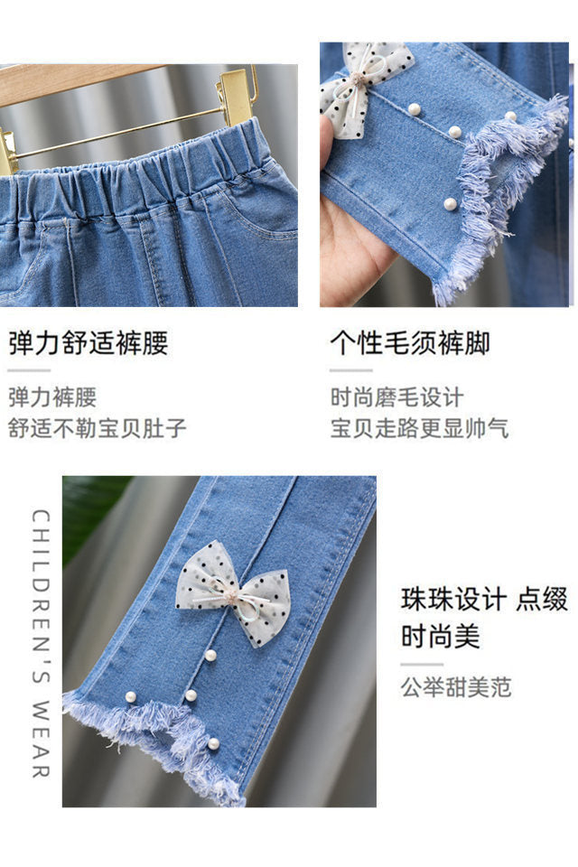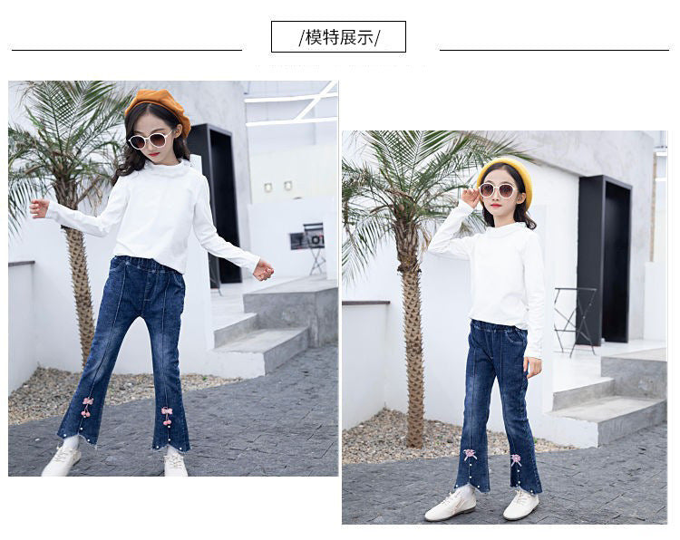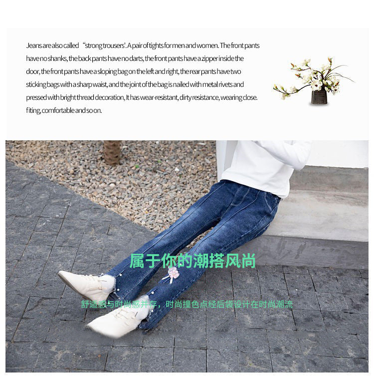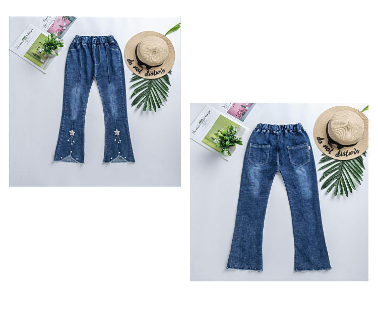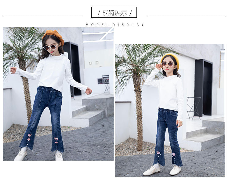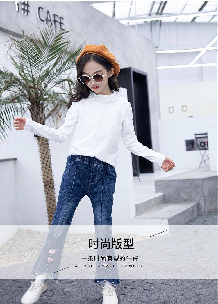 Children's Clothing Wholesale Girls' Jeans Spring and Autumn New Style Medium and Large Children's Slim Pants Baby Casual Girls' Flared Long Pants