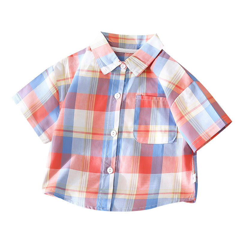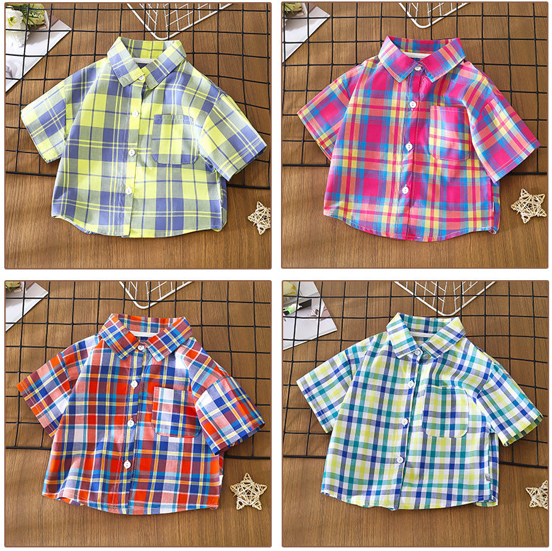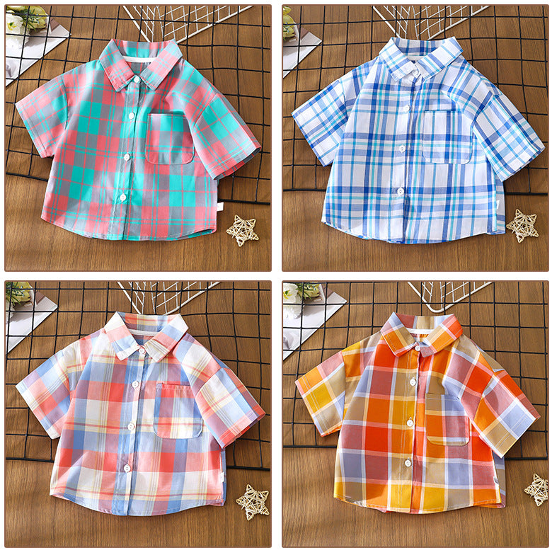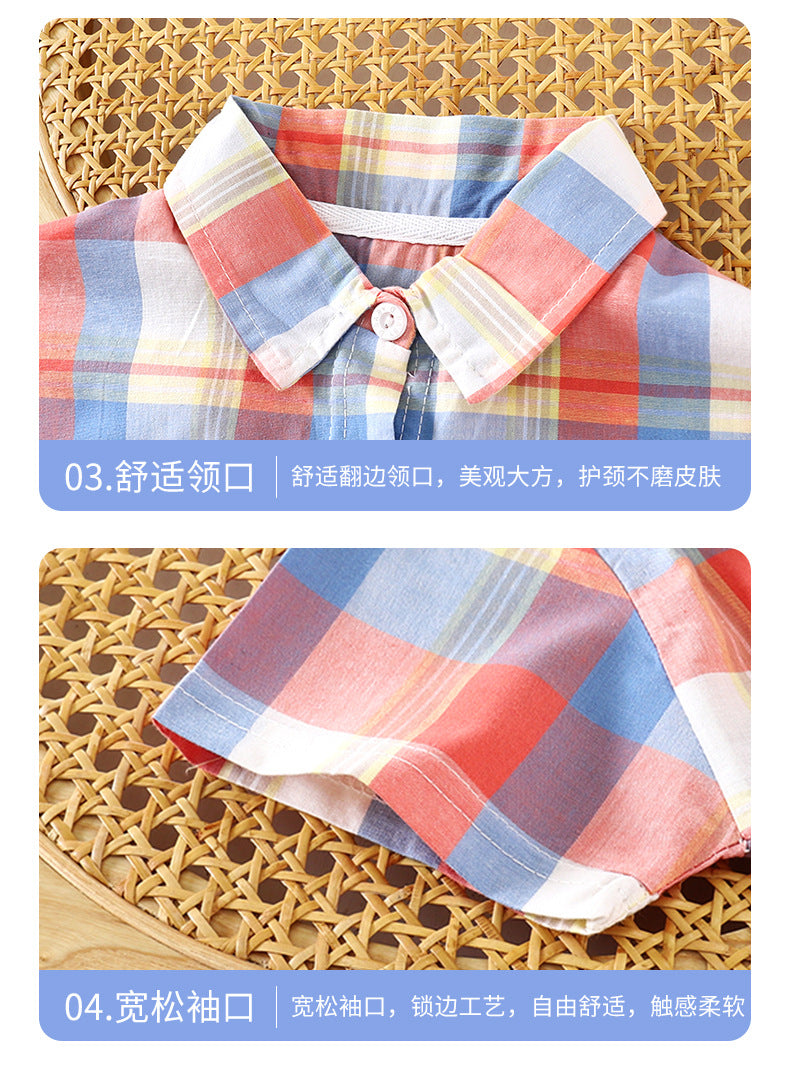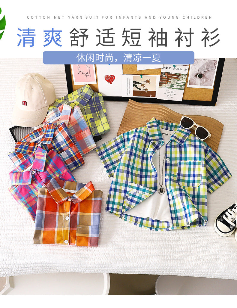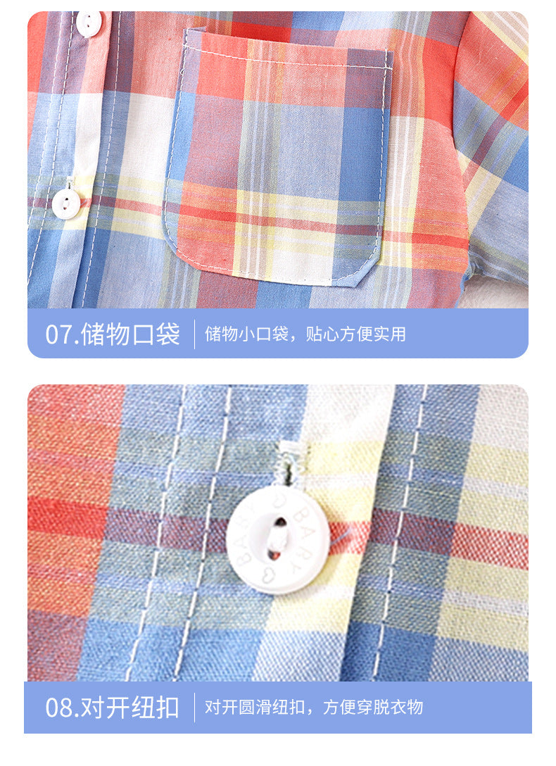 Children's Shirt for Boys2025New Stylish Baby Cotton Plaid Shirt for Spring and Autumn, Fashionable Turn-Down Collar Cardigan for Toddlers