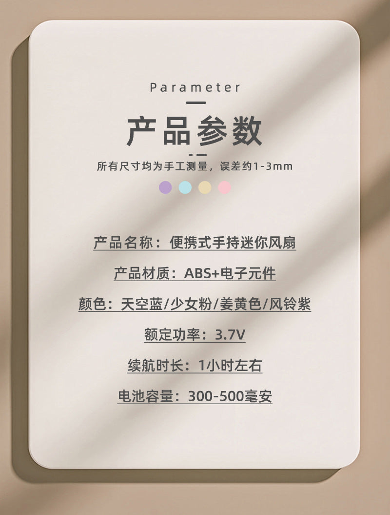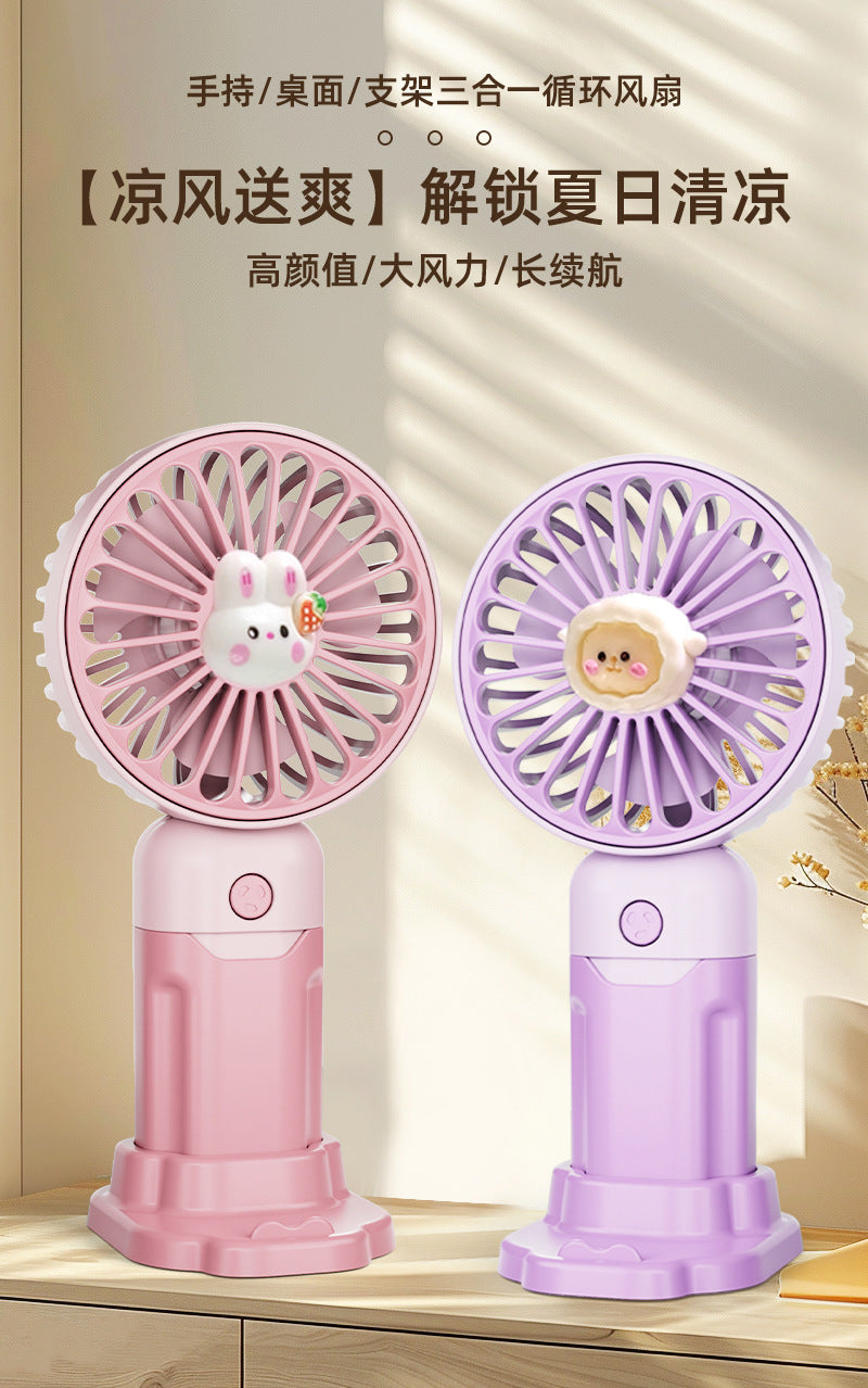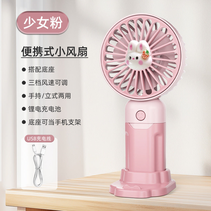 Children's Small Handheld Fan Student Gift Portable Cartoon Mini Portable Rechargeable Small Desktop Fan