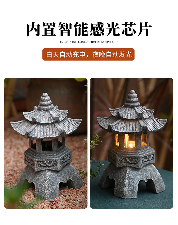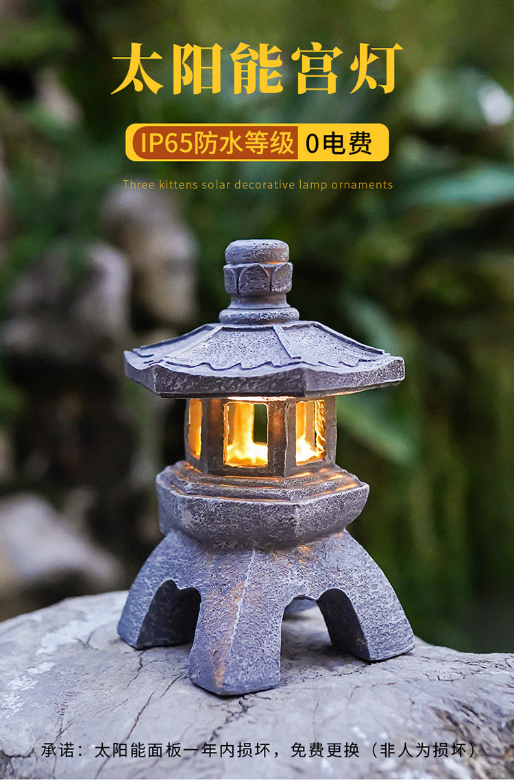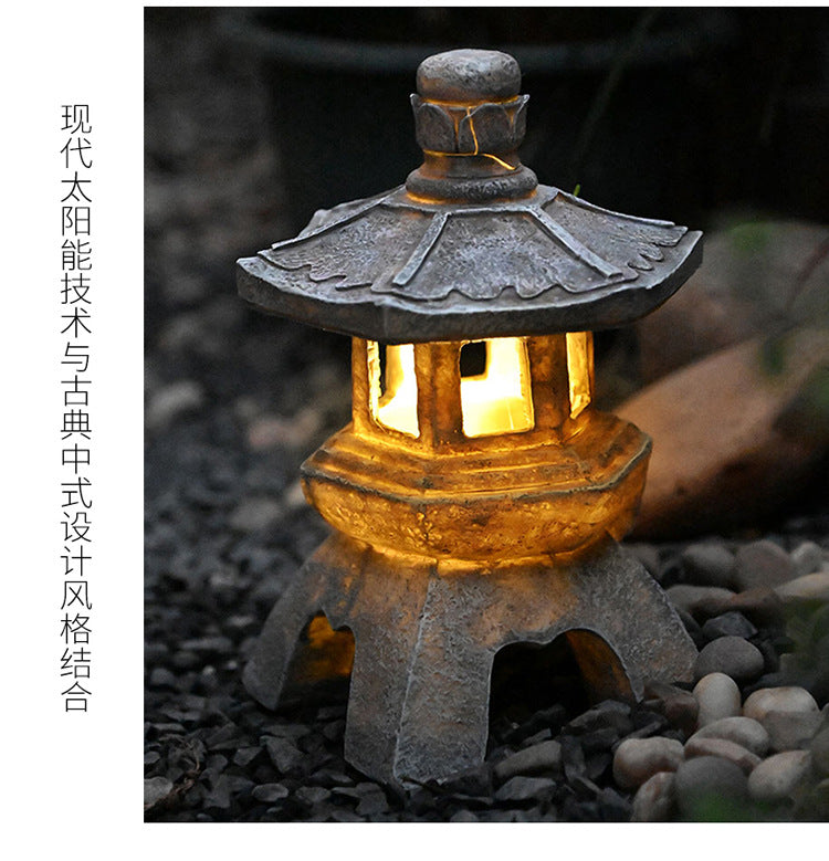 Chinese Antique Style Palace Lantern Solar Outdoor Courtyard Decoration Ornament Garden Villa Balcony Floor Landscape Lamp