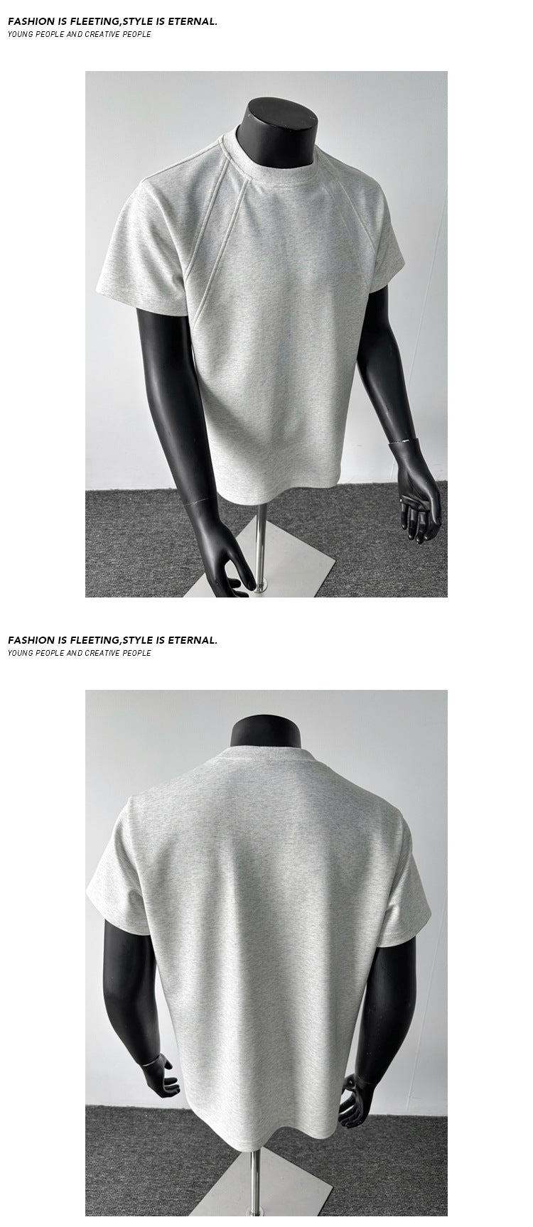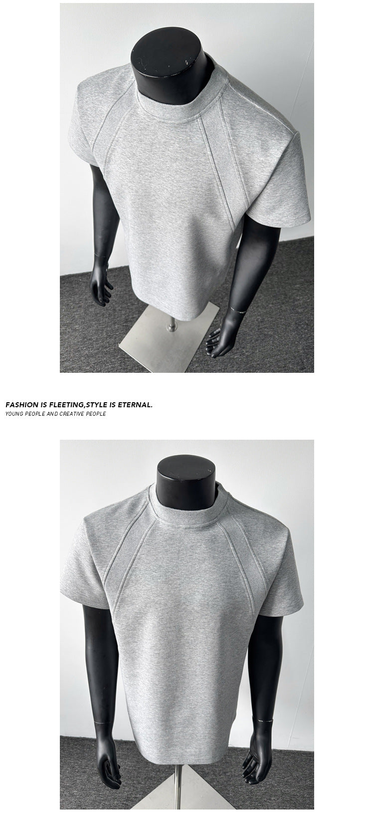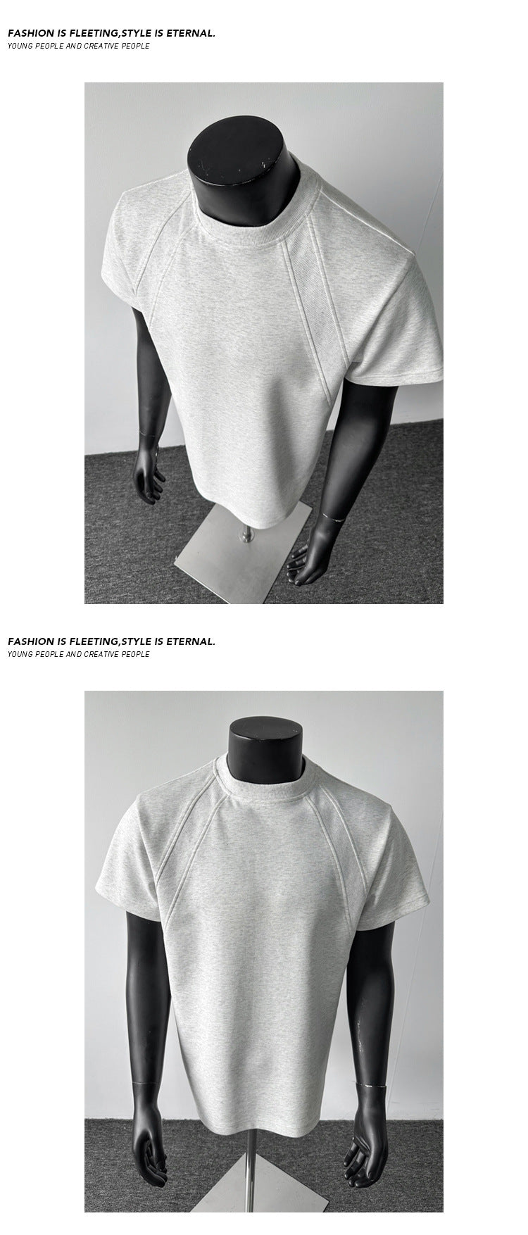 cleanfit American Style Heavyweight Deconstructed Short Sleeve Men's Summer boxy Version T T-shirt Air Layer Patchwork Gray Top