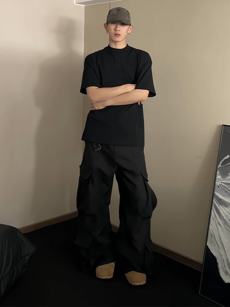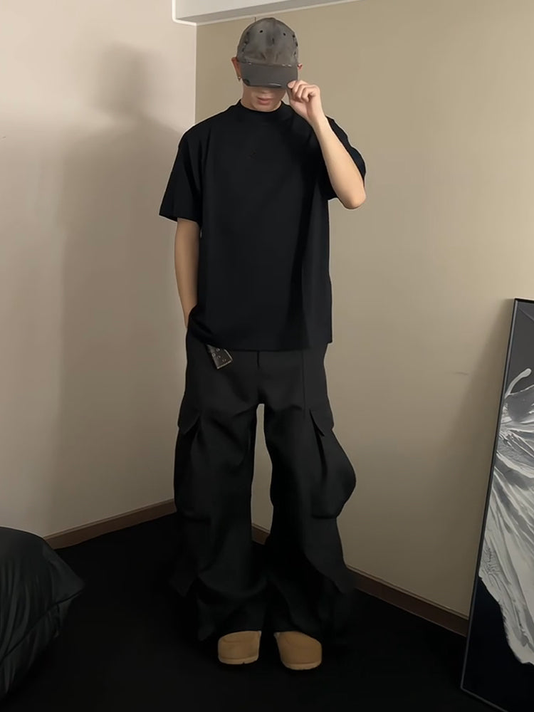 cleanfit Black Cotton Short Sleeve t Men's Summer American Style High-End Small Collar Regular Shoulder Inner Wear Half Sleeve Shirt