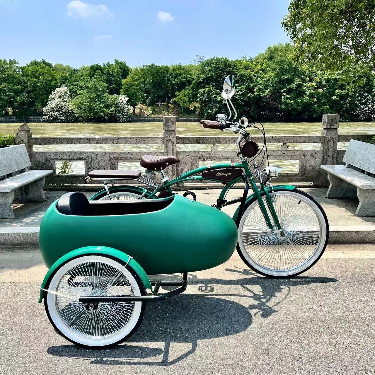 Comfortable Three-Wheel Bicycle High-End Park Display Side Bucket Drag Bucket Bicycle Dense Spokes High-End Side Three-Wheel