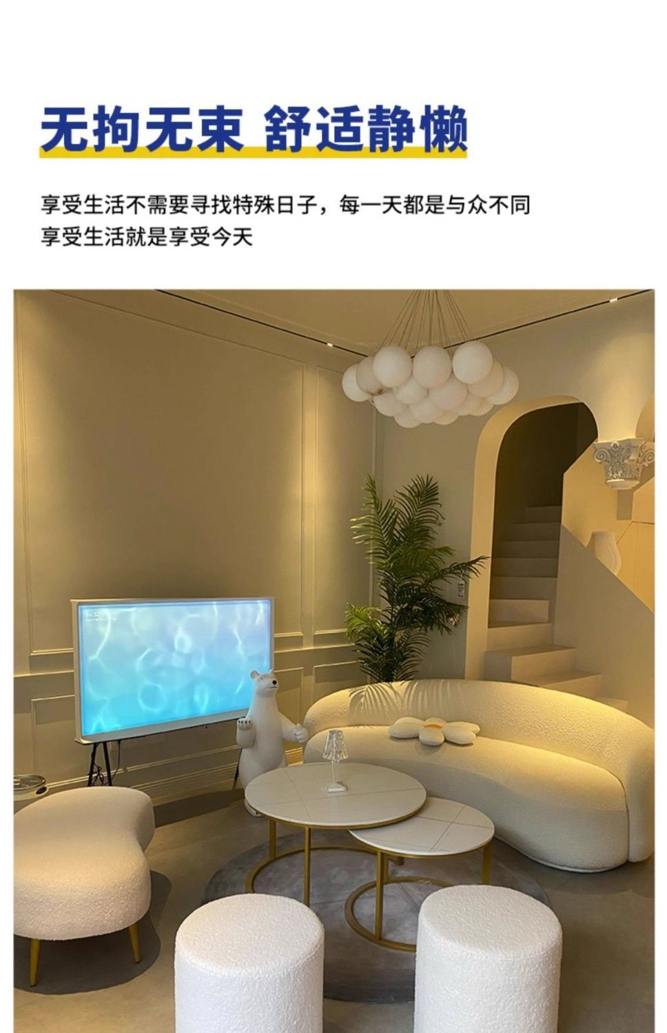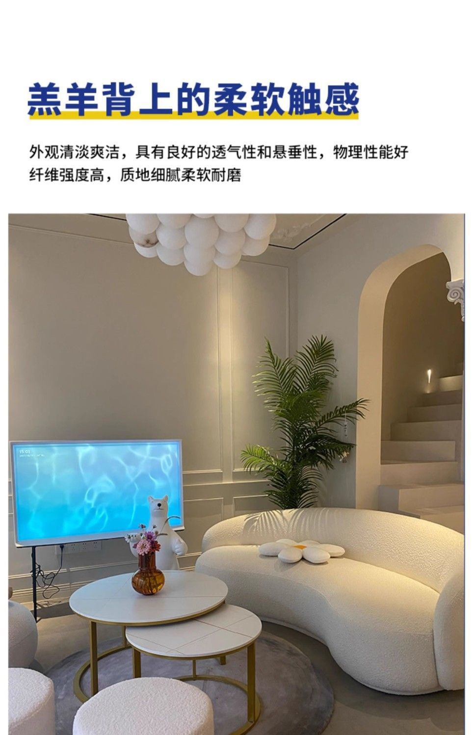 Cream Style Sofa for Small Living Rooms, Light Luxury Beauty Salon Reception, Clothing Store Rest Area, Lamb Wool Fabric Home Furniture