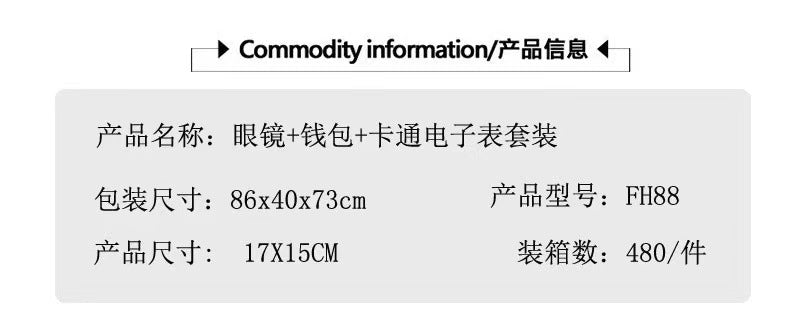 Cross-Border Children's Cartoon Electronic Watch Glasses Wallet Watch Set Kindergarten Kids Gift Prize Toy Watch
