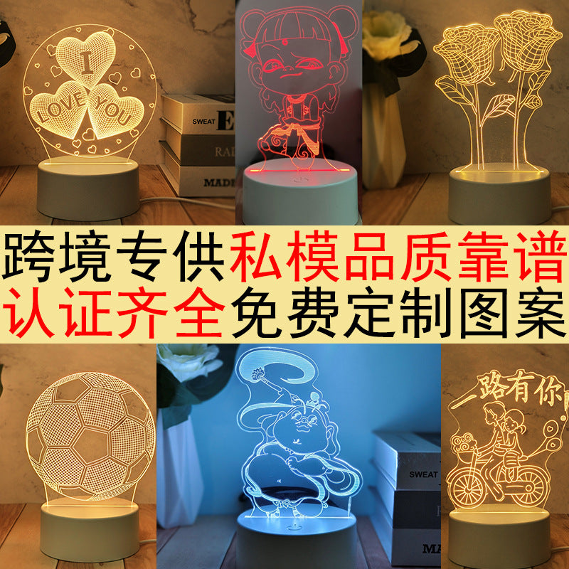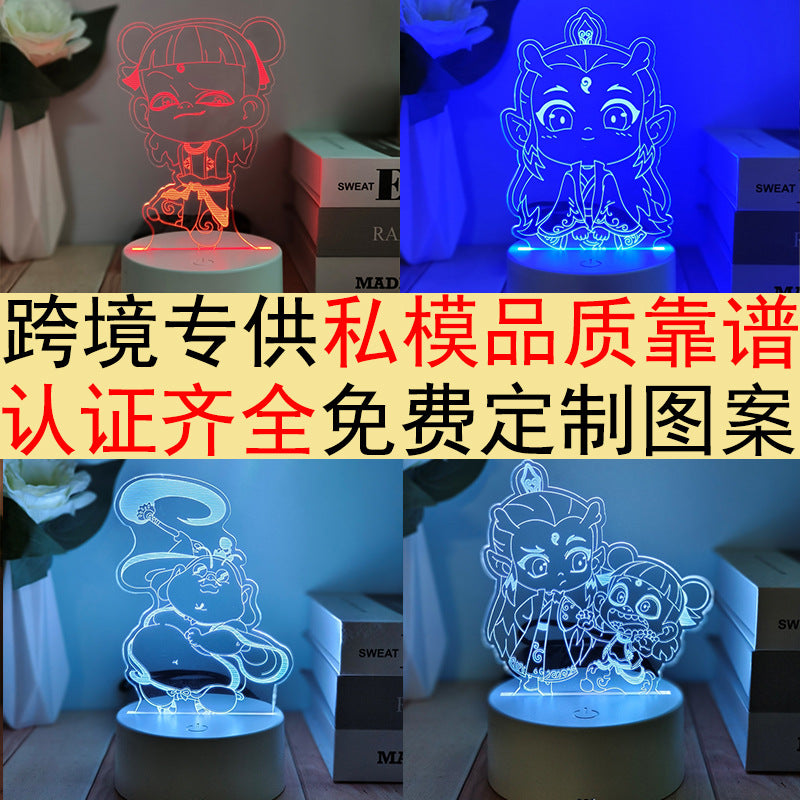 Cross-Border Creative3d Night Light Acrylic Board Internet Celebrity Hot-Selling Bedside Lamp Remote Control3d Nezha Night Light Ambient Light