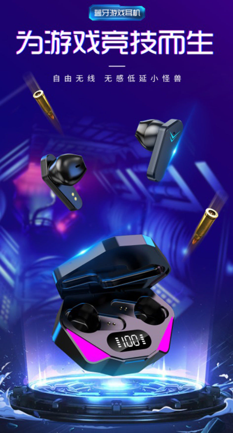 Cross-border Exclusive Hot-Selling Bluetooth Earphones X15Wireless In-Ear Headphones5.3E-Sports Low Latency Digital Display Gaming Headset