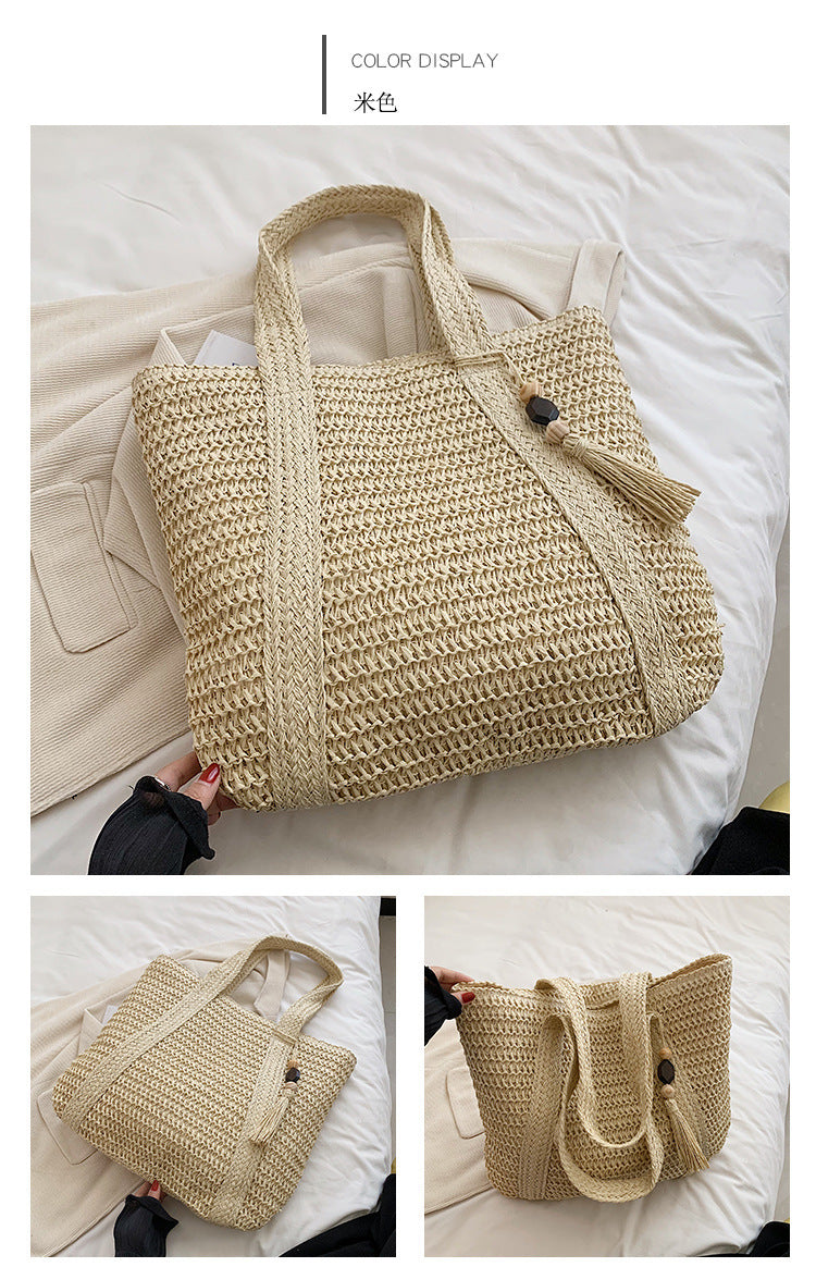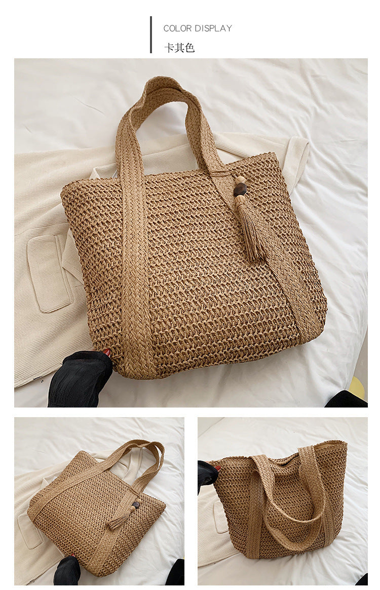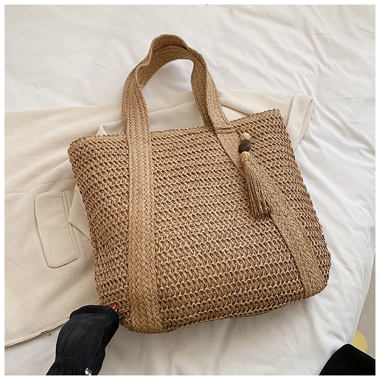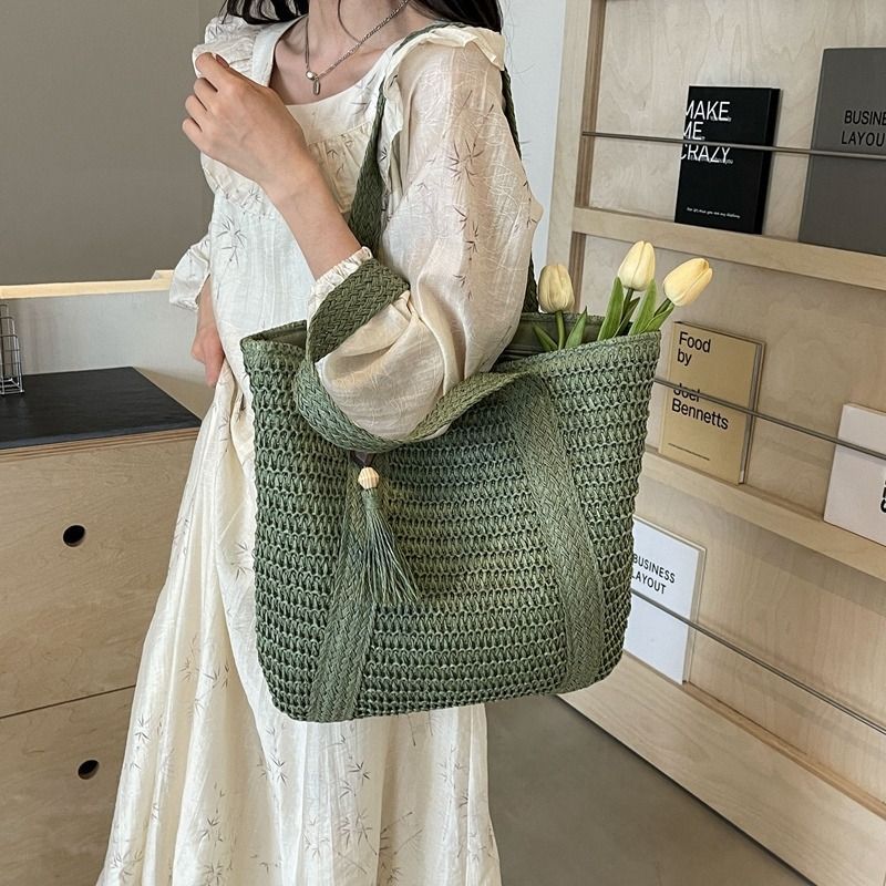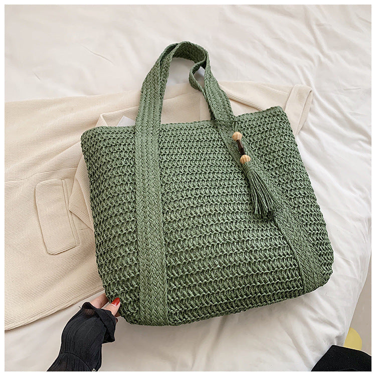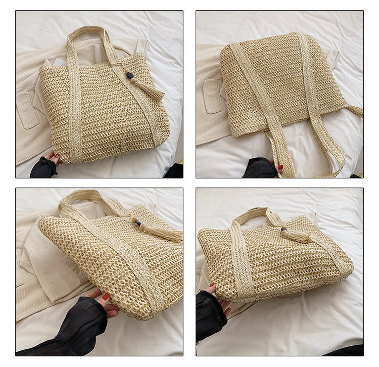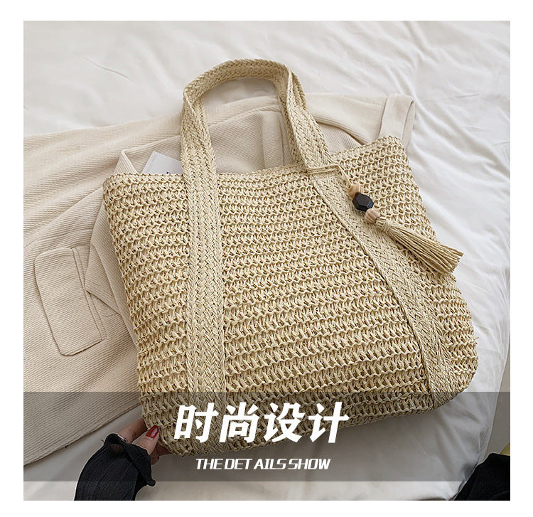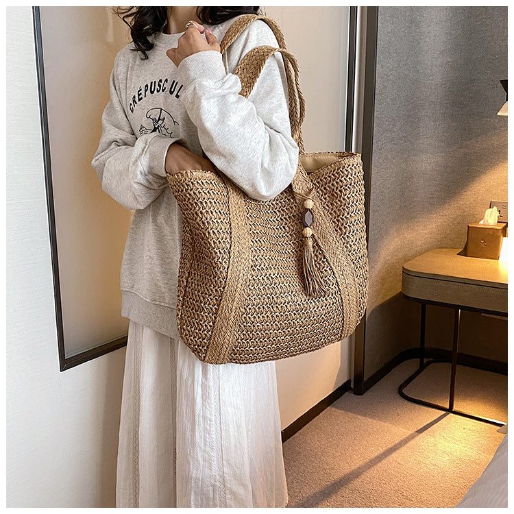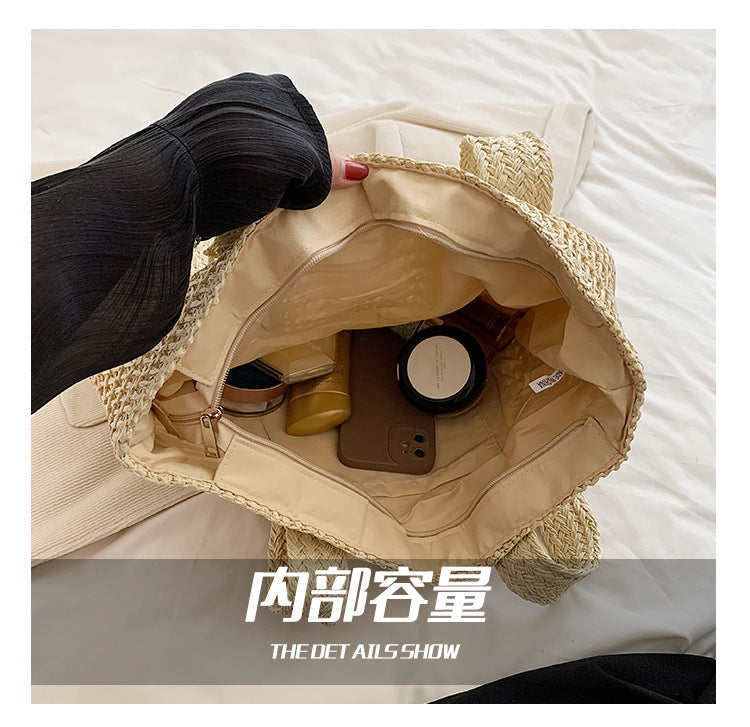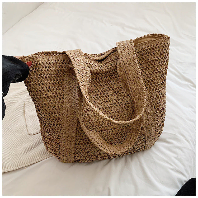 Cross-Border Hot-Selling Women's Bag Simple Large Capacity Lightweight Woven Bucket Beach Bag Trendy Straw New Handheld Shoulder Bag
