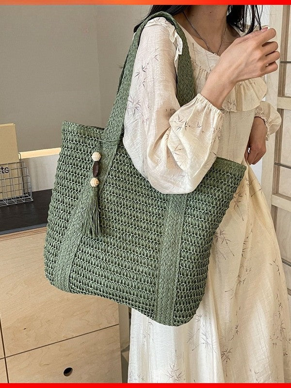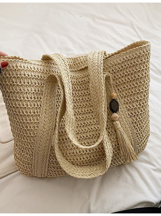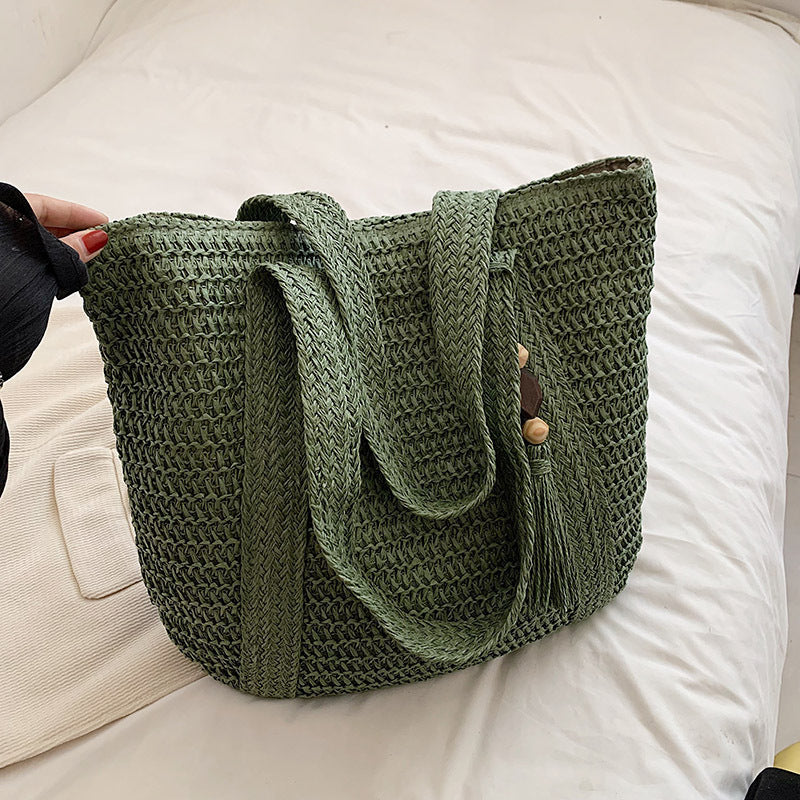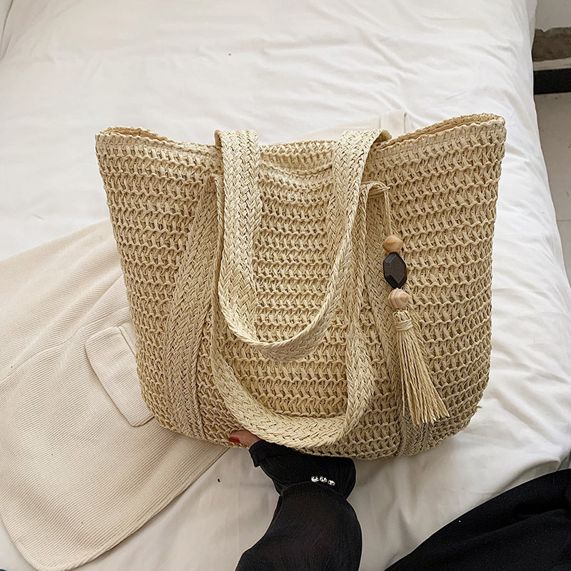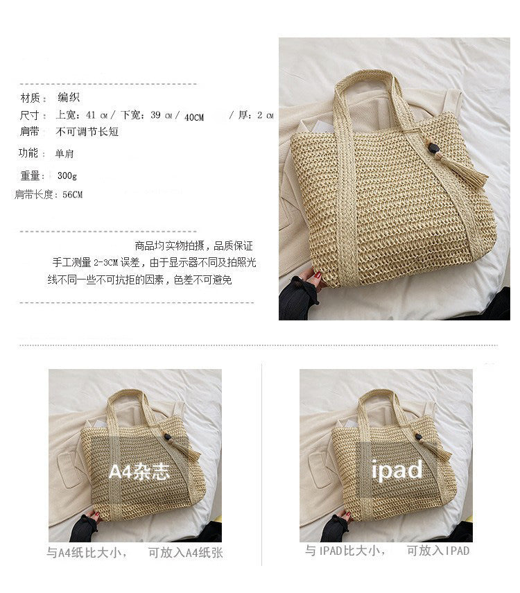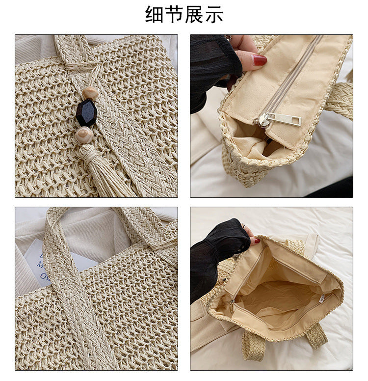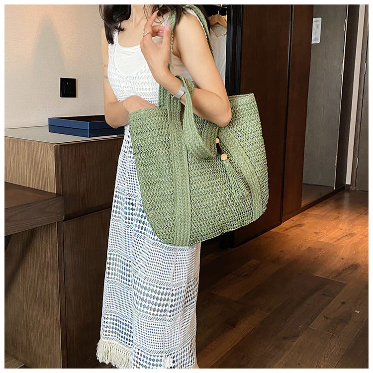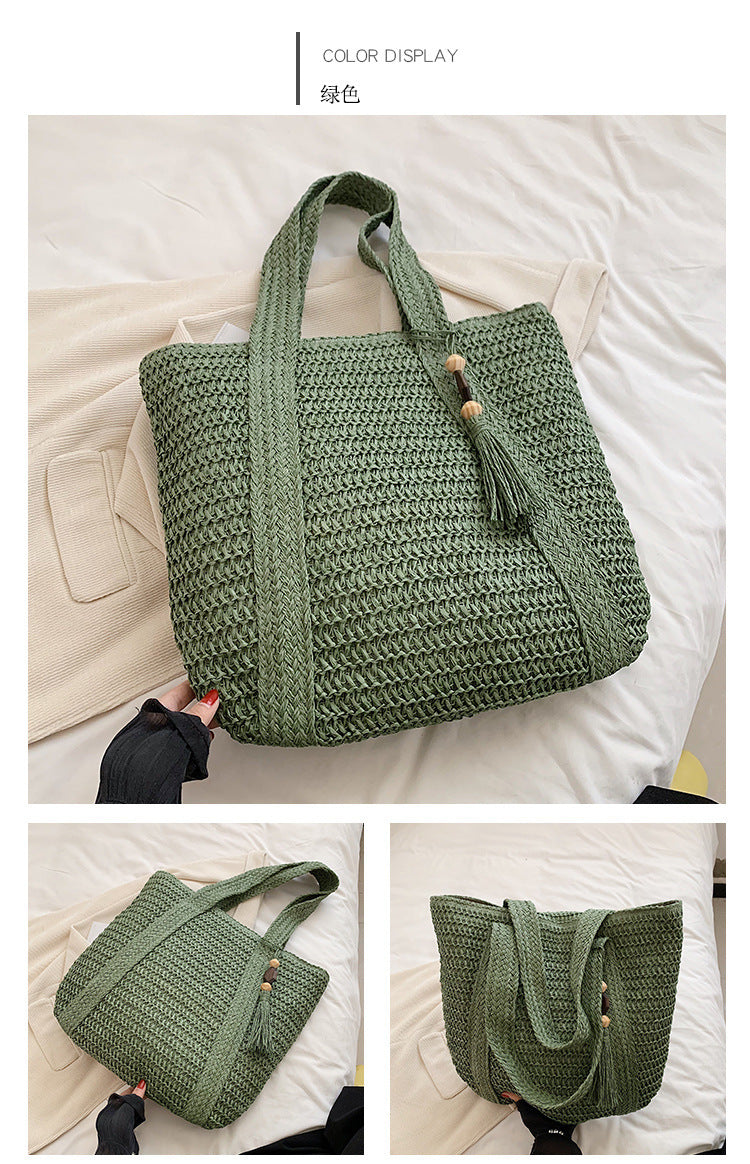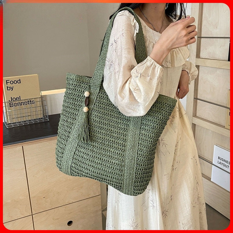 Cross-Border Hot-Selling Women's Bag Simple Large Capacity Lightweight Woven Bucket Beach Bag Trendy Straw New Handheld Shoulder Bag