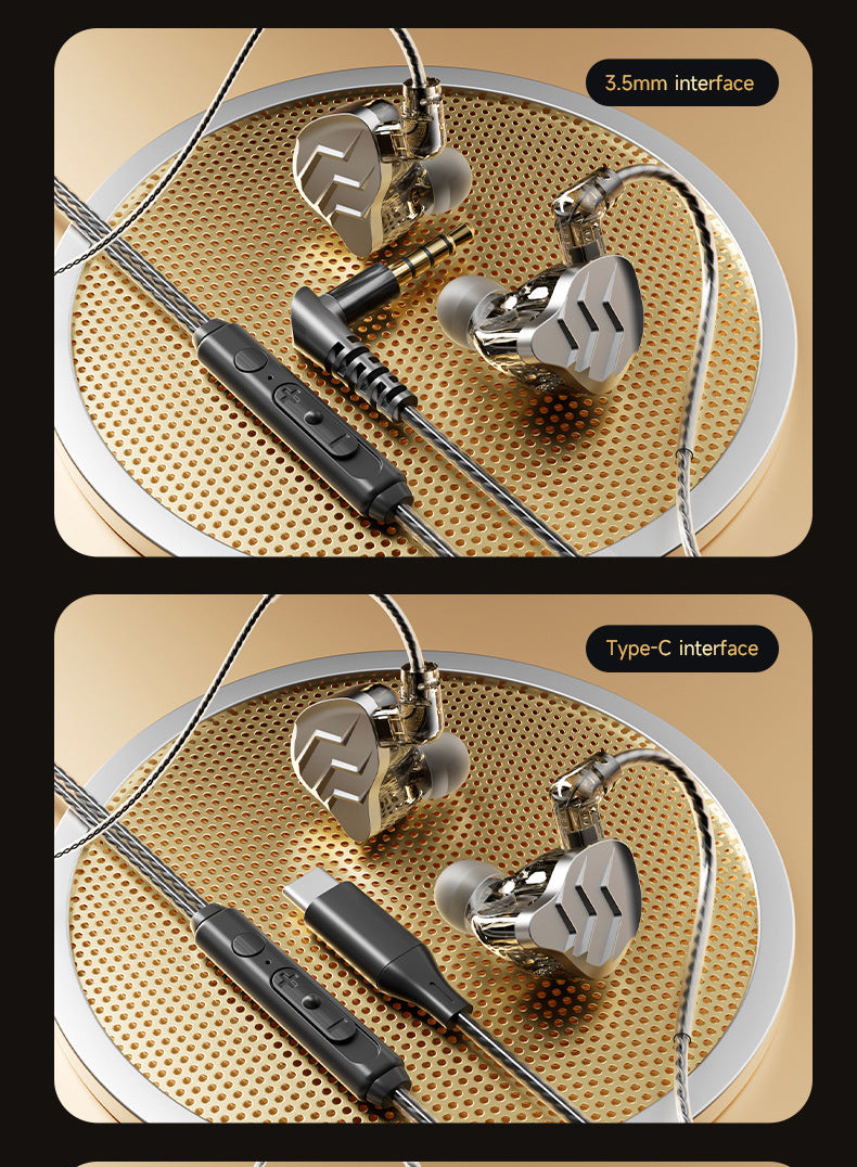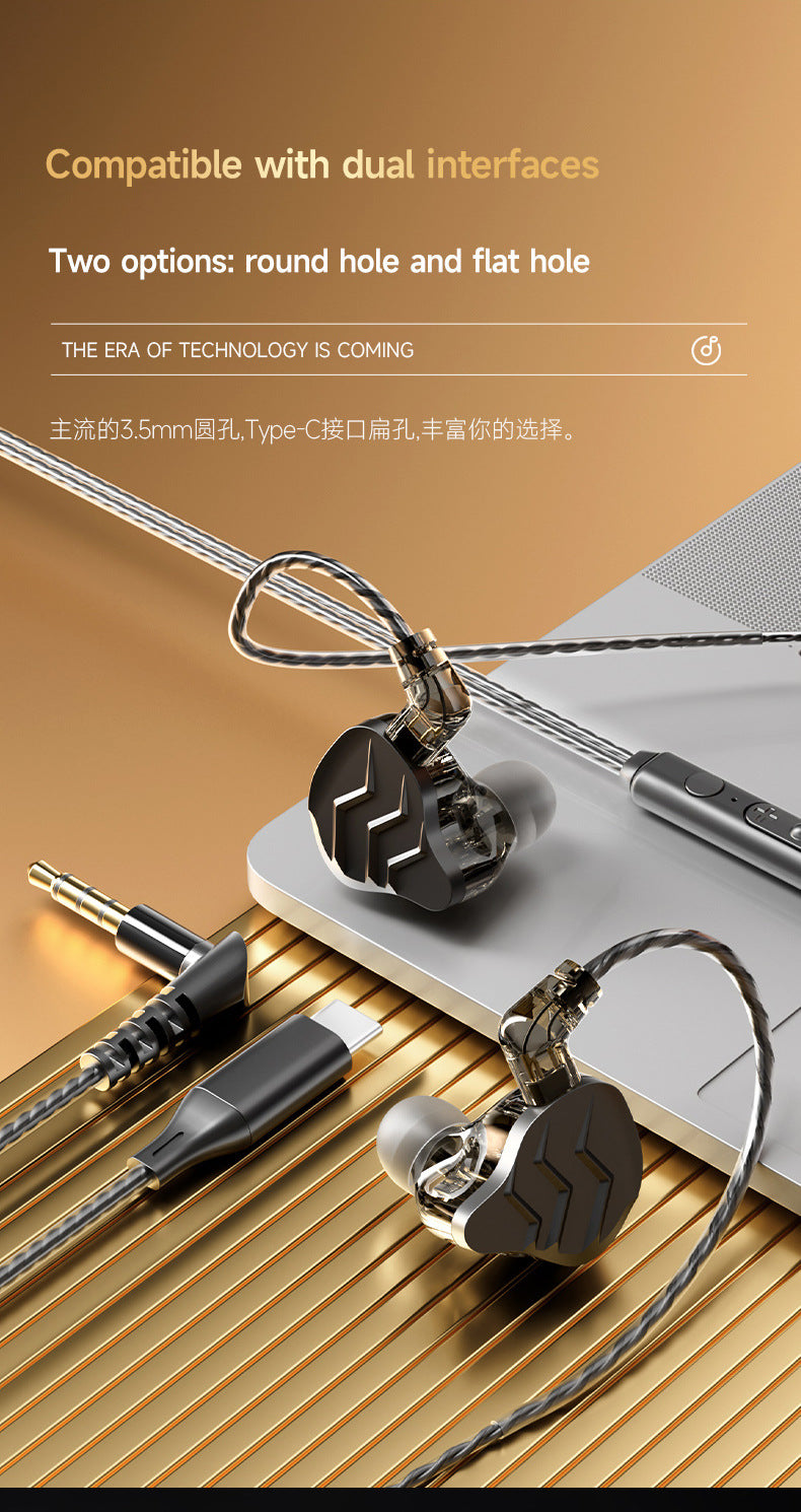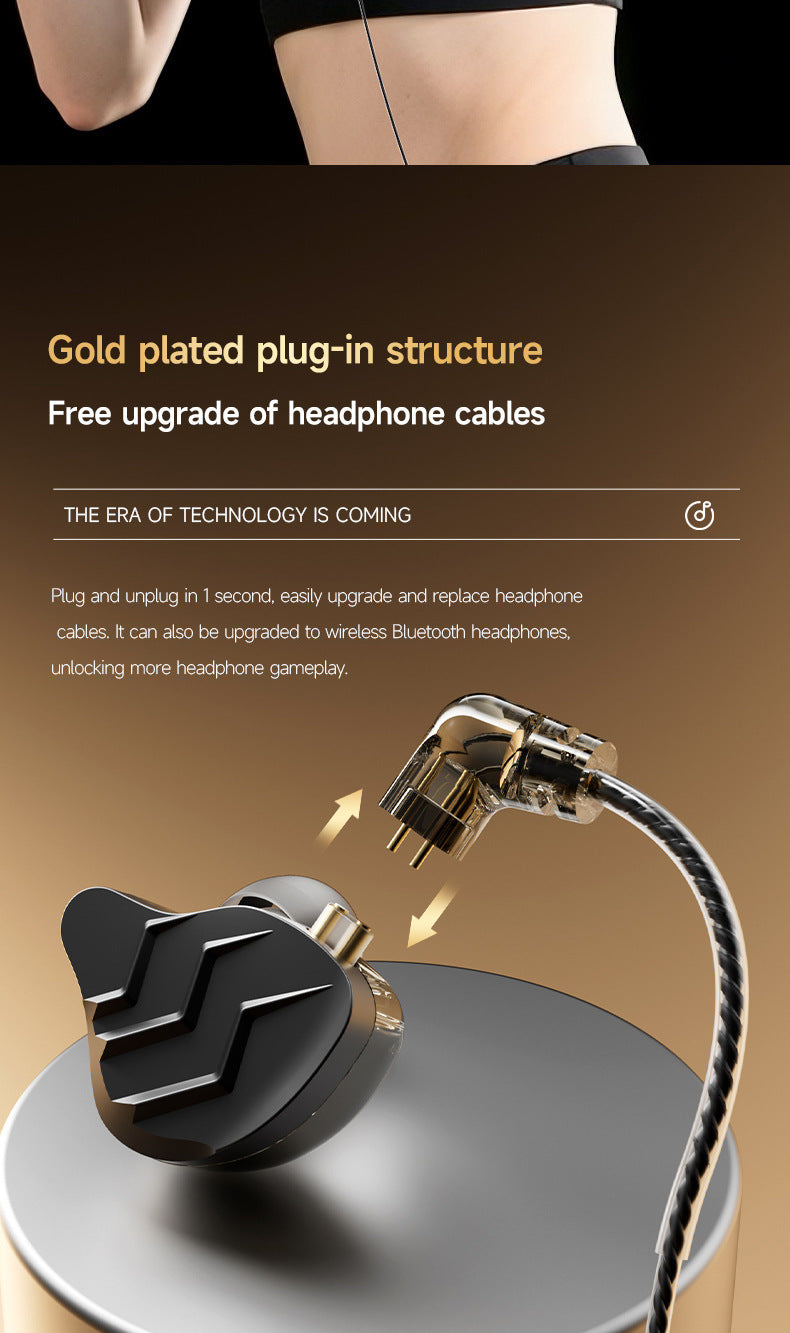 Cross-border new in-ear sports headphones with interchangeable cables, plug-in gaming style HIFI Dynamic Wired Earphones for Mobile Phones