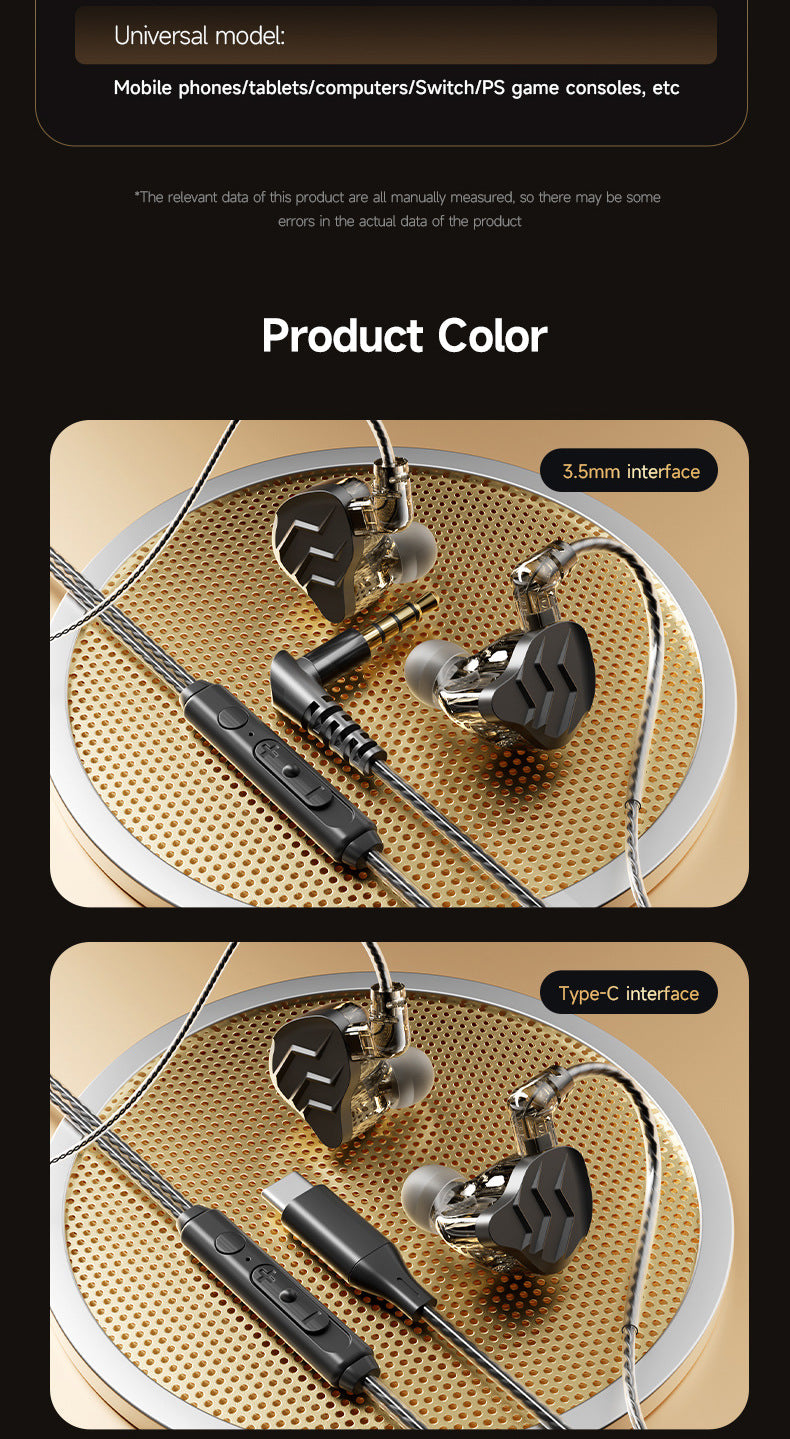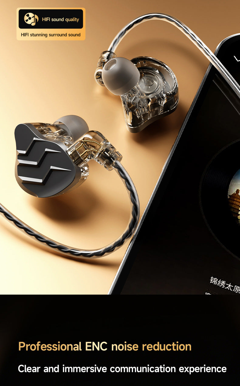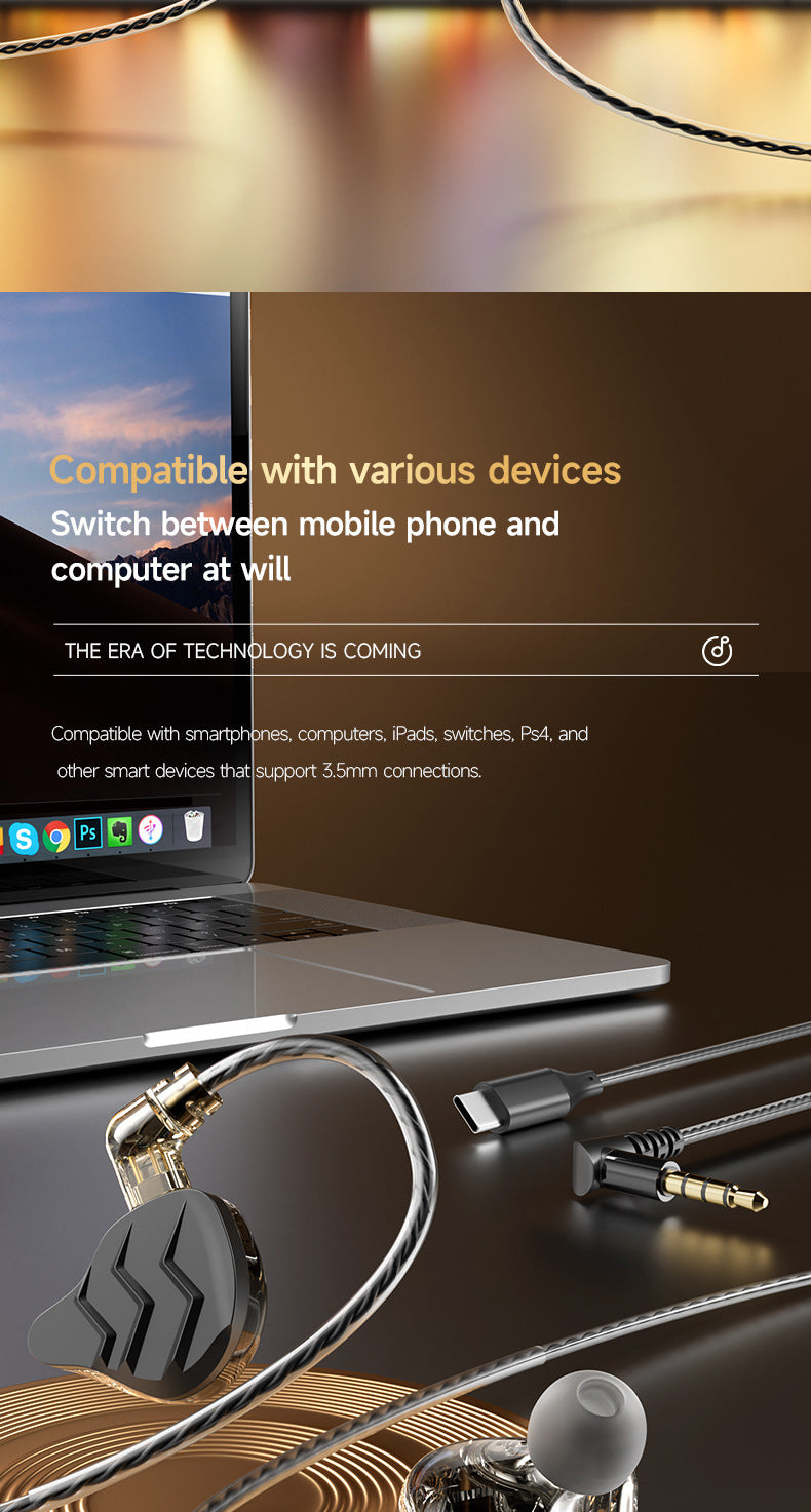 Cross-border new in-ear sports headphones with interchangeable cables, plug-in gaming style HIFI Dynamic Wired Earphones for Mobile Phones