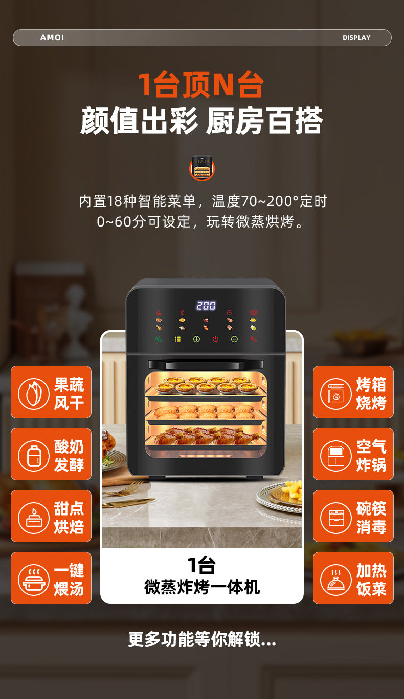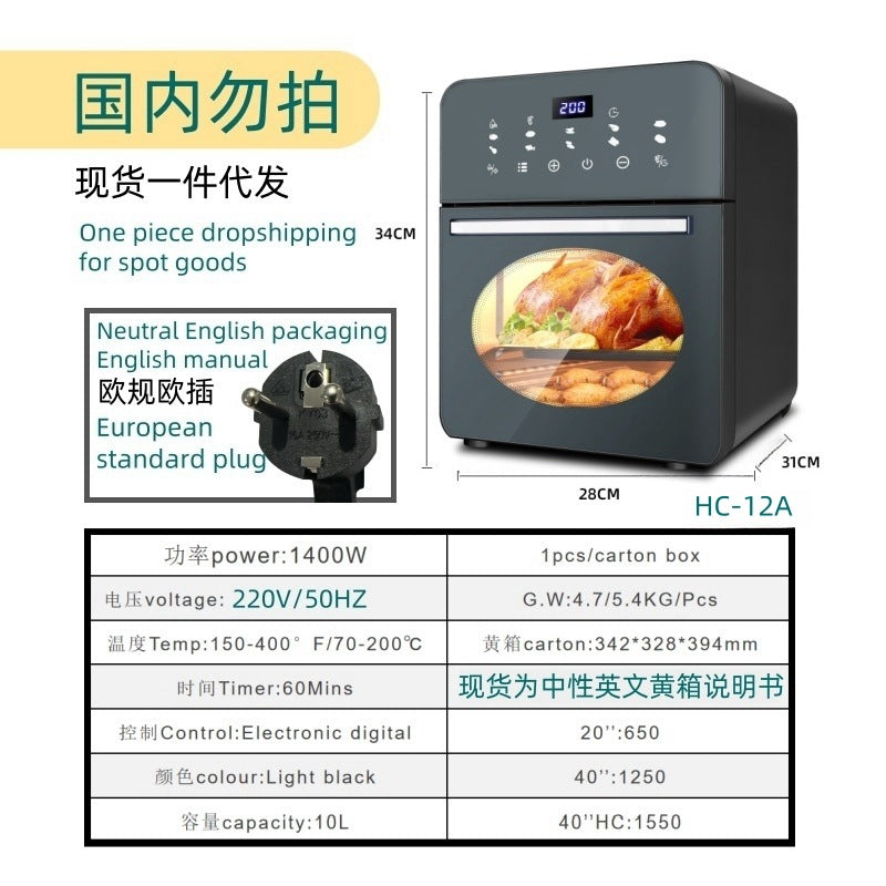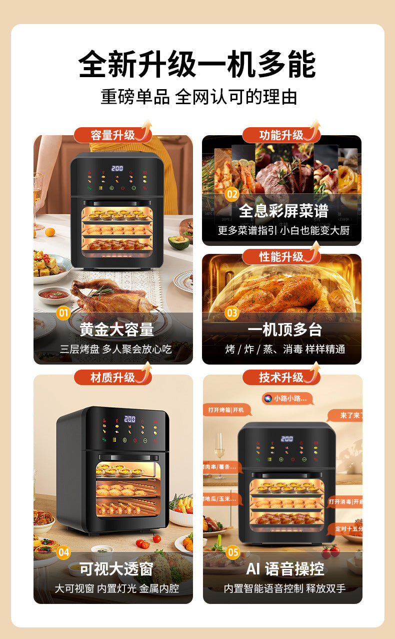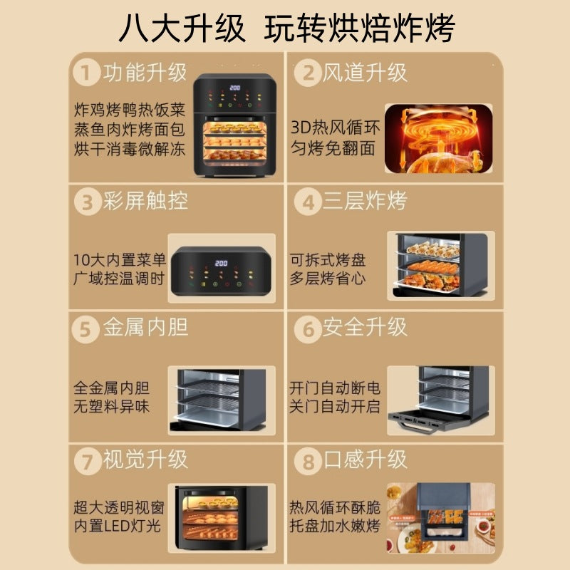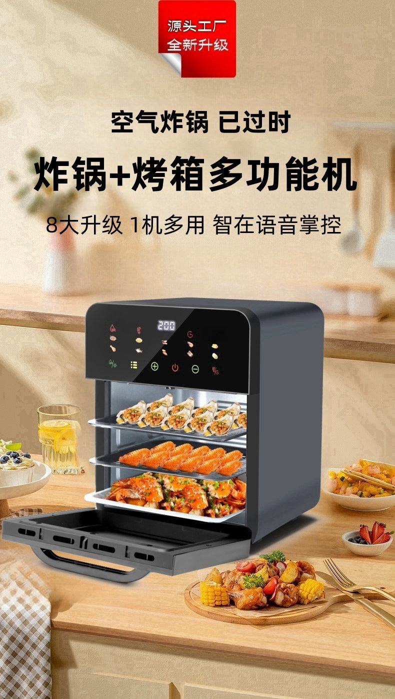Cross-Border New Smart Visual Air Fryer Household Large Capacity Multi-Functional Air Oven Baking Professional Fryer Oven