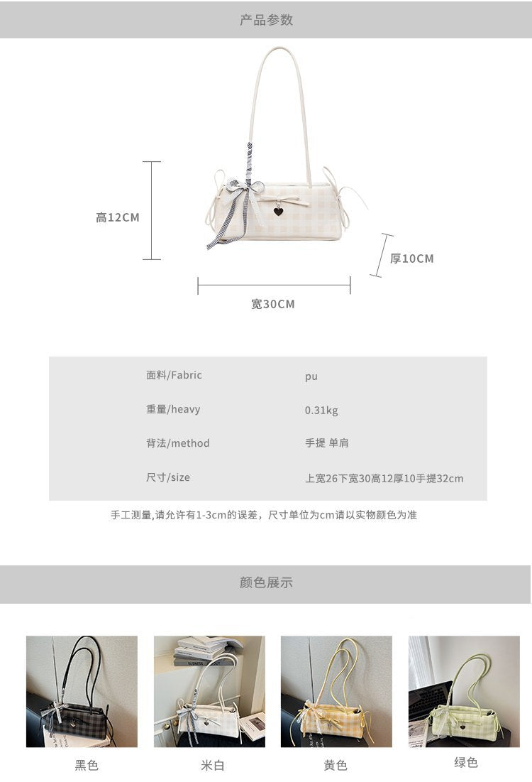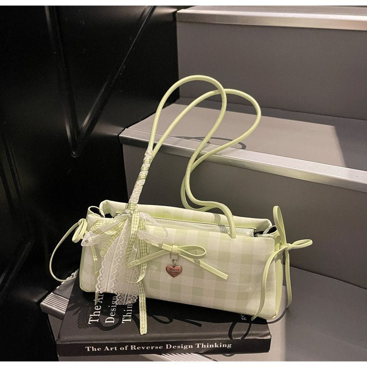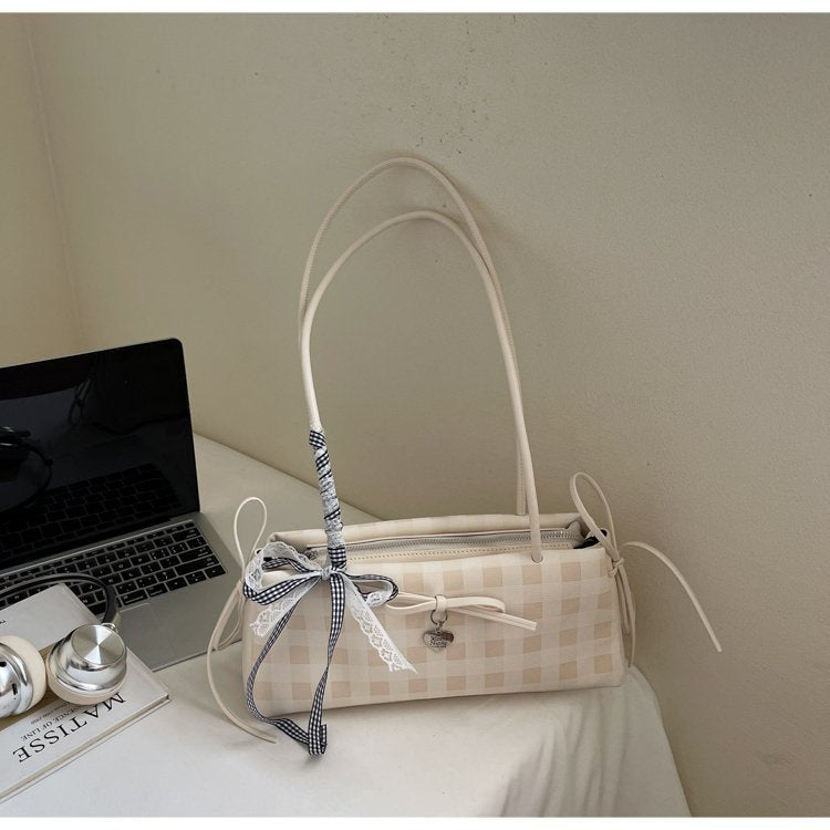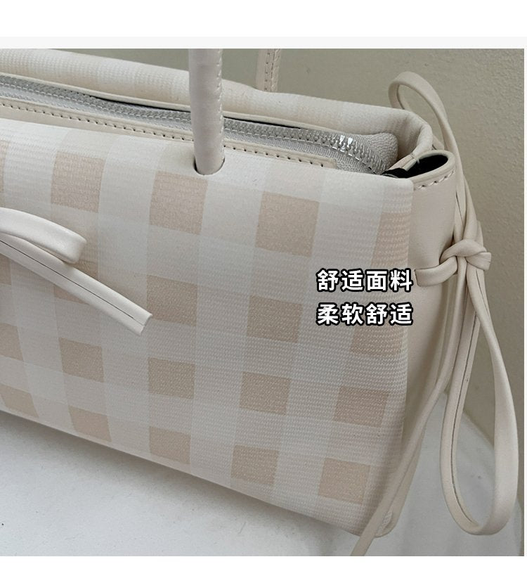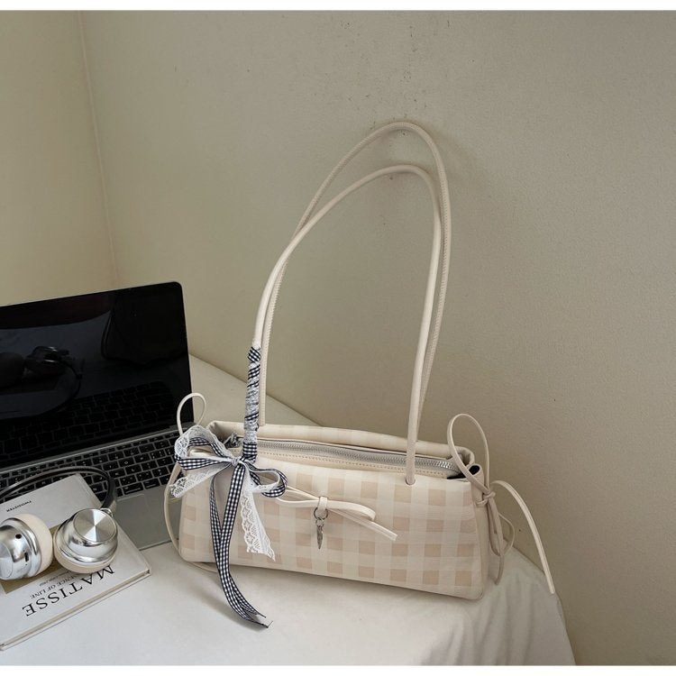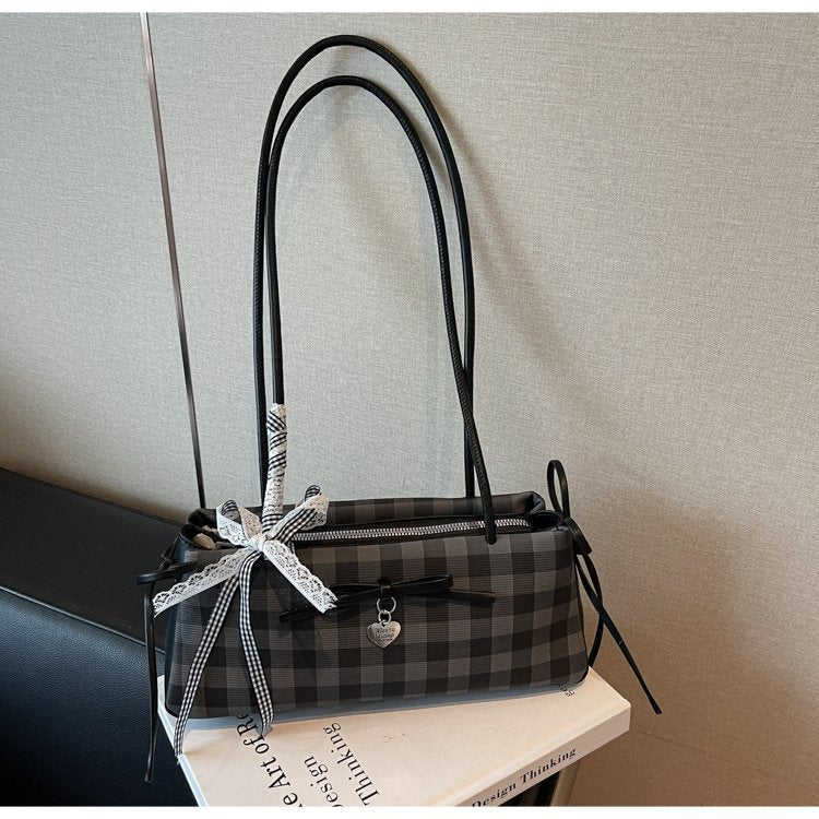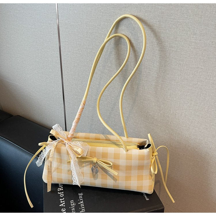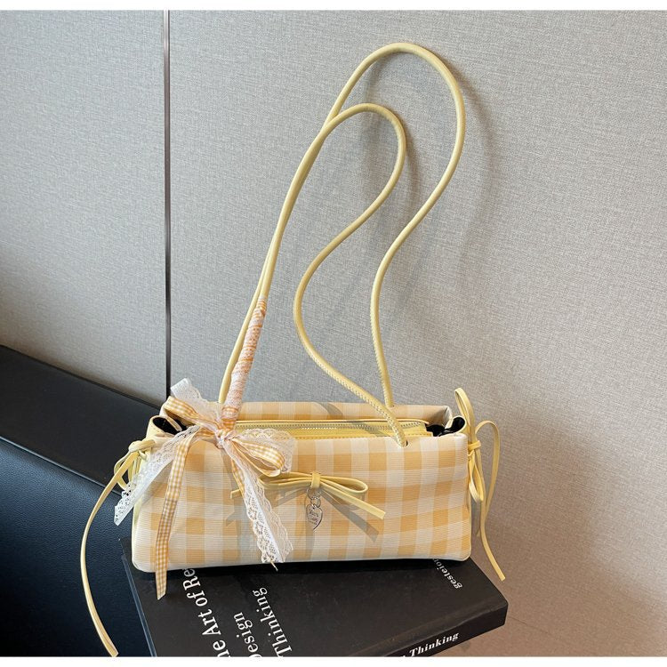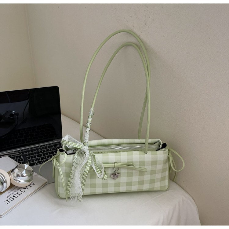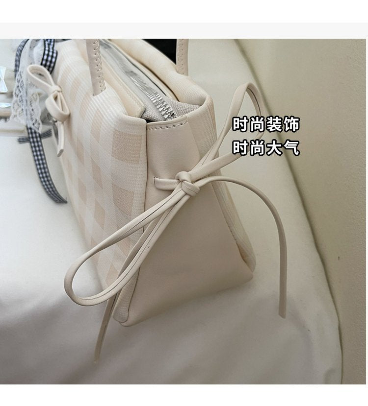 Dopamine Plaid Handbag Small Tote Bag for Women Summer2025New Ballet Style Bow Baguette Bag Underarm Bag Trendy