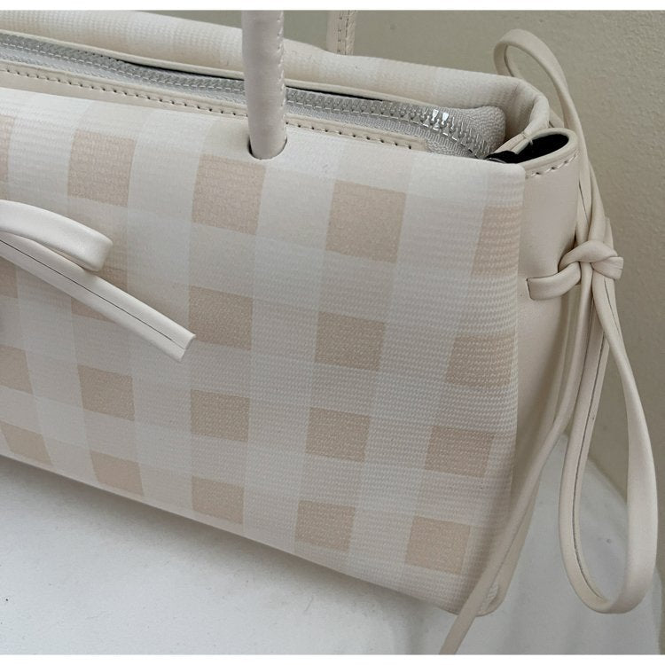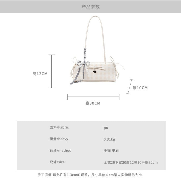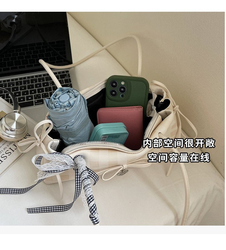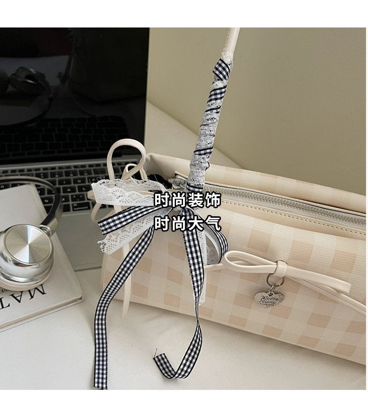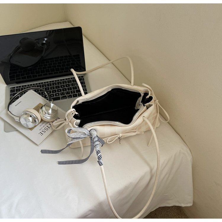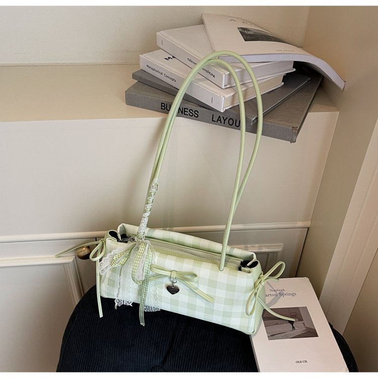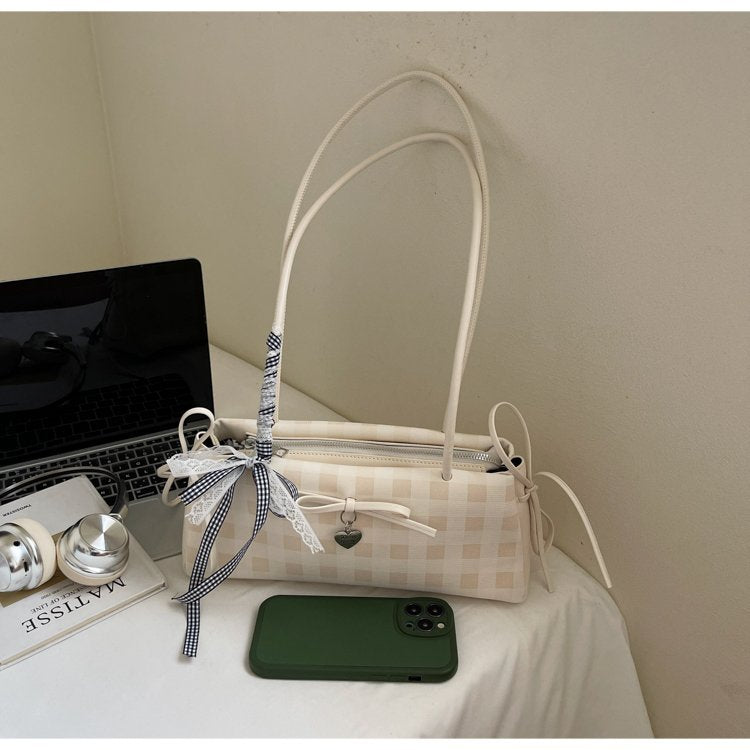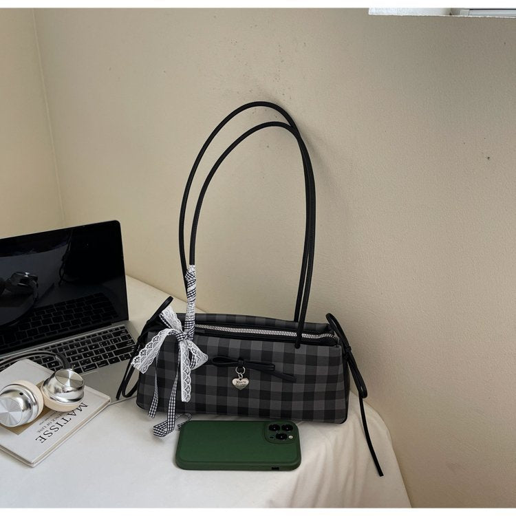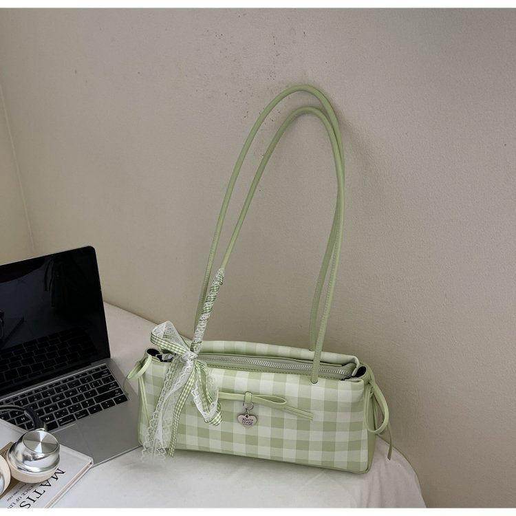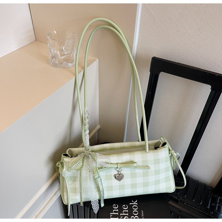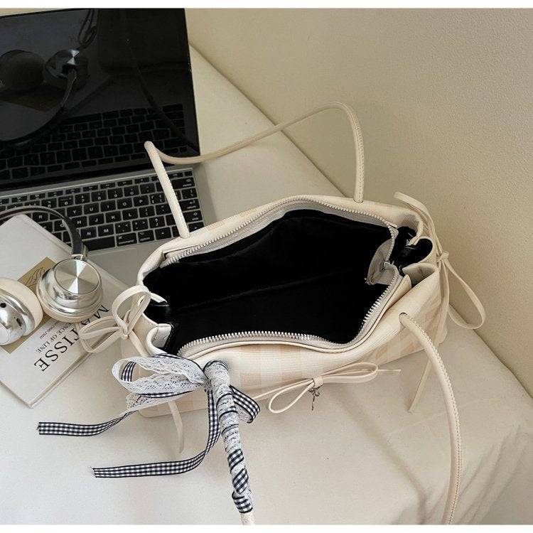 Dopamine Plaid Handbag Small Tote Bag for Women Summer2025New Ballet Style Bow Baguette Bag Underarm Bag Trendy