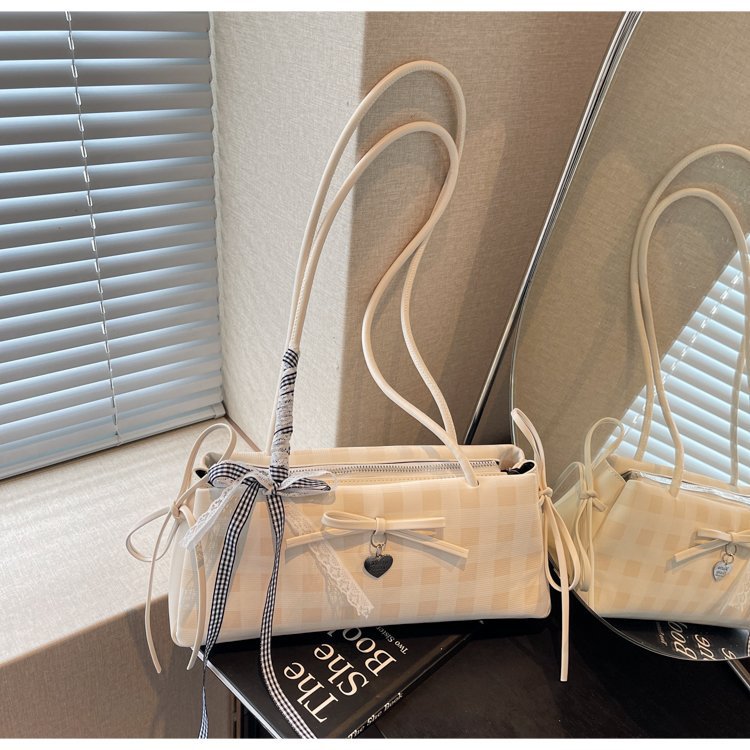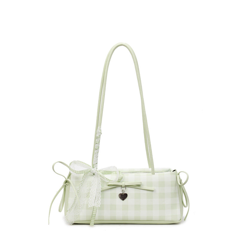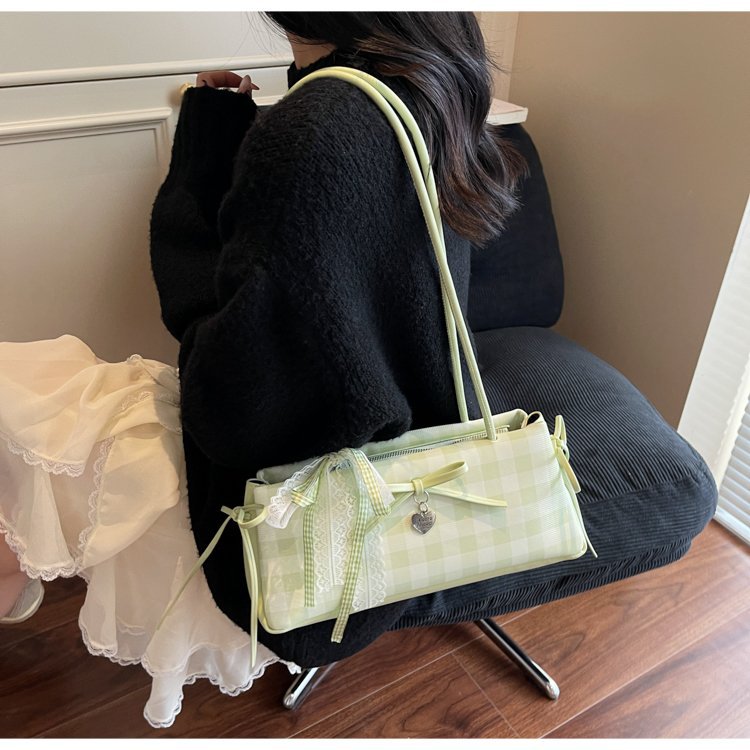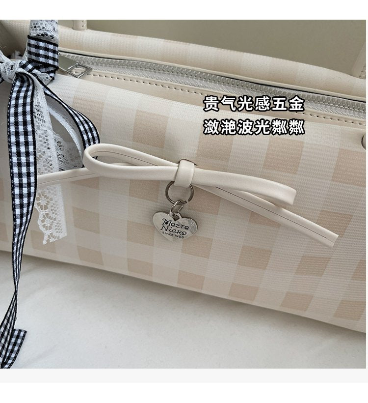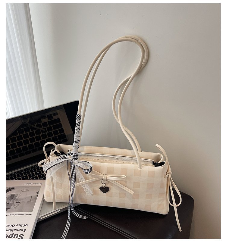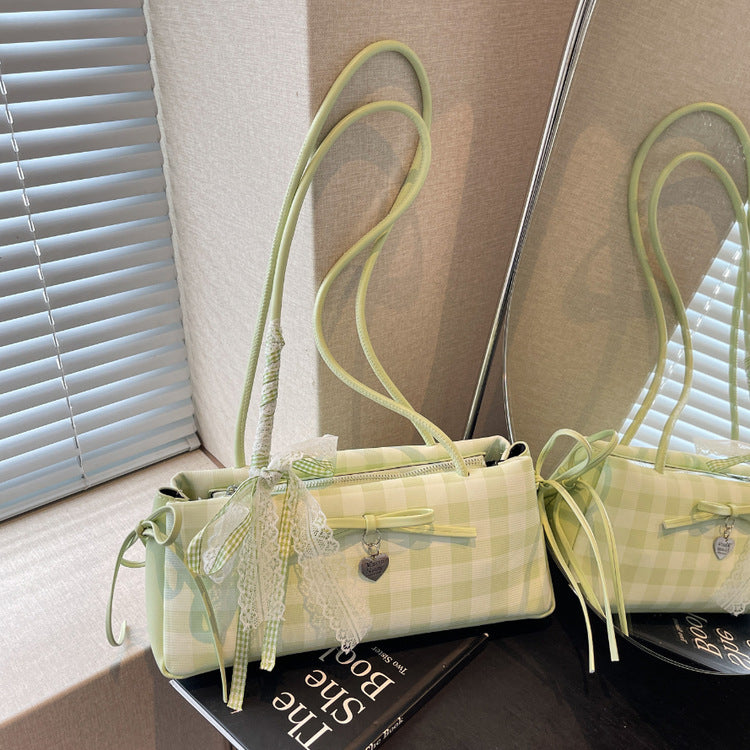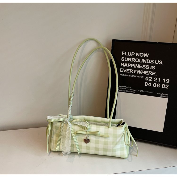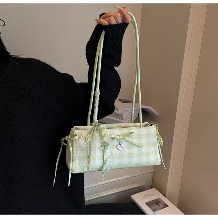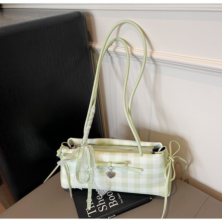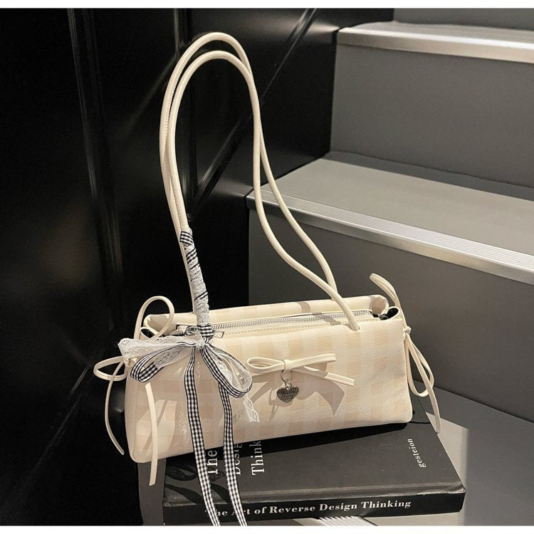Dopamine Plaid Handbag Small Tote Bag for Women Summer2025New Ballet Style Bow Baguette Bag Underarm Bag Trendy