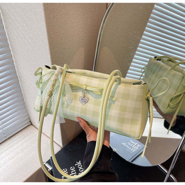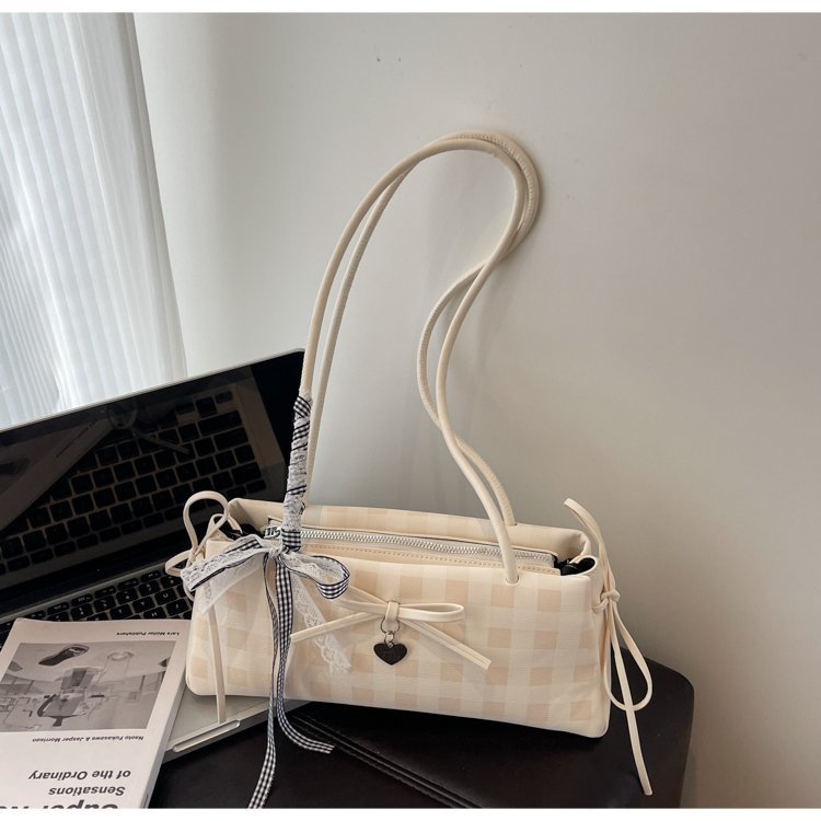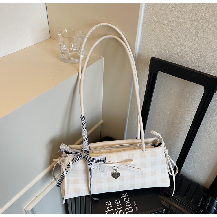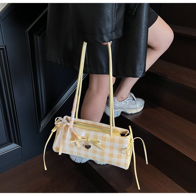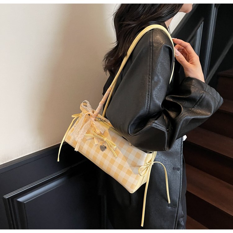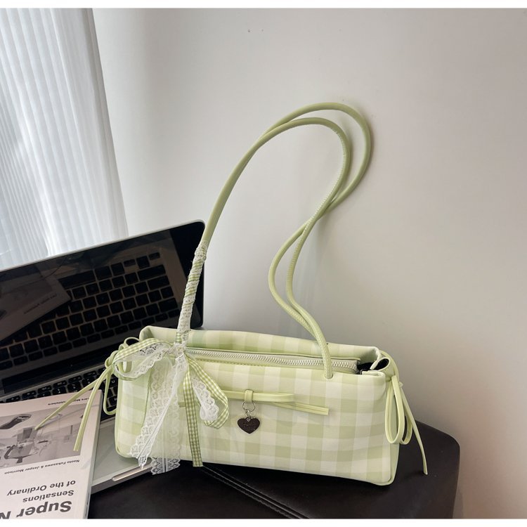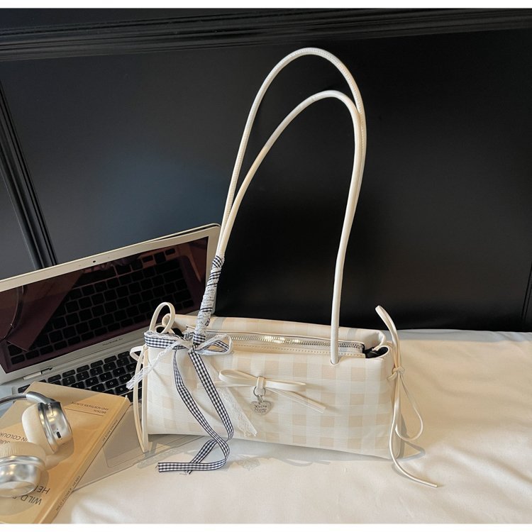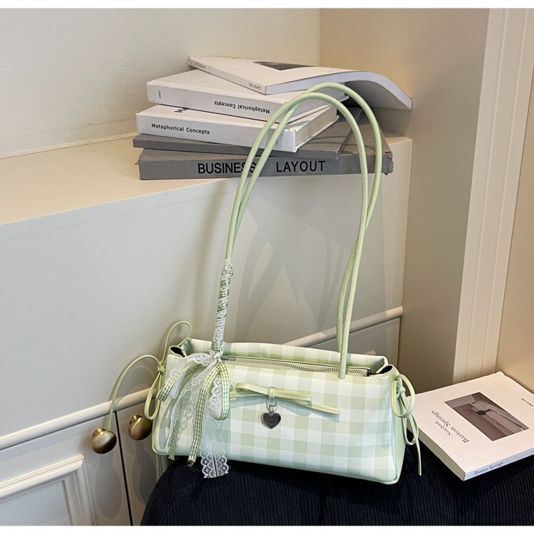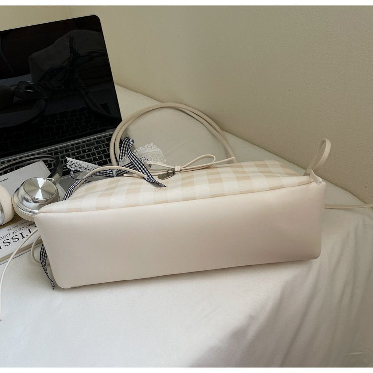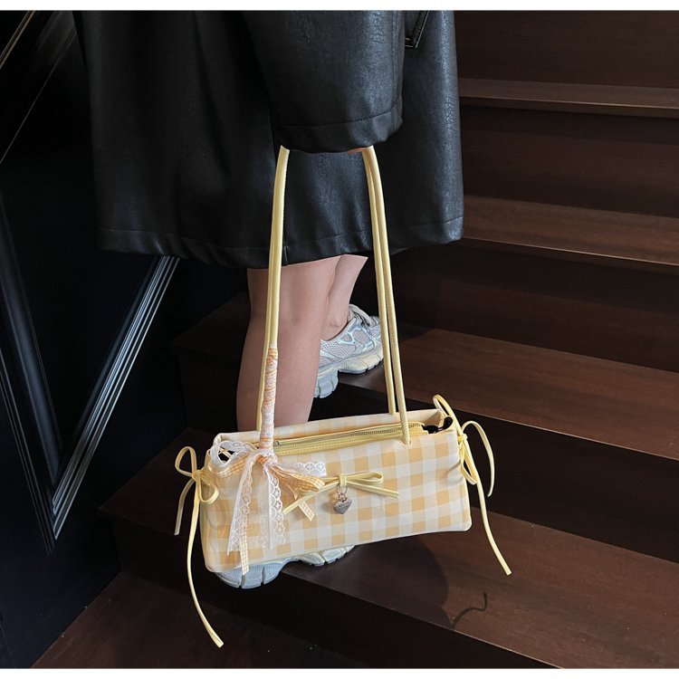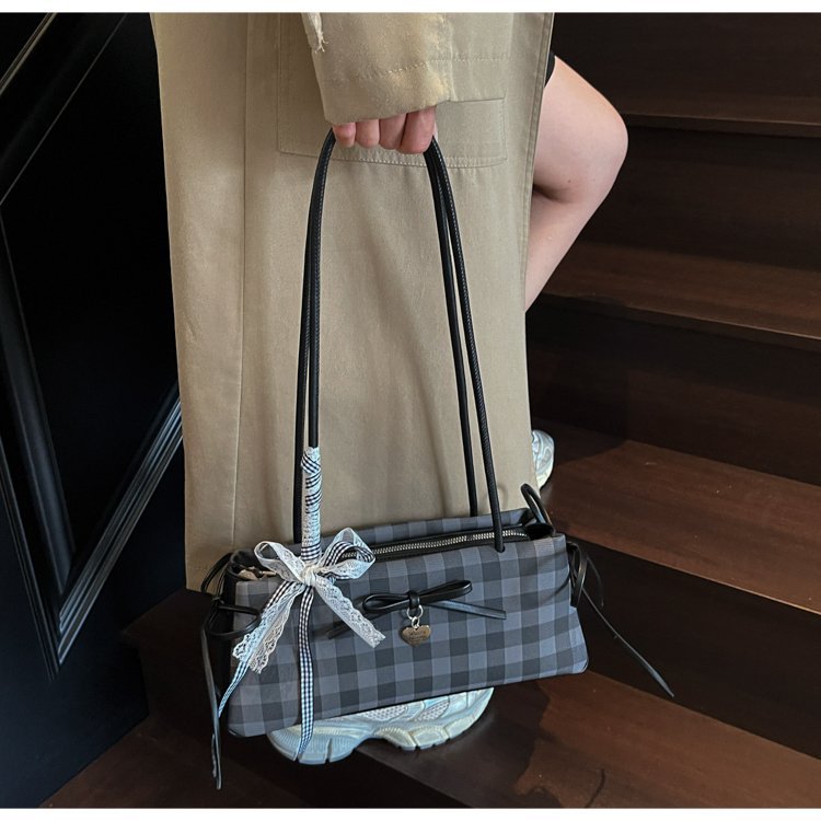 Dopamine Plaid Handbag Small Tote Bag for Women Summer2025New Ballet Style Bow Baguette Bag Underarm Bag Trendy